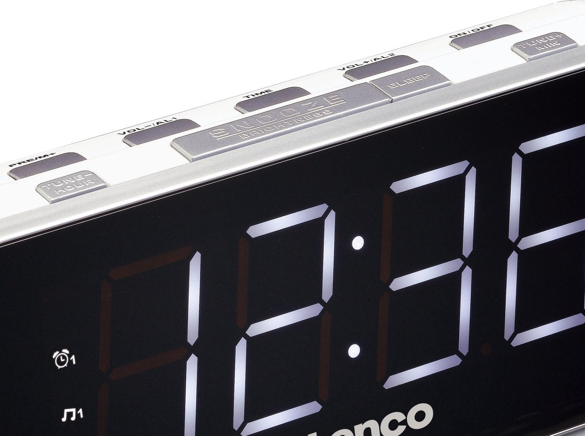 2 verschillende alarmtijden in te stellen, dit is erg praktisch als u en uw partner op verschillende tijden gewekt willen worden. U wordt gewekt door de FM radio of het alarm. De wekker is uitgerust met een groot LED-scherm met dimmer-functie, slaaptimer en snooze-functie. De automatische, radiobestuurde tijdsynchronisatie zorgt ervoor dat de tijd precies klopt, en de ingebouwde stroomreserve zorgt ervoor dat u ook na een stroomstoring wordt gewekt.