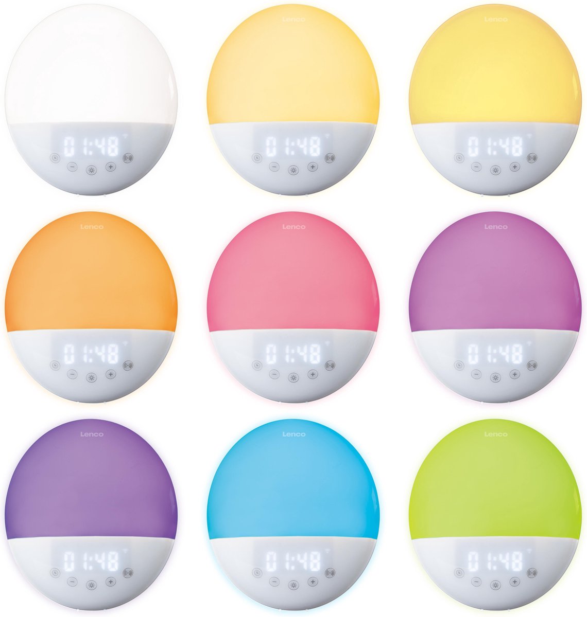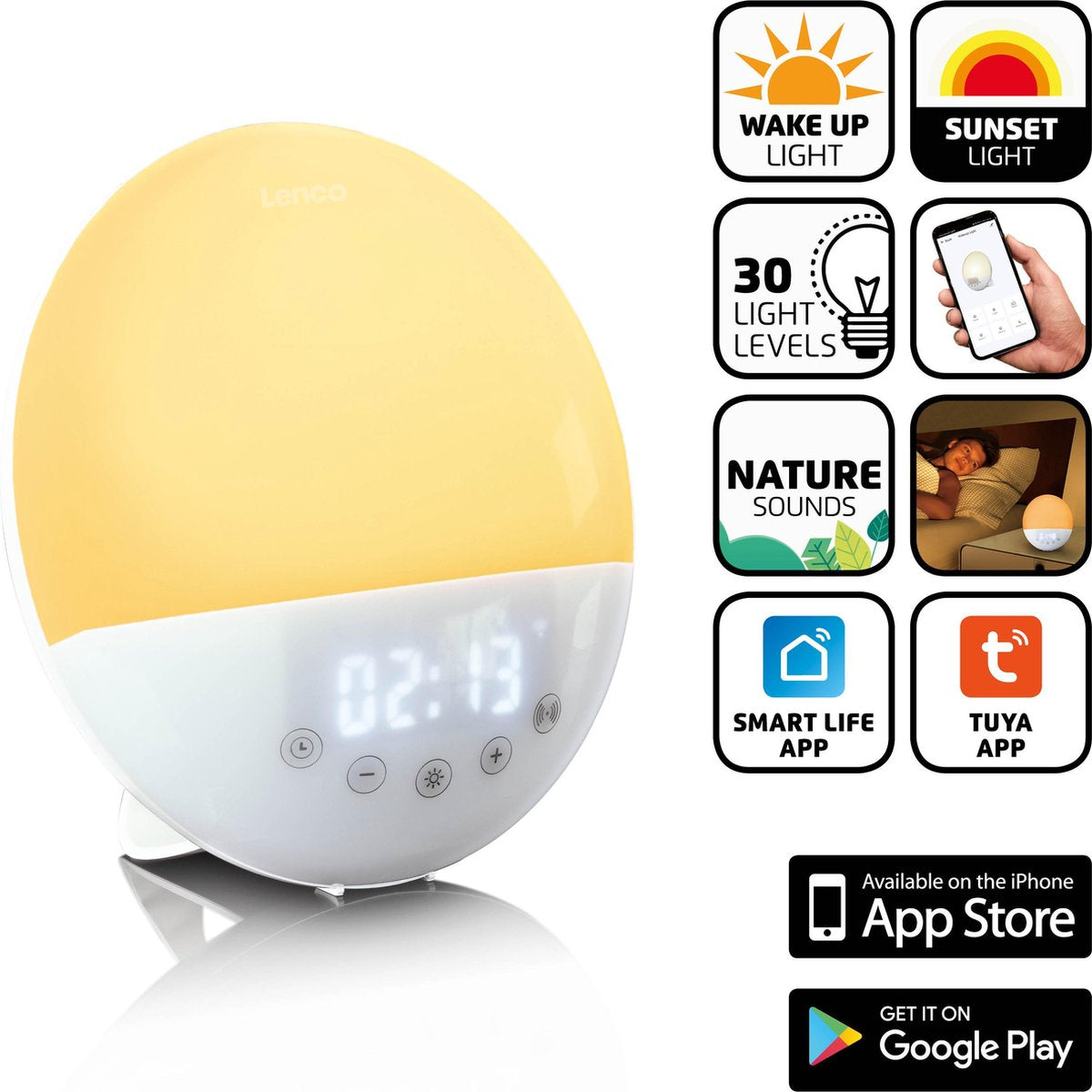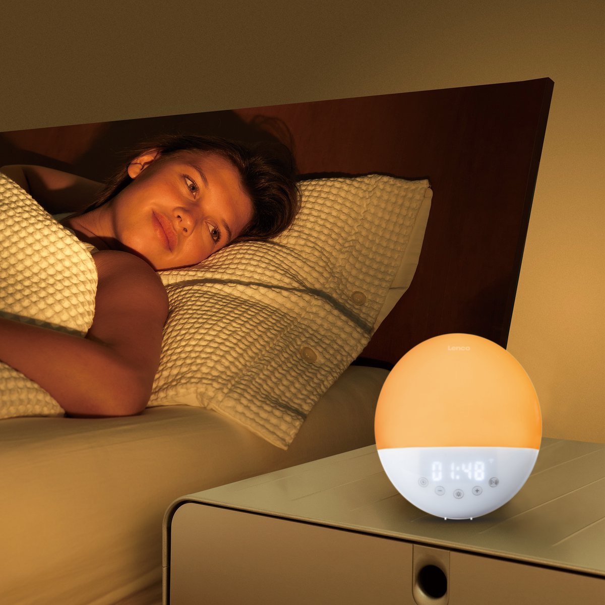 Met de SMART lichtwekker CRW-110WH van Lenco val je snel in slaap en word je wakker met een ontspannen gevoel. De wekker simuleert 's avonds een zonsondergang en vult de kamer 's ochtends weer met een zonsopkomst. Door de lichtintensiteit langzaam toe te laten nemen en te laten veranderen van kleur, word je op een geleidelijke manier wakker gemaakt. De verlichting is regelbaar in 30 intensiteiten en verschillende kleuren.