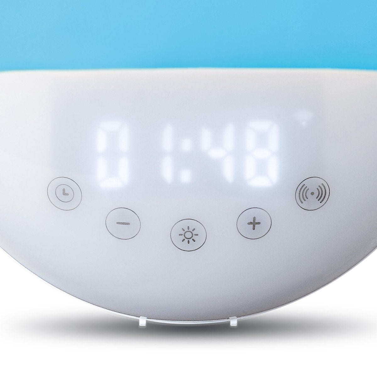 Naast de sfeerverlichting zorgen ook de 8 rustgevende natuurgeluiden ervoor dat je ontspannen in slaap valt én wakker wordt. Naast deze geluiden kun je ook gewekt worden door de wekkerradio of diverse buzzergeluiden. Door een slaaptimer in te stellen, kun je hier ook in de avond naar luisteren. Hierbij val je in slaap met muziek die automatisch stopt met afspelen na een bepaalde (ingestelde) tijd.