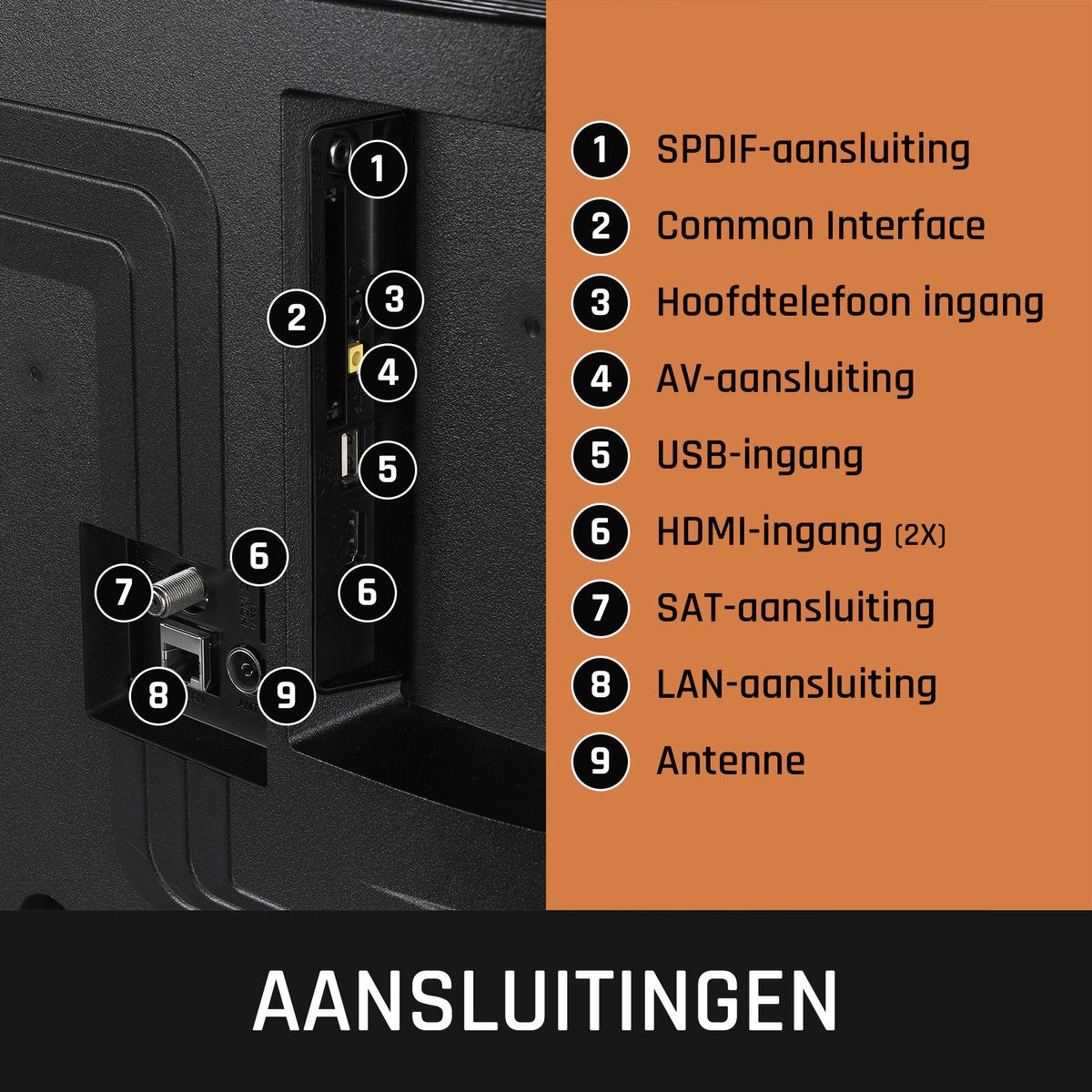 De televisie is geschikt om neer te zetten of om op te hangen. Bevestig de televisie op de meegeleverde design tafelstandaard en plaats deze overal. De televisie is ook voorzien van een VESA 100 muurbevestiging, zodat ook ophangen eenvoudig mogelijk is.
