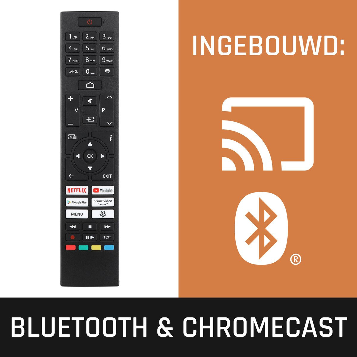 Deze televisie is voorzien van een ingebouwde Chromecast. Kijk je op je telefoon of tablet naar je favoriete serie en wil je thuis vanaf je tv verder kijken? Stream deze serie makkelijk vanaf je telefoon naar je televisie en kijk daar direct verder. Een groot voordeel van streamen via een Chromecast is dat de app niet op de TV hoeft te staan, alleen op je telefoon of tablet. Zo kun je altijd kijken naar wat jij wil.