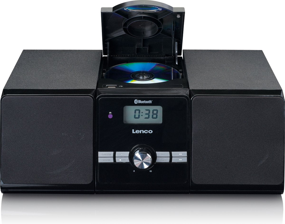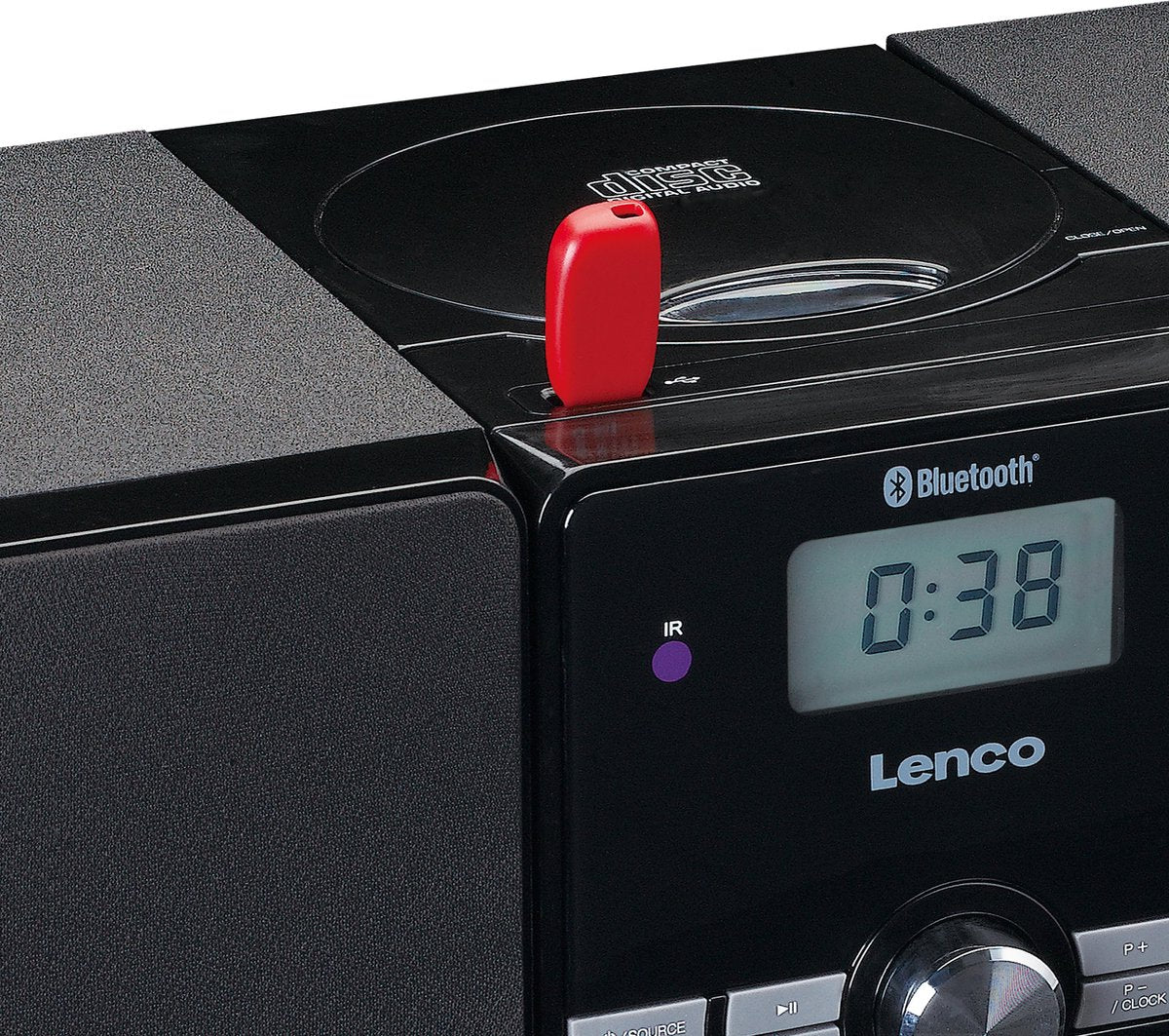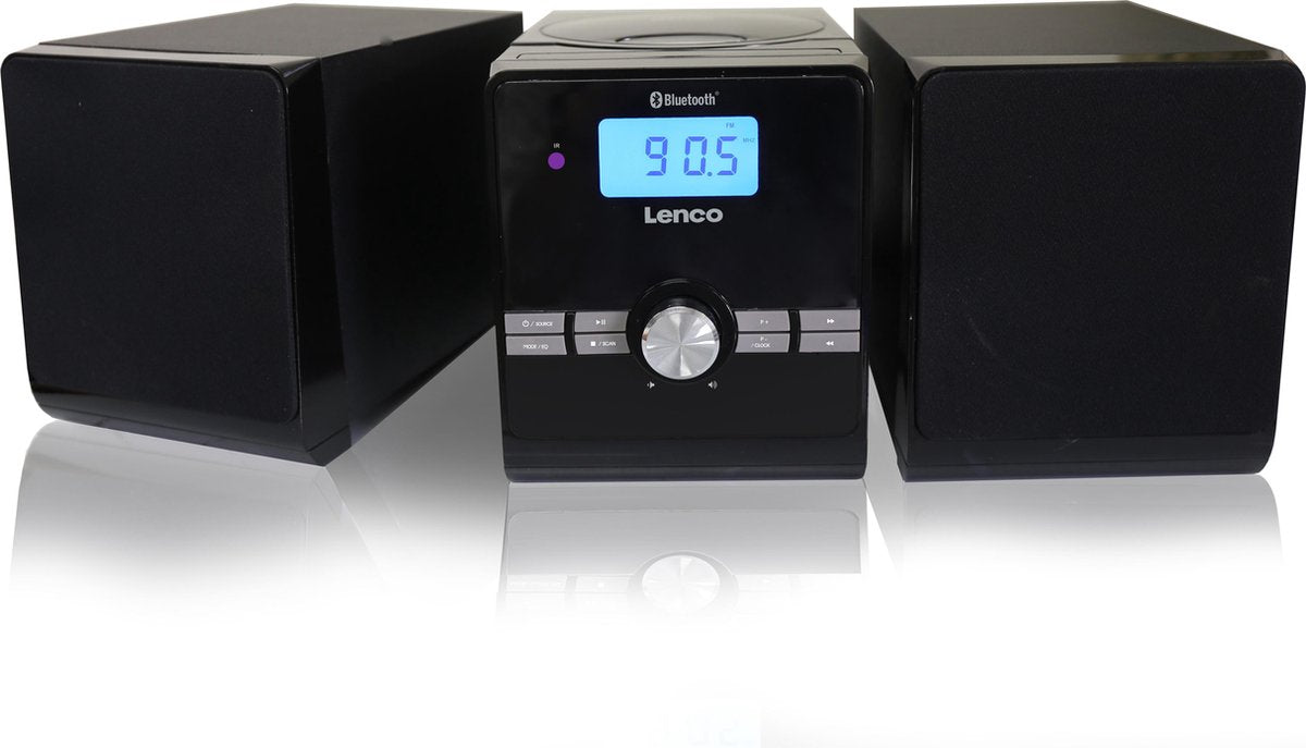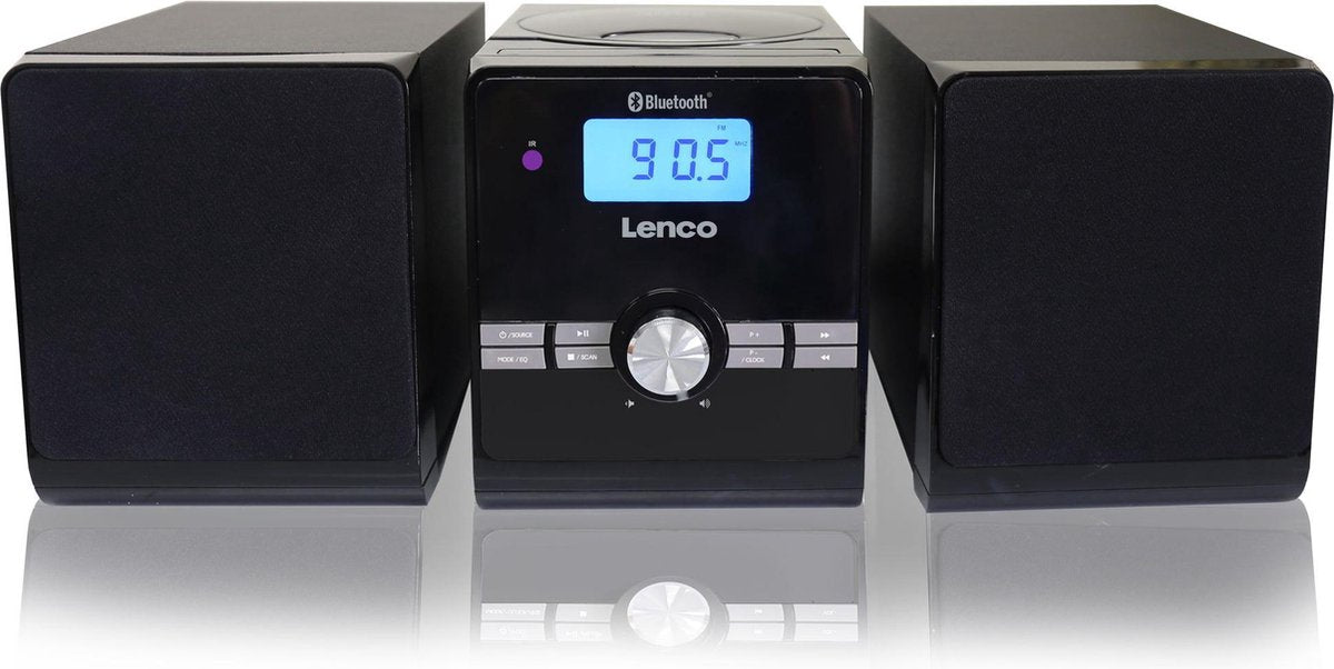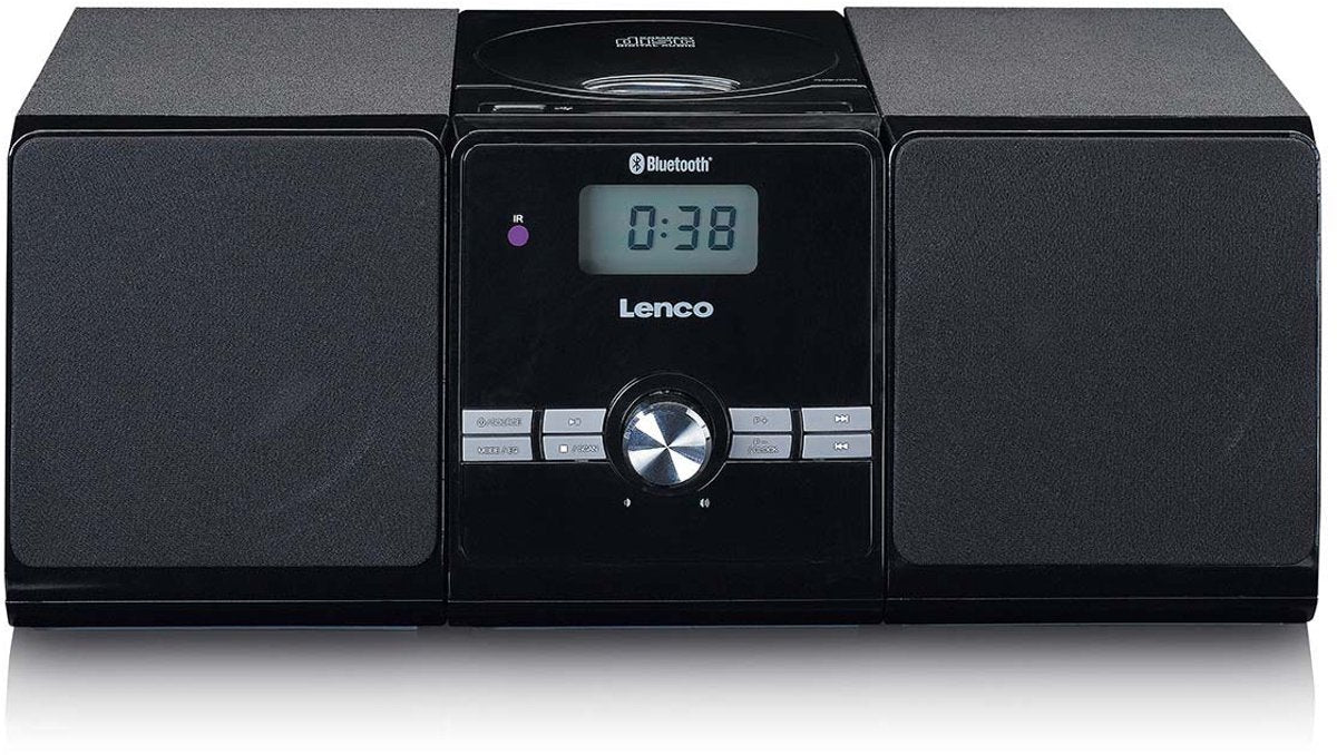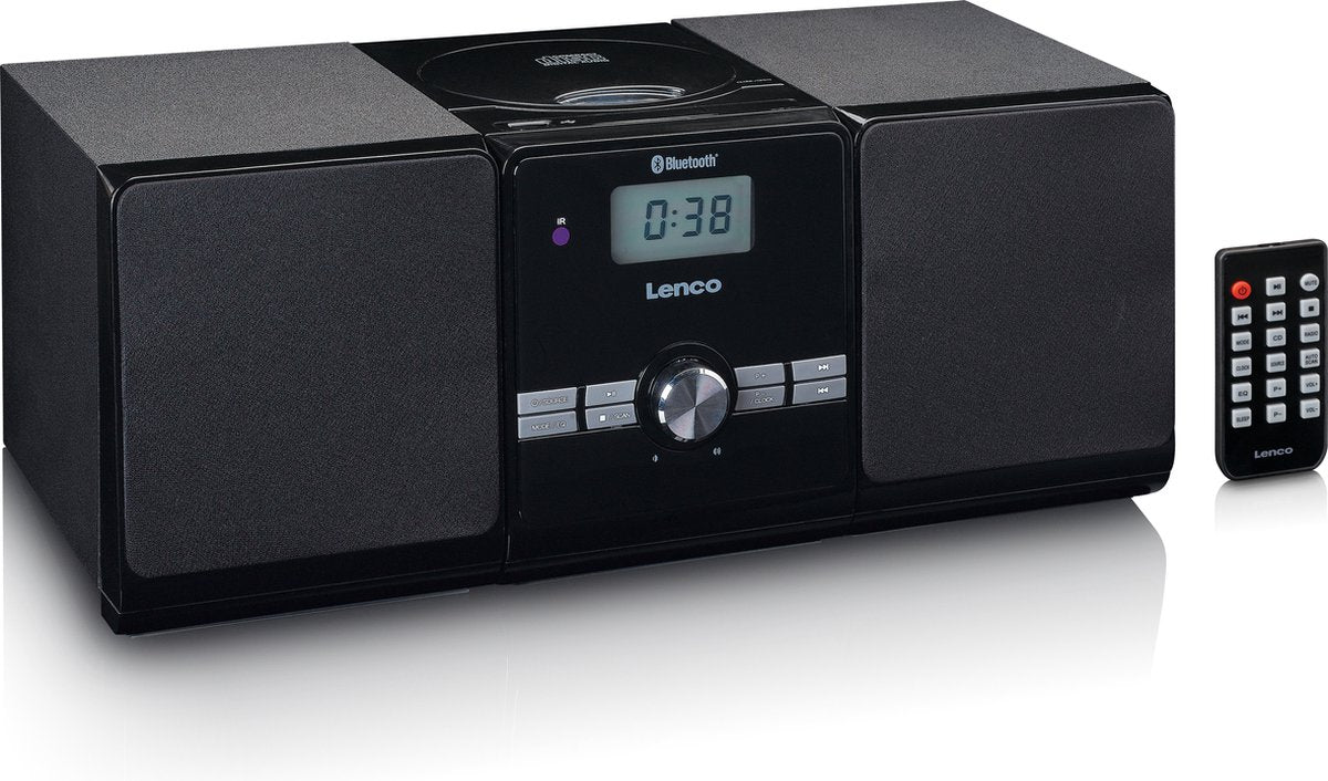 Het microsysteem MC-030BK van Lenco is een complete hifi set met 2 houten luidsprekers én een ingebouwde versterker. De luidsprekers hebben beide een vermogen van 5W RMS. Hierdoor luister je lekker op de bank naar je favoriete muziek met een kamervullend geluid, terwijl je hem bediend met de afstandsbediening.