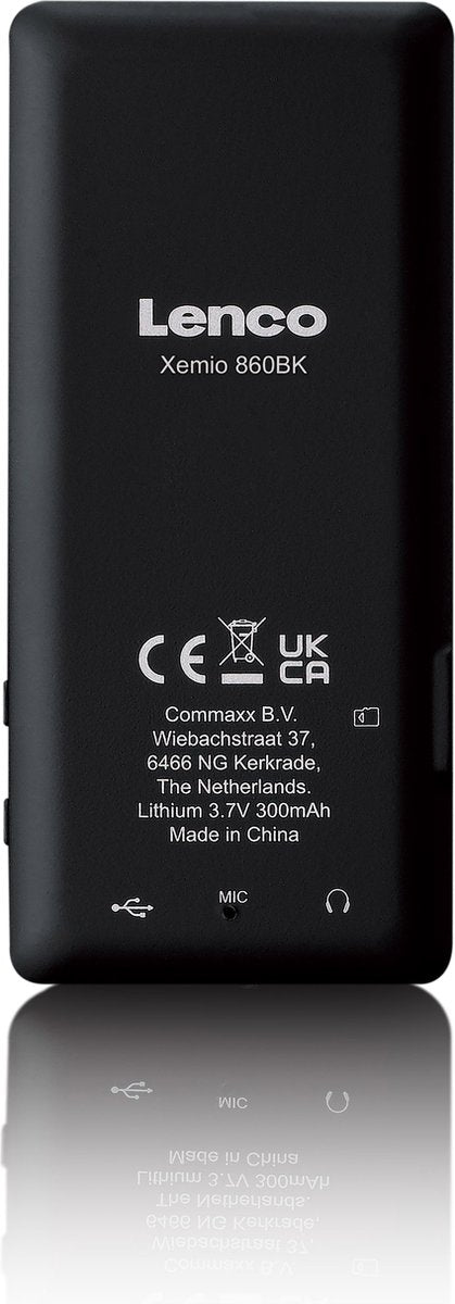 De Lenco Xemio-860BK wordt geleverd met een USB kabel en Lenco earphones. De Lenco Xemio-860 is verkrijgbaar in 3 kleuren: zwart/grijs, zwart/blauw en zwart/lime.