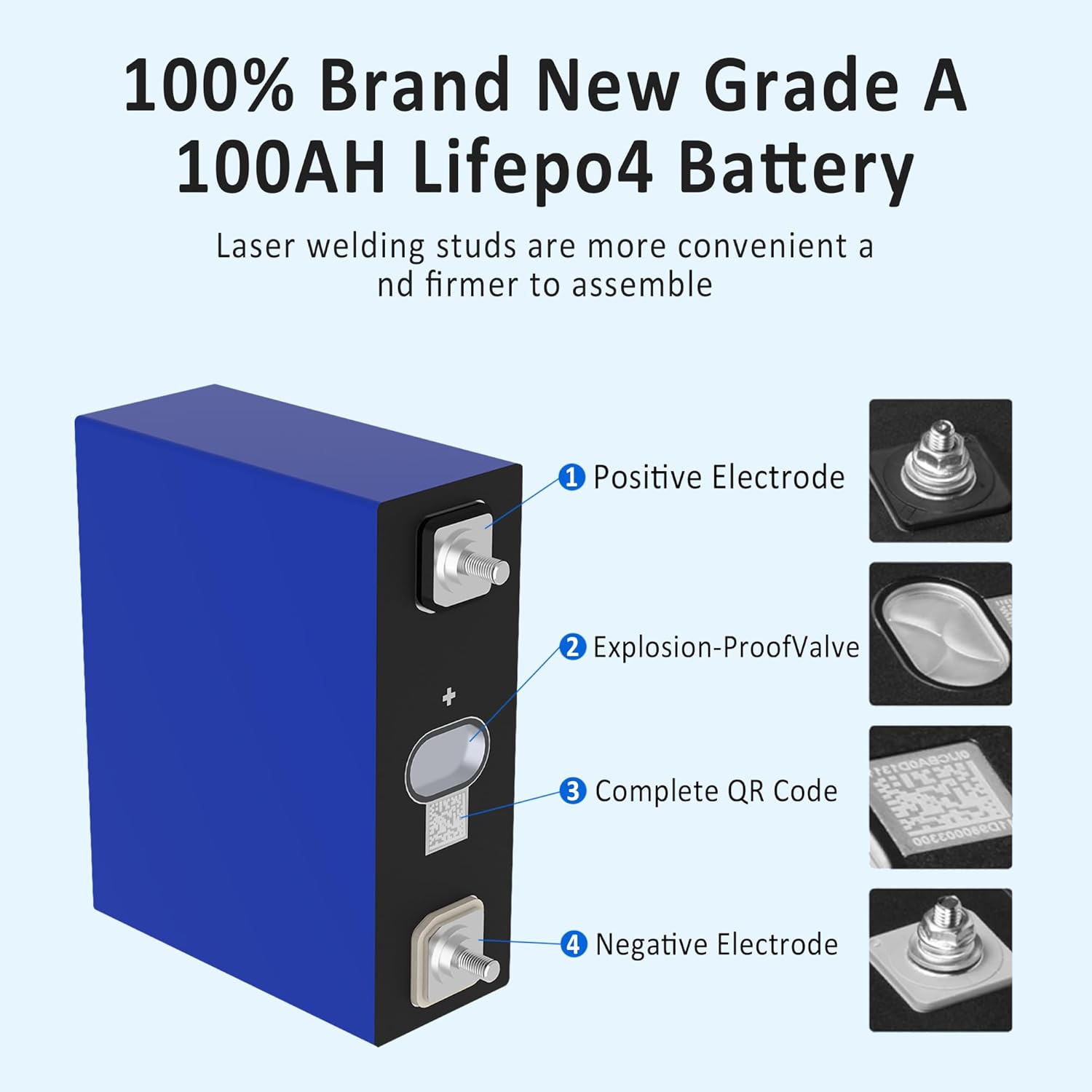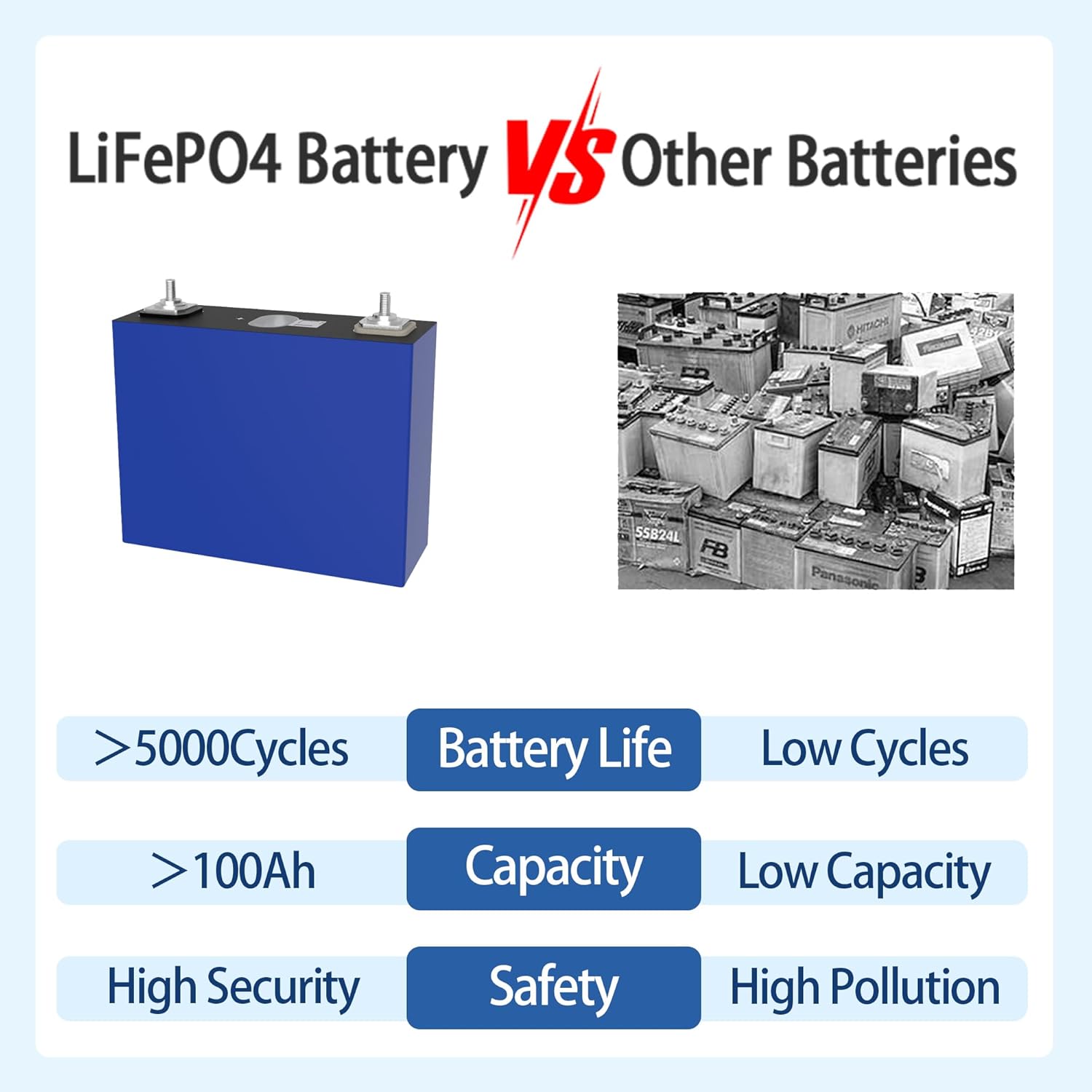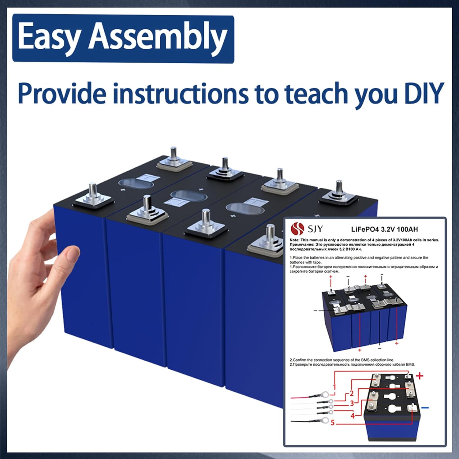 Hoge prestaties en lange levensduur: de SaiJiaoYang LifePO4-cel heeft een grote capaciteit van 3,2 V 100 Ah en ondersteunt een levensduur van 6000-10.000 cycli (afhankelijk van de ontladingsdiepte), wat veel langer is dan conventionele loodzuurbatterijen.