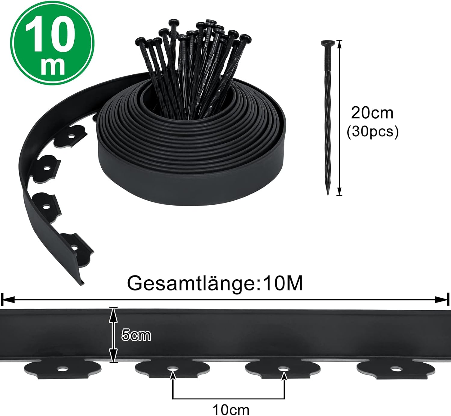 - Hoge kwaliteit: de kunststof biedt passende eigenschappen voor je nieuwe gazonranden, omdat het duurzaam en roestbestendig is. In vergelijking met de keuze van stenen of metalen gazonranden is het ook eenvoudiger te installeren en veel lichter.