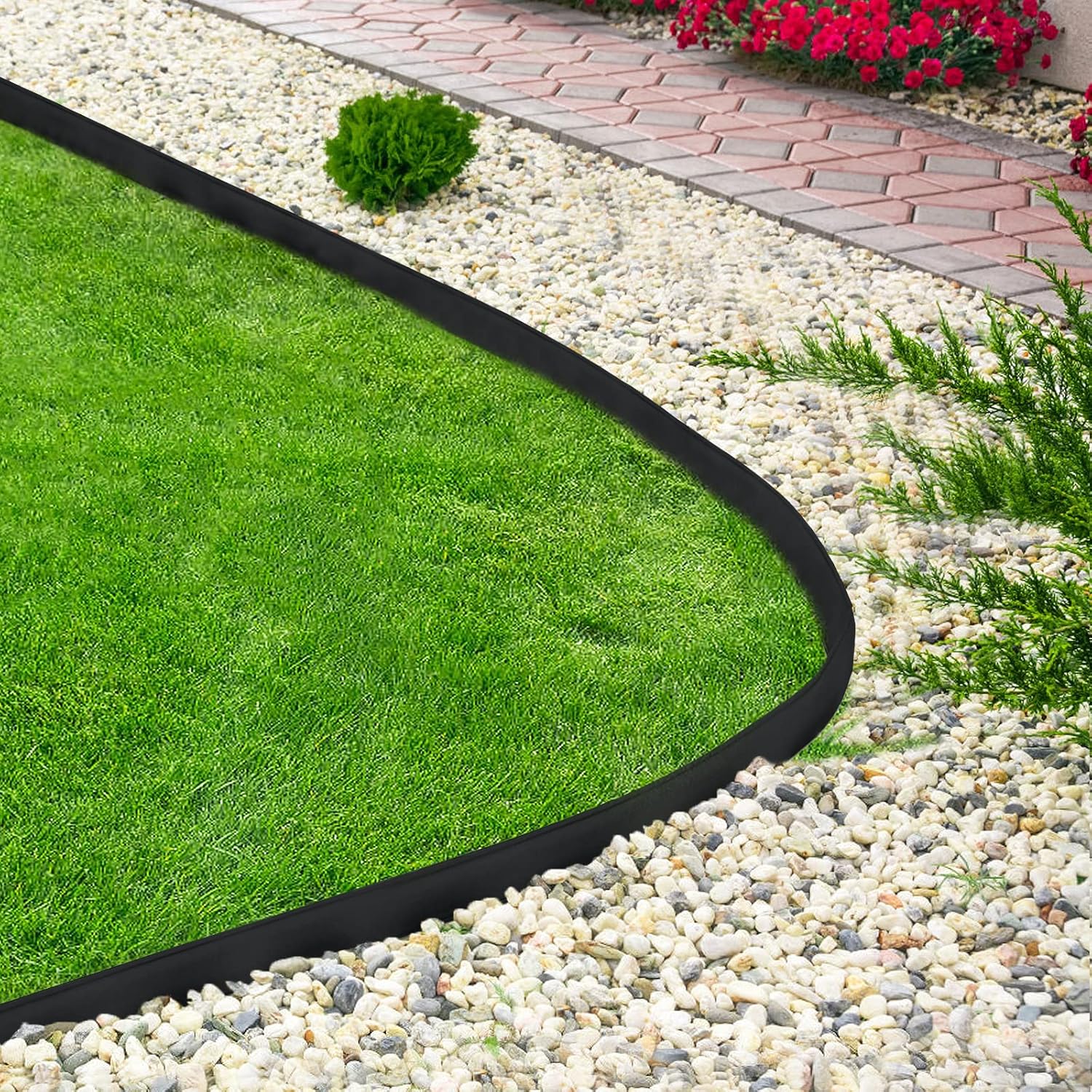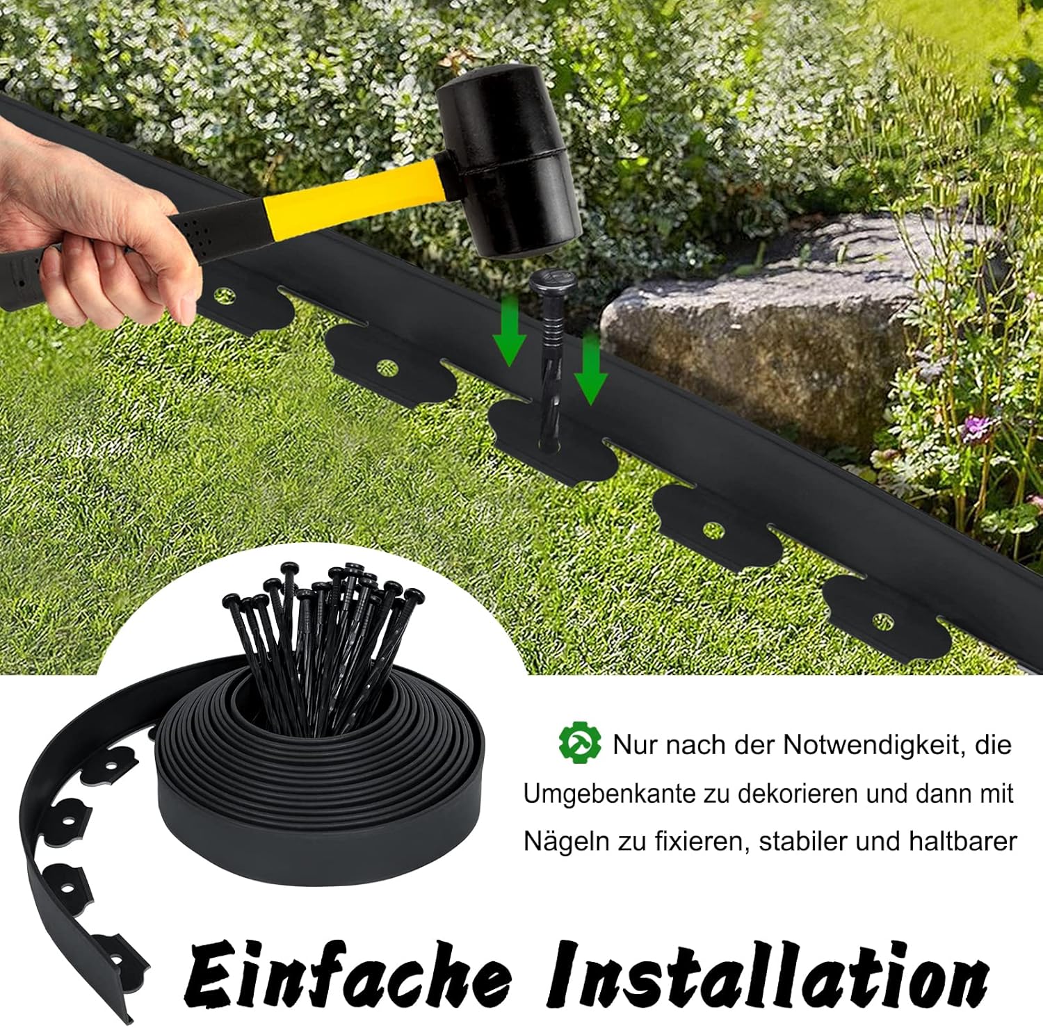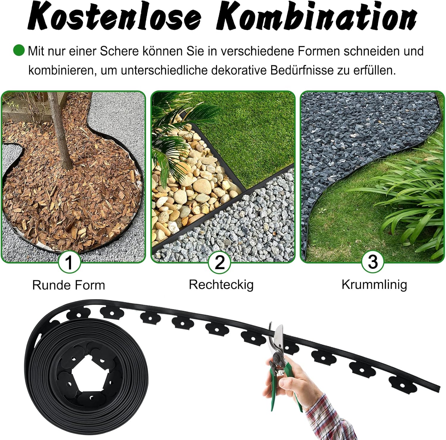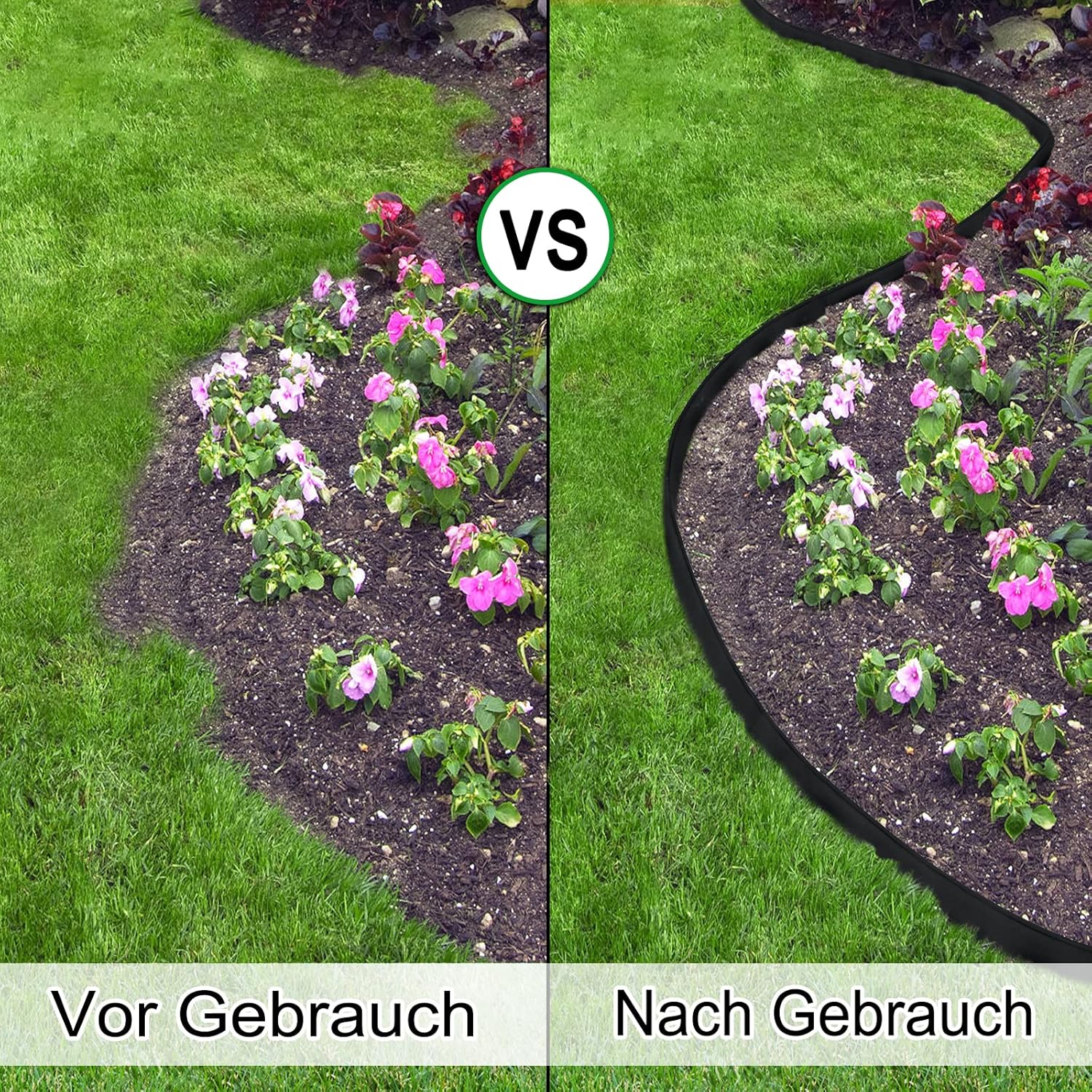 - Vrije combinatie, eenvoudig te ontwerpen: kunststof gazonranden zijn ideaal voor het ontwerpen van bloembedden, paden en gazons. Door hun flexibiliteit kun je met de scheidingswanden 90 graden bochten, hoeken en hoeken creëren, vergelijkbaar met onze gazonranden die kunnen worden gebogen. Of het nu gaat om gazons, bloembedden, beton of stenen en grind, de randen zijn universeel.