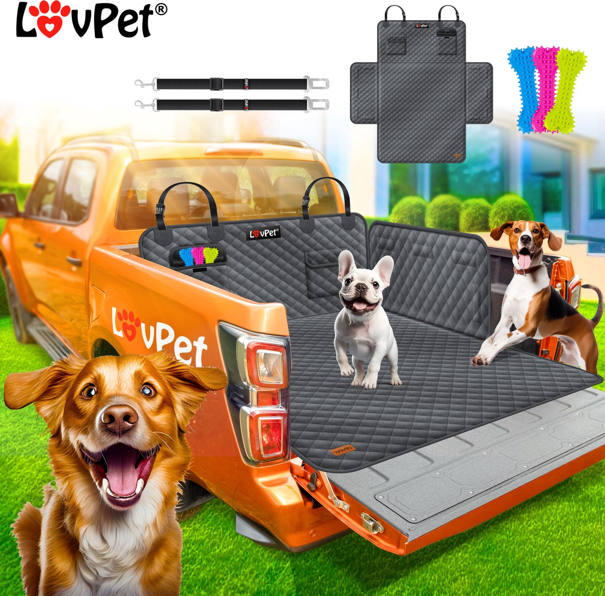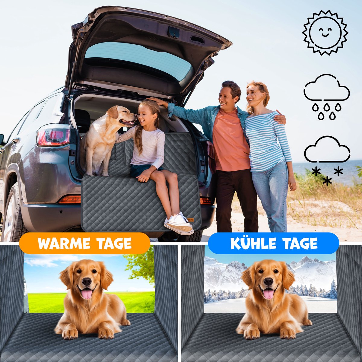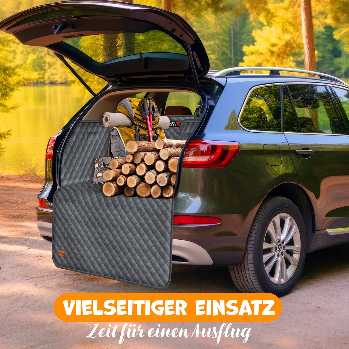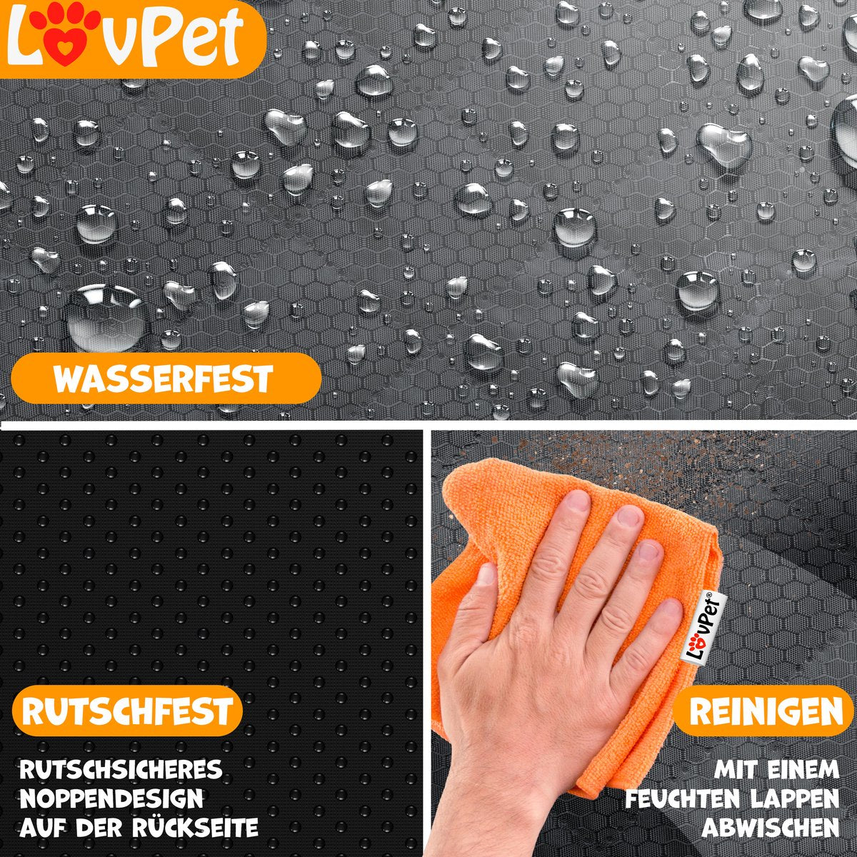 LOVPET® Auto kofferbakbescherming voor honden, gestept met zij- en ladekant bescherming | Universele kofferbak beschermingsmat voor honden | Waterafstotende & krasbestendige hondendeken met veiligheidsgordel en accessoires.