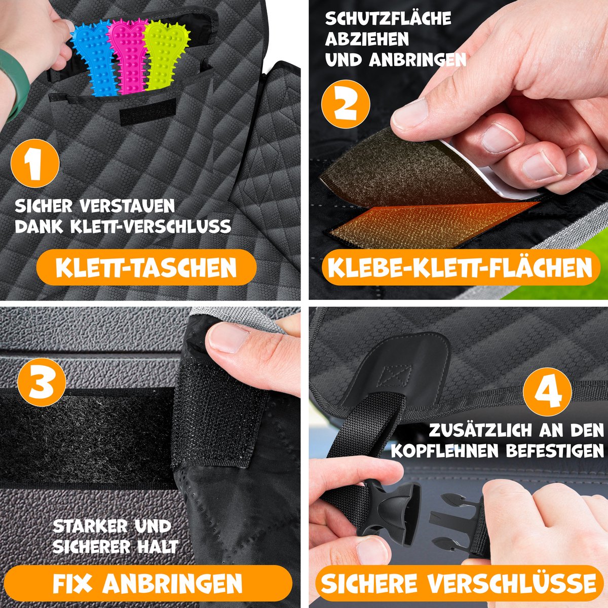 Voor een stevige en veilige grip heeft de hondendeken veilige sluitingen aan de hoofdsteun. Hierdoor blijft de achterbankbeschermer zelfs bij plotseling remmen of bewegingen van het voertuig stevig op zijn plaats. De veiligheid van uw huisdier is voor ons van groot belang, en deze deken waarborgt deze volledig.