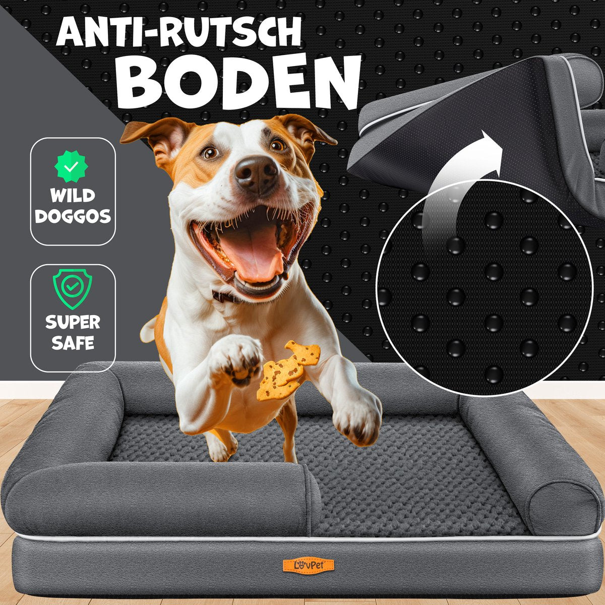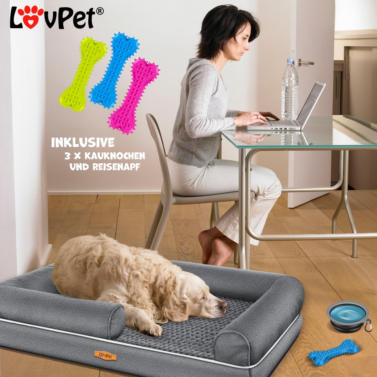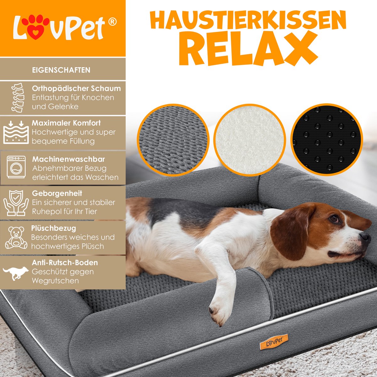 LOVPET hondenbed "Relax" gemaakt van bijzonder comfortabele en handige materialen, verhoogde bedrand voor een veilige slaap, verschillende maten voor alle rassen, anti-slip bodem voorkomt ongewenst uitglijden, ergonomisch schuim