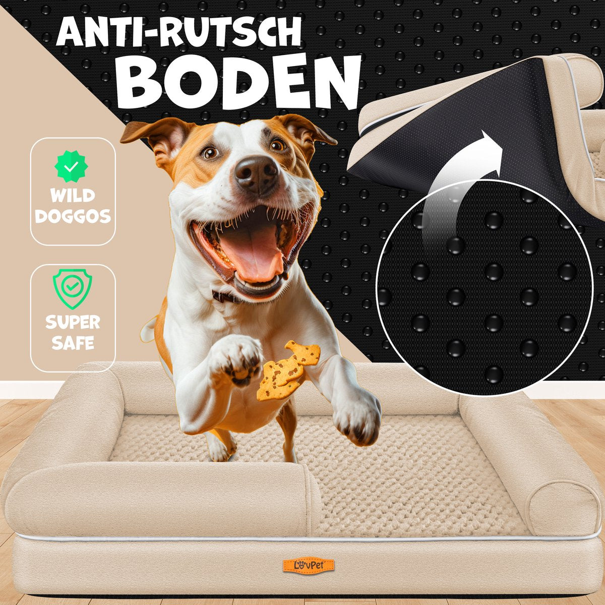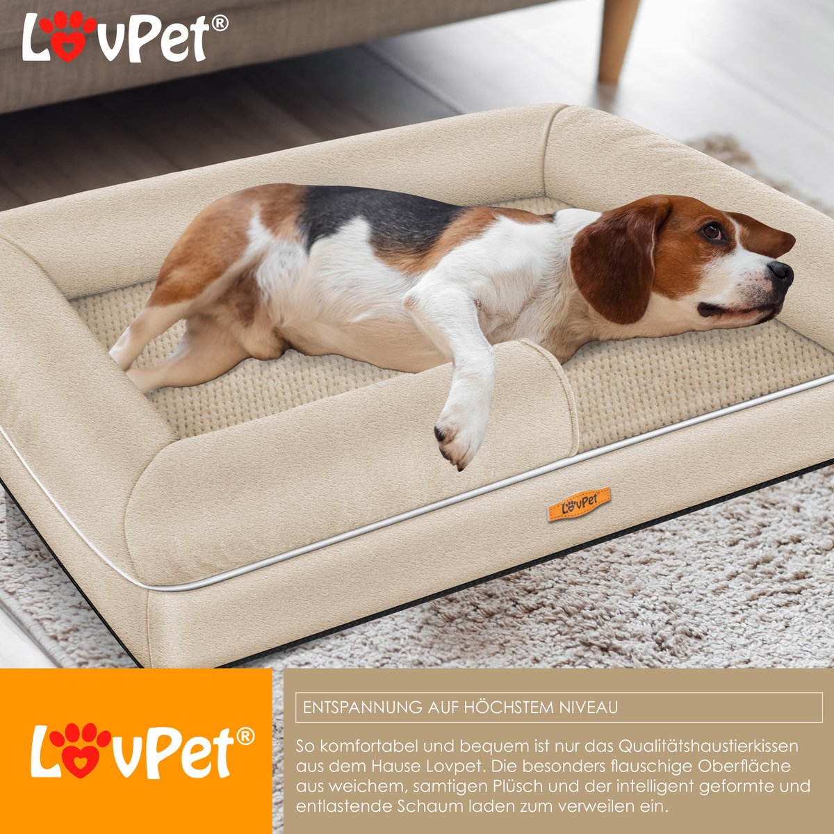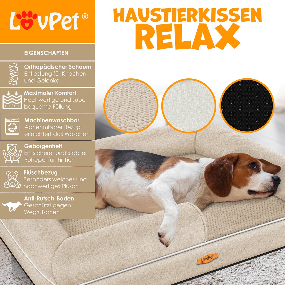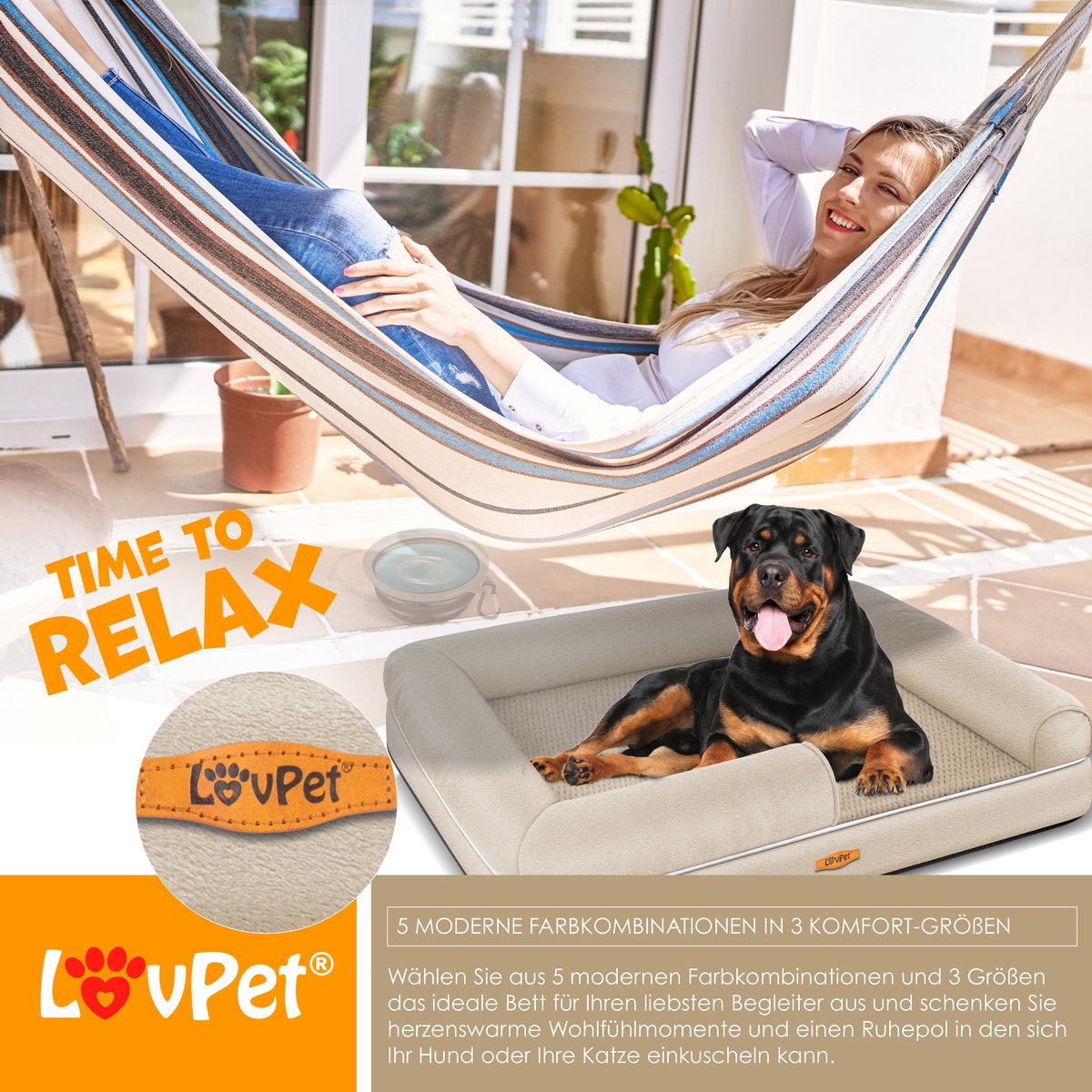 LOVPET hondenbed "Relax" gemaakt van bijzonder comfortabele en handige materialen, verhoogde bedrand voor een veilige slaap, verschillende maten voor alle rassen, anti-slip bodem voorkomt ongewenst uitglijden, ergonomisch schuim