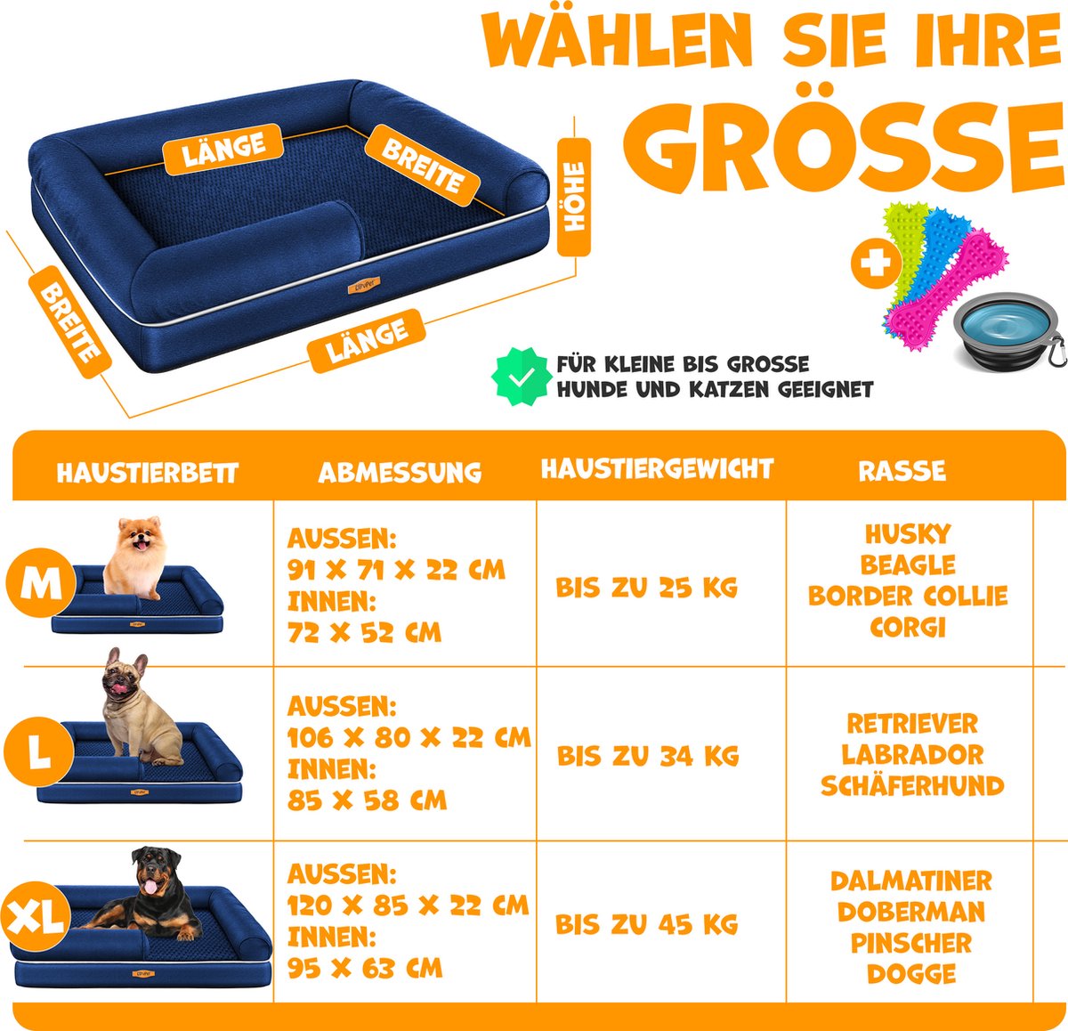 Hondenmand Orthopedisch - Hondenkussen - Hondenbed - Blauw - 106x80 cm - LovPet®