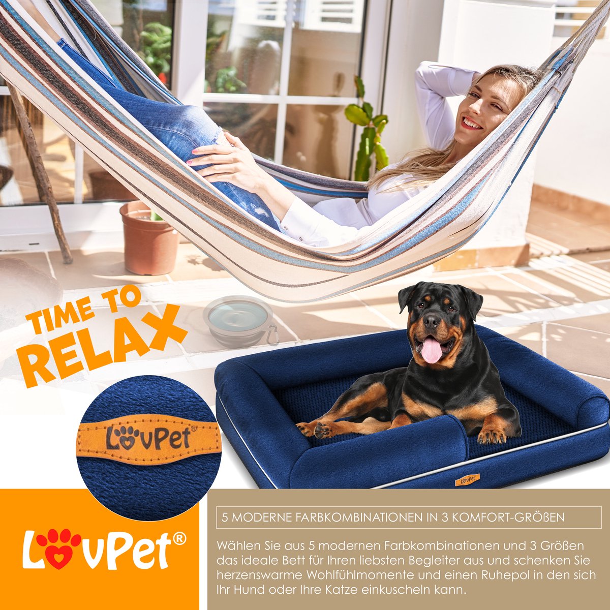 LOVPET hondenbed "Relax" gemaakt van bijzonder comfortabele en handige materialen, verhoogde bedrand voor een veilige slaap, verschillende maten voor alle rassen, anti-slip bodem voorkomt ongewenst uitglijden, ergonomisch schuim
