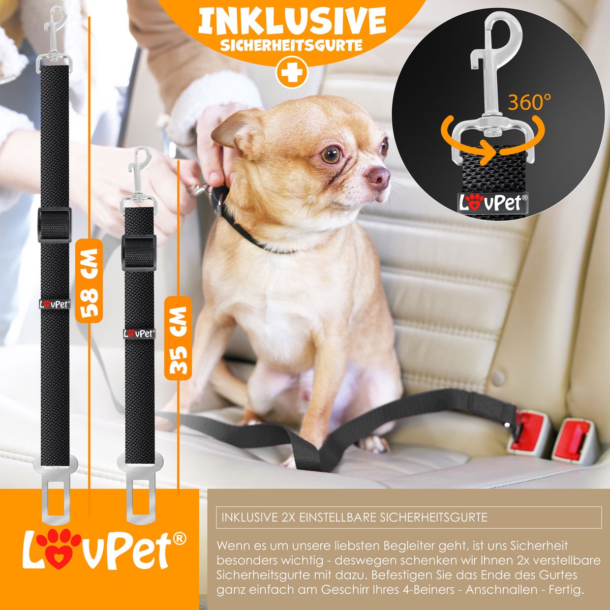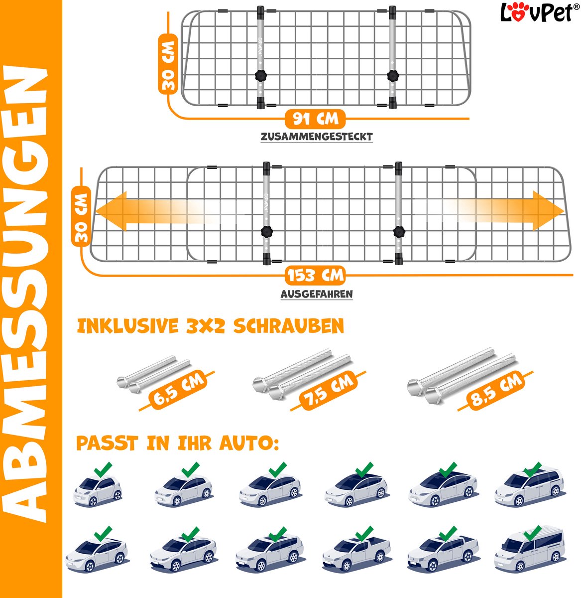 LOVPET hondenscheidingshek incl. montageset & 2 hoogwaardige veiligheidsgordels, veilig en ongecompliceerd reizen, geschikt voor vele maten en modellen auto's.