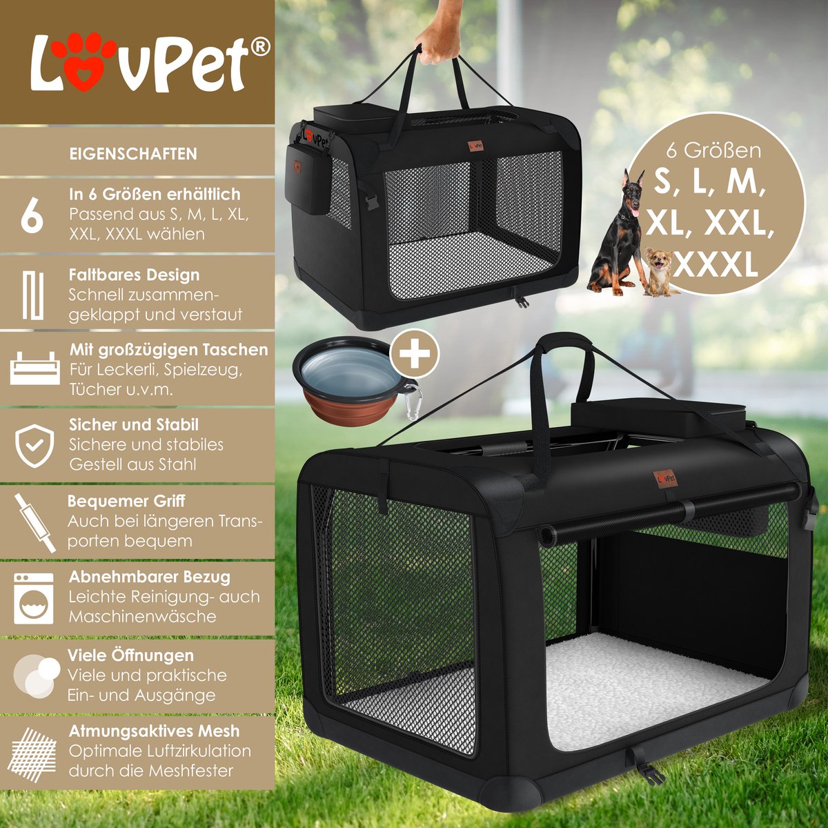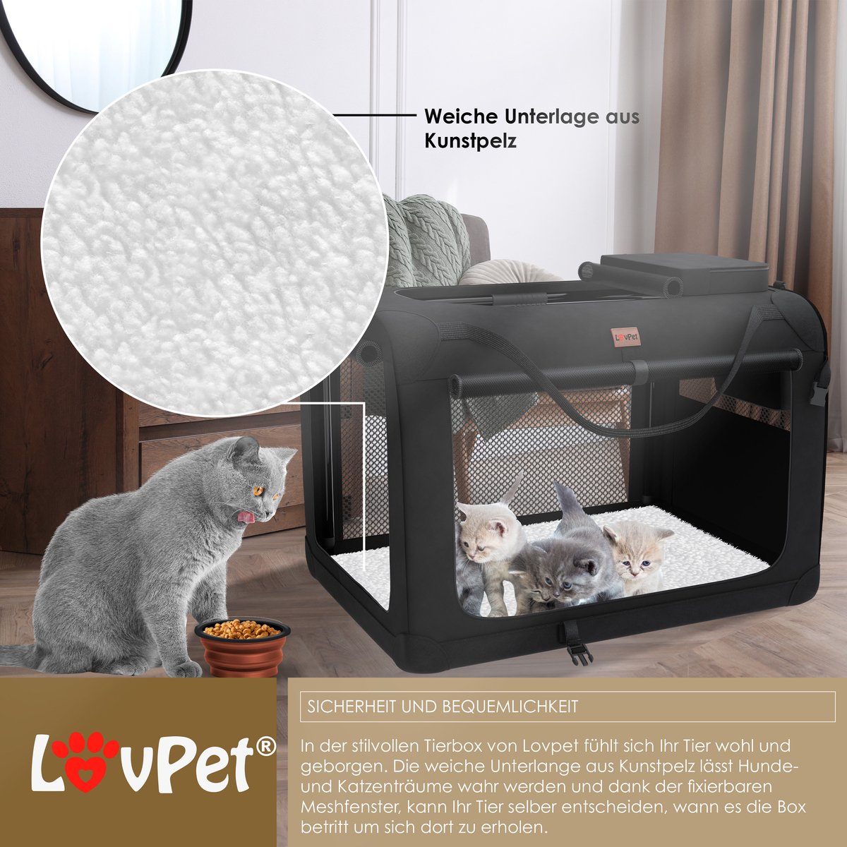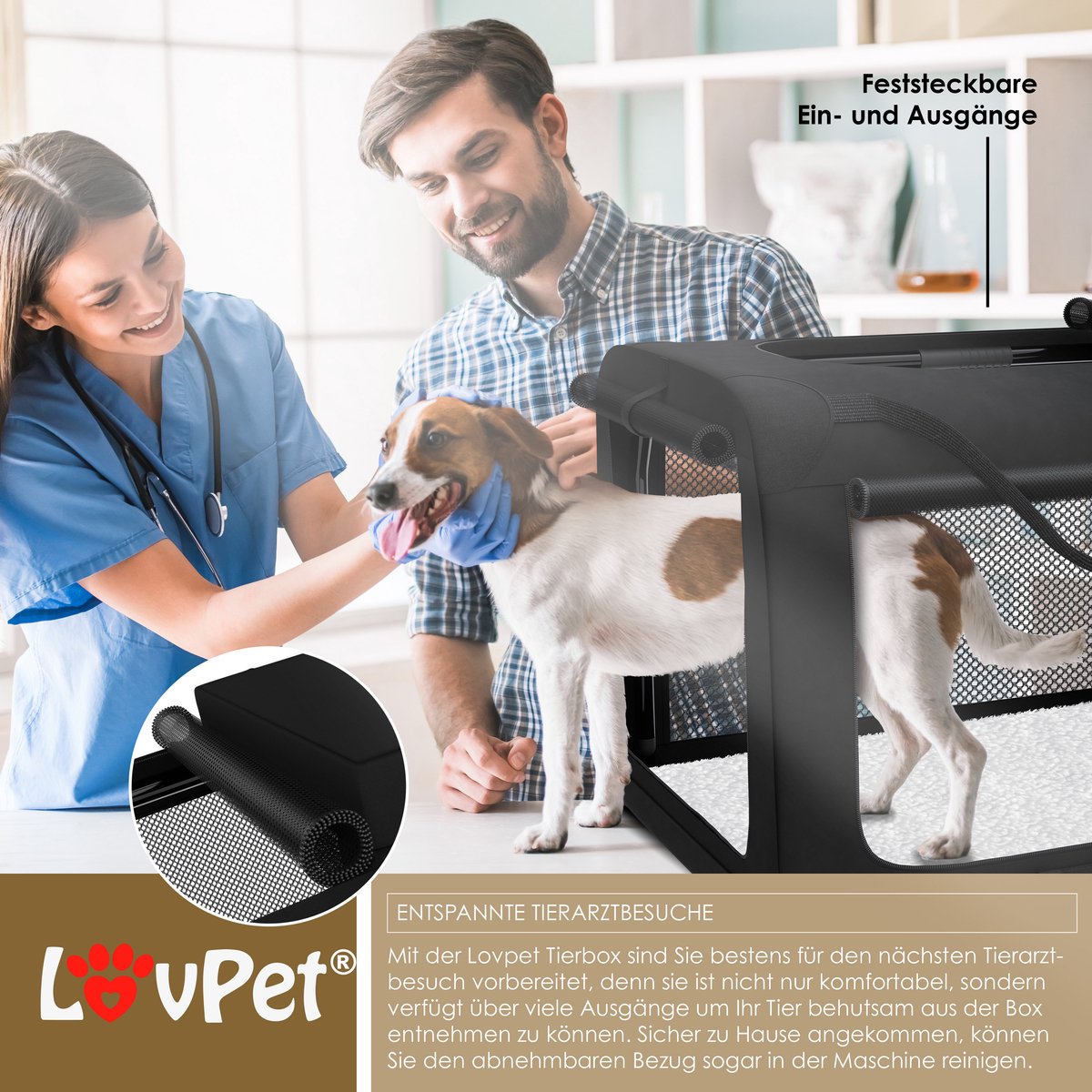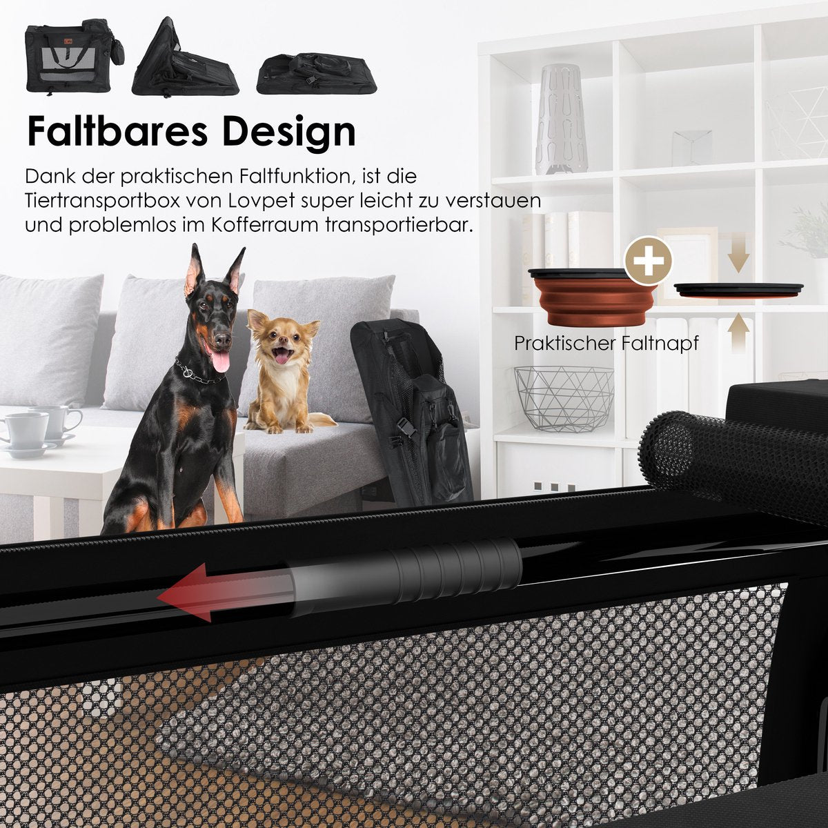 LovPet opvouwbare transportbox voor honden en katten, incl. twee praktische zakken, uitneembare en wasbare binnenbekleding, ideale ventilatie en een breed gezichtsveld.