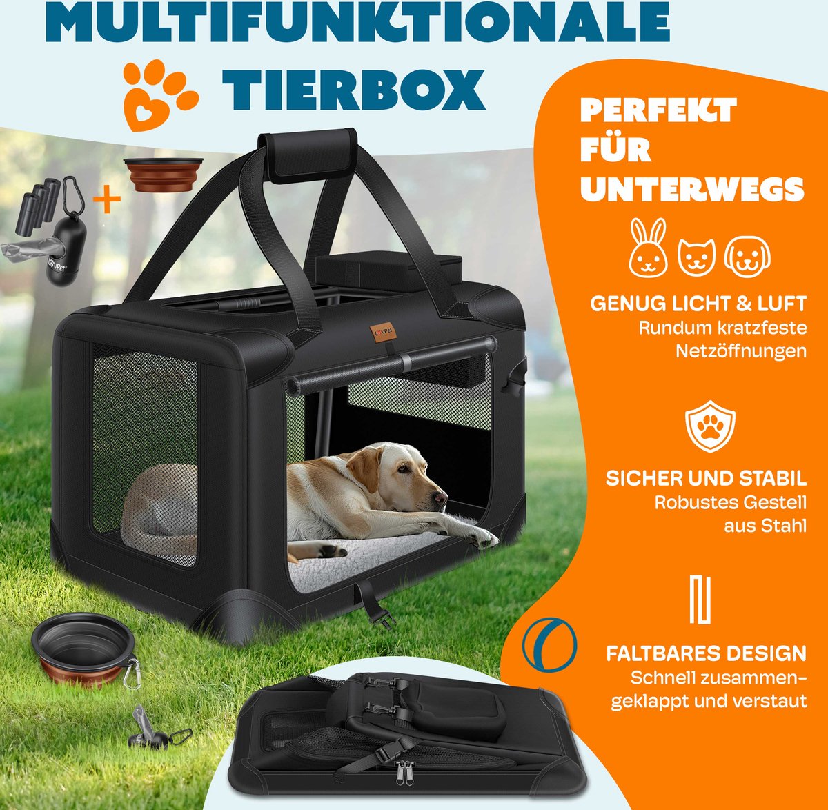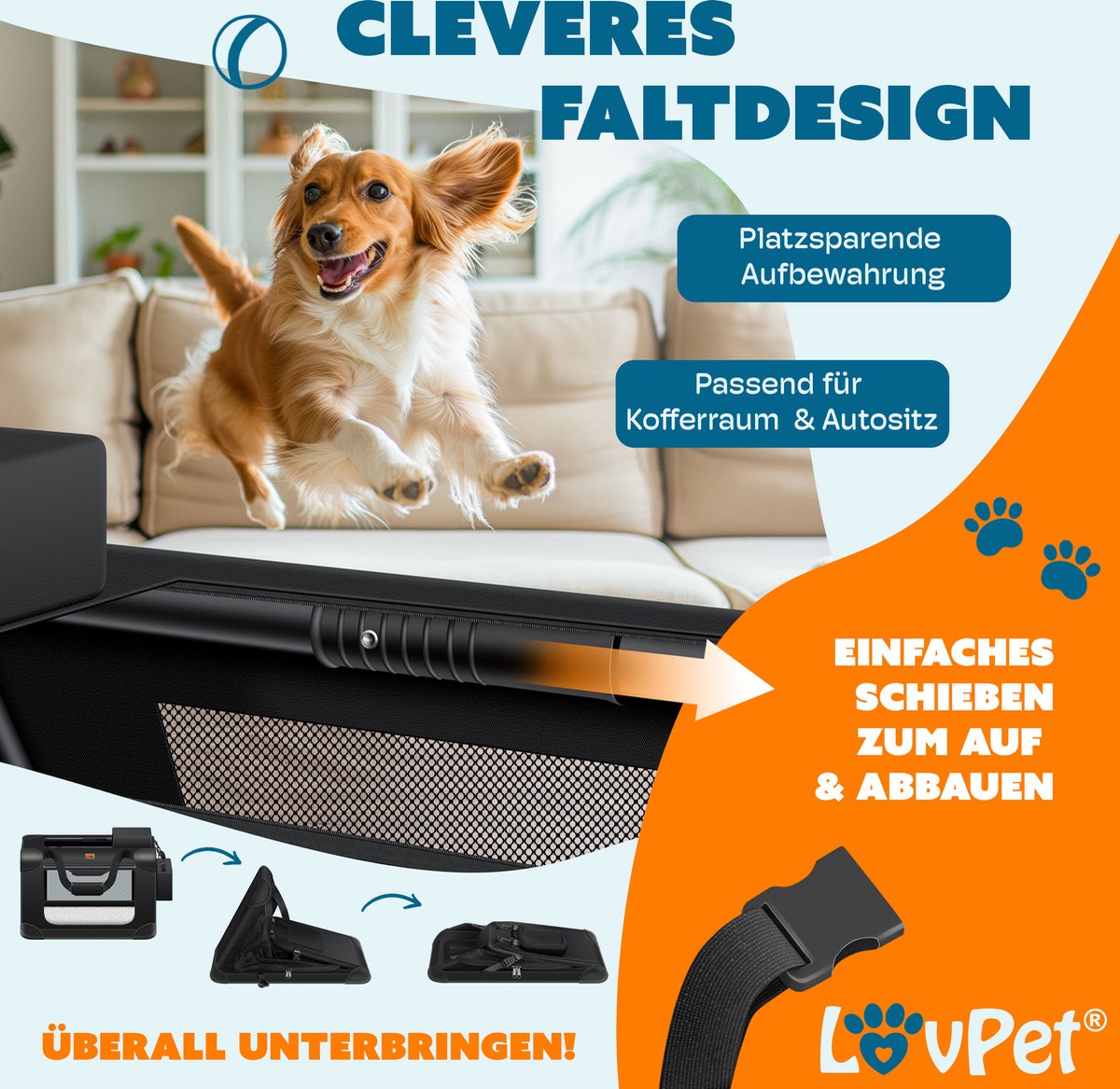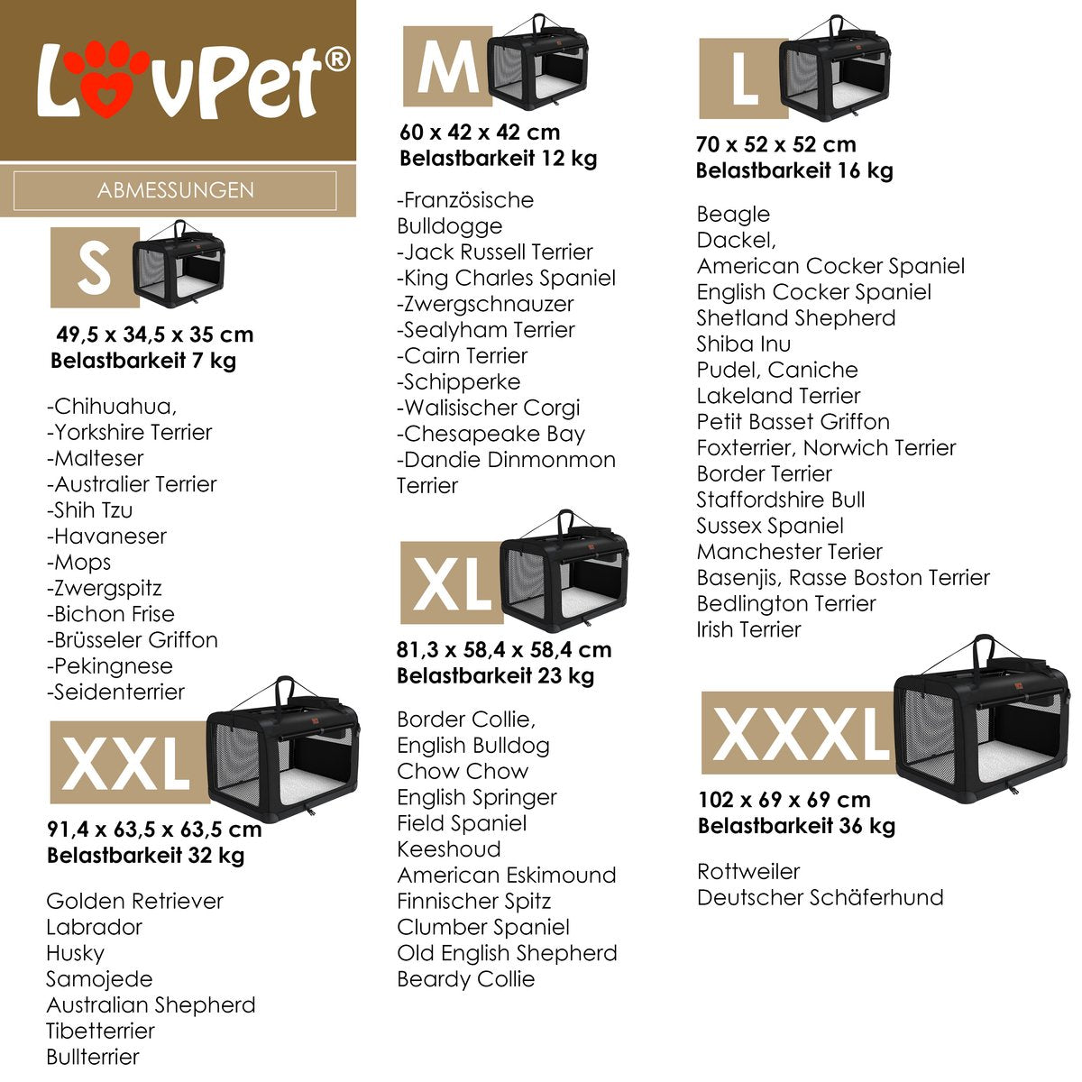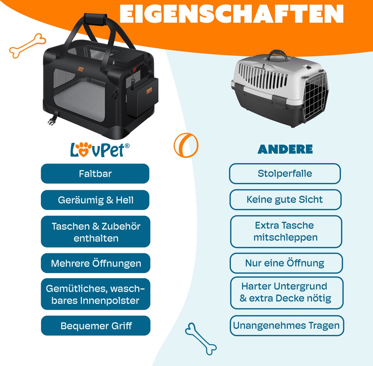 LovPet opvouwbare transportbox voor honden en katten, incl. twee praktische zakken, uitneembare en wasbare binnenbekleding, ideale ventilatie en een breed gezichtsveld.