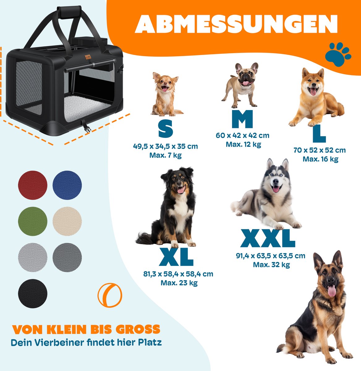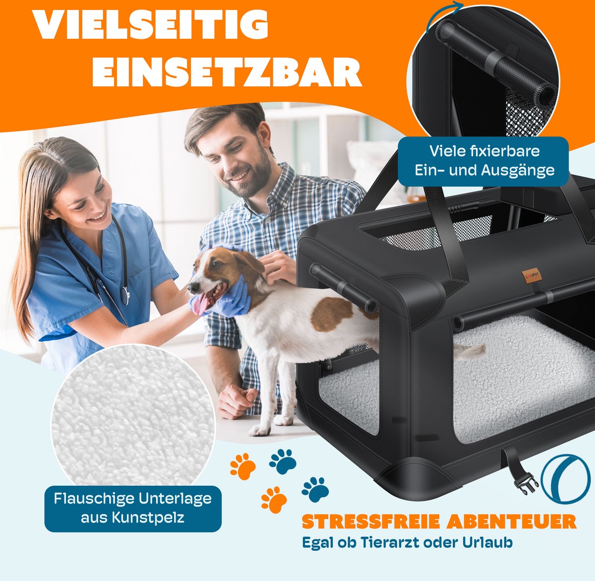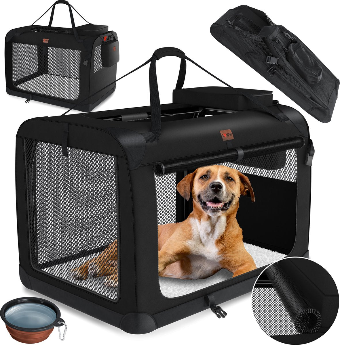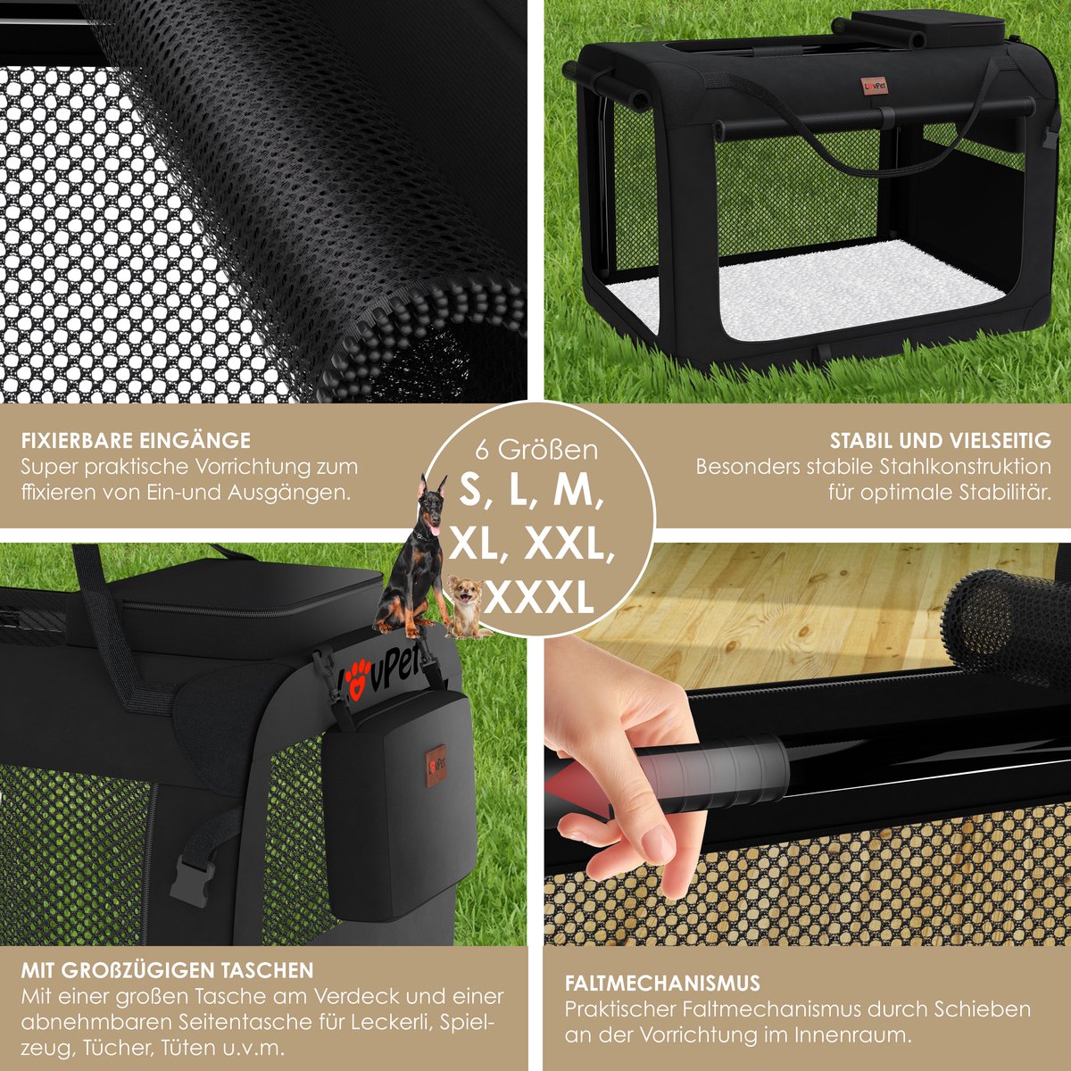 LovPet opvouwbare transportbox voor honden en katten, incl. twee praktische zakken, uitneembare en wasbare binnenbekleding, ideale ventilatie en een breed gezichtsveld.