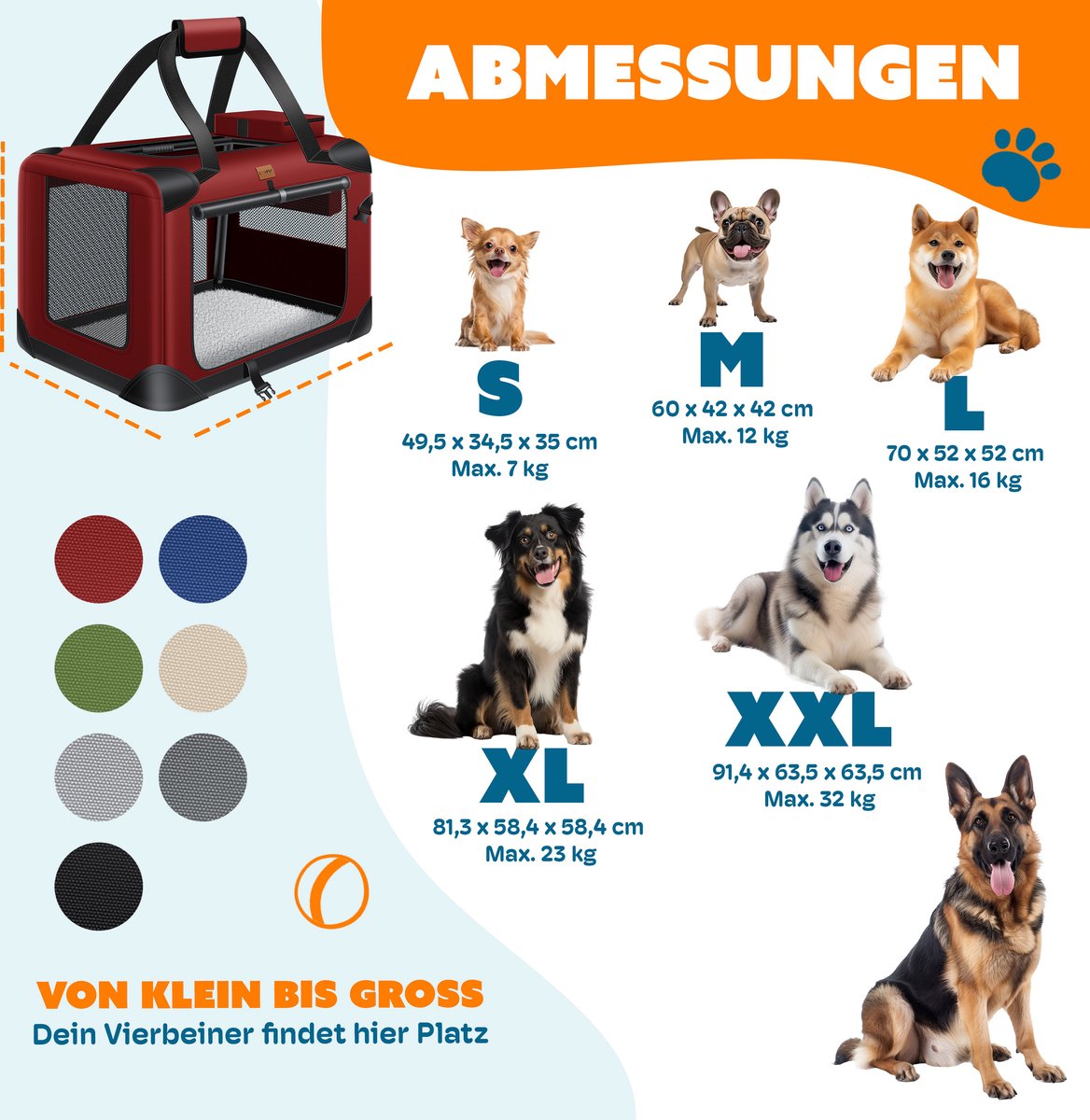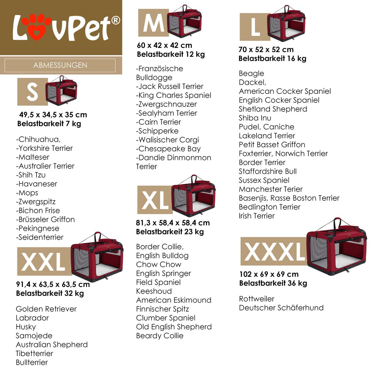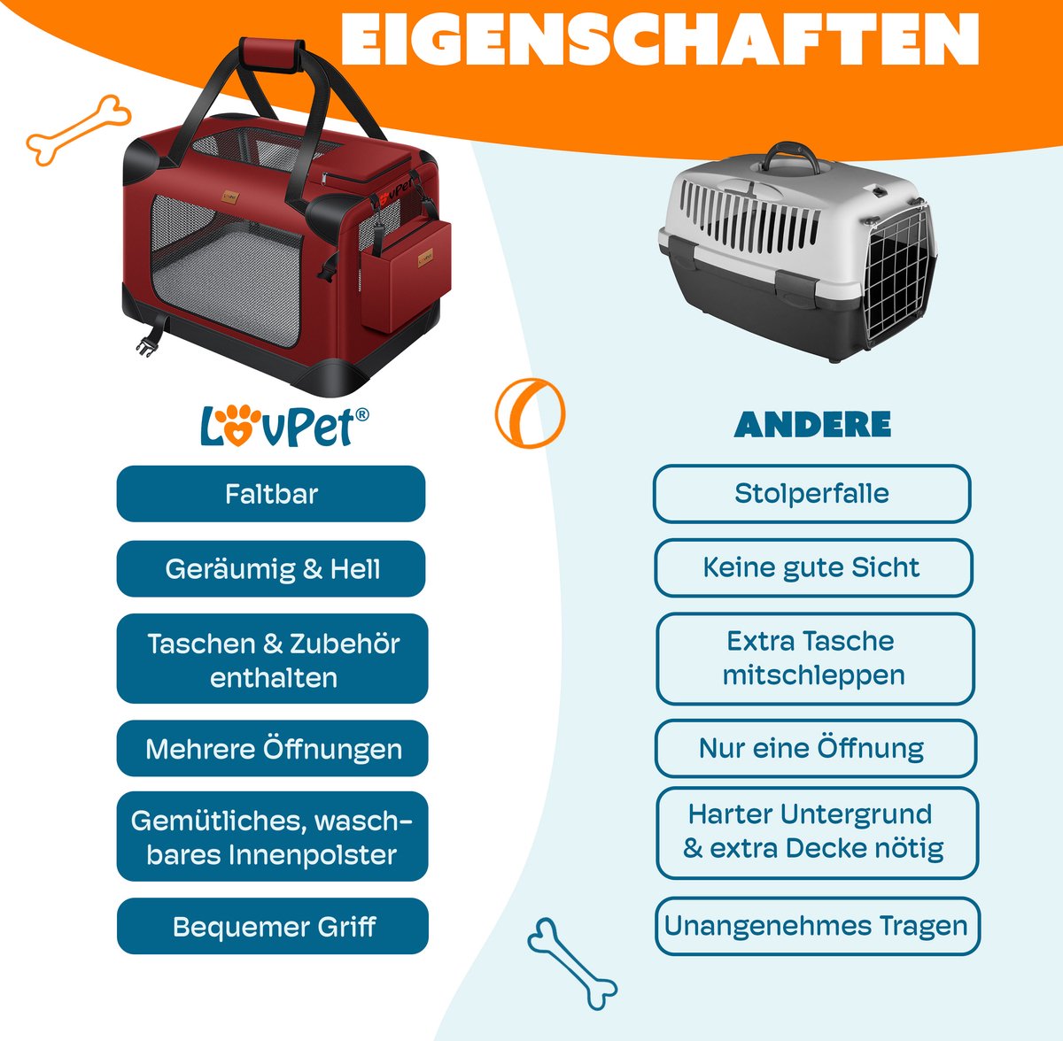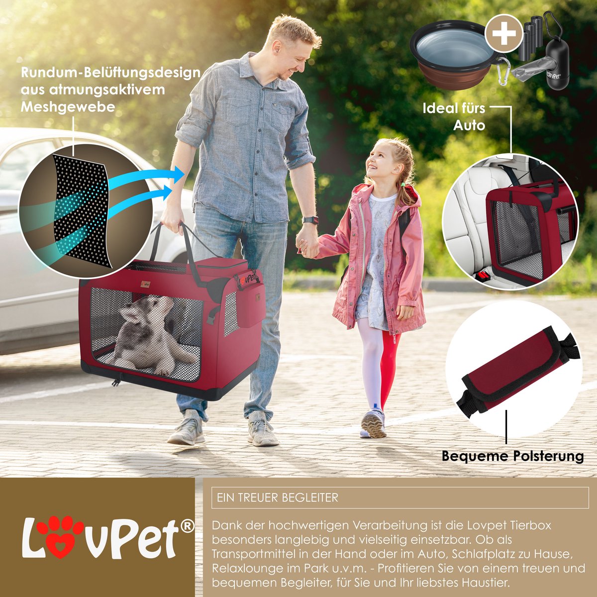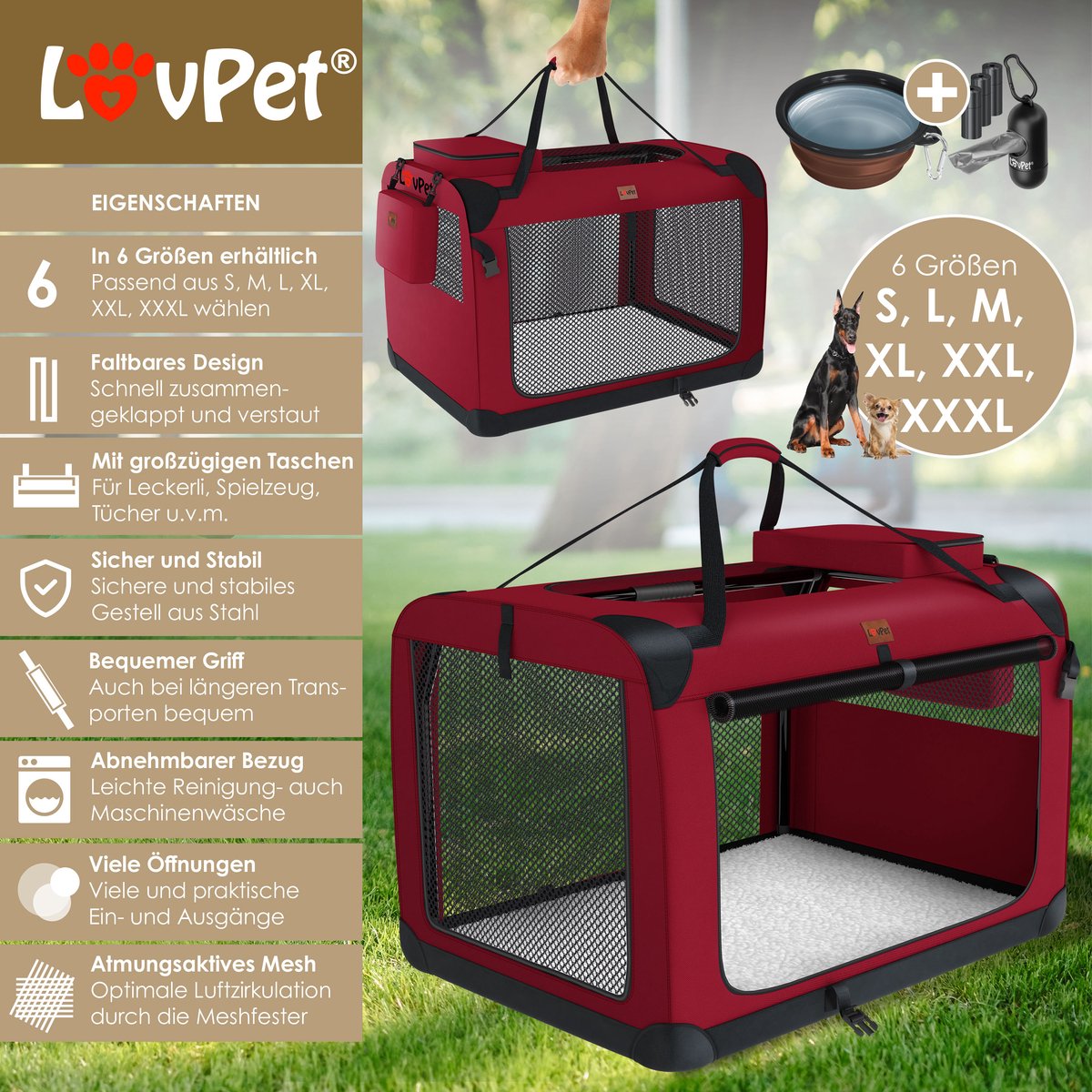 LovPet opvouwbare transportbox voor honden en katten, incl. twee praktische zakken, uitneembare en wasbare binnenbekleding, ideale ventilatie en een breed gezichtsveld.
