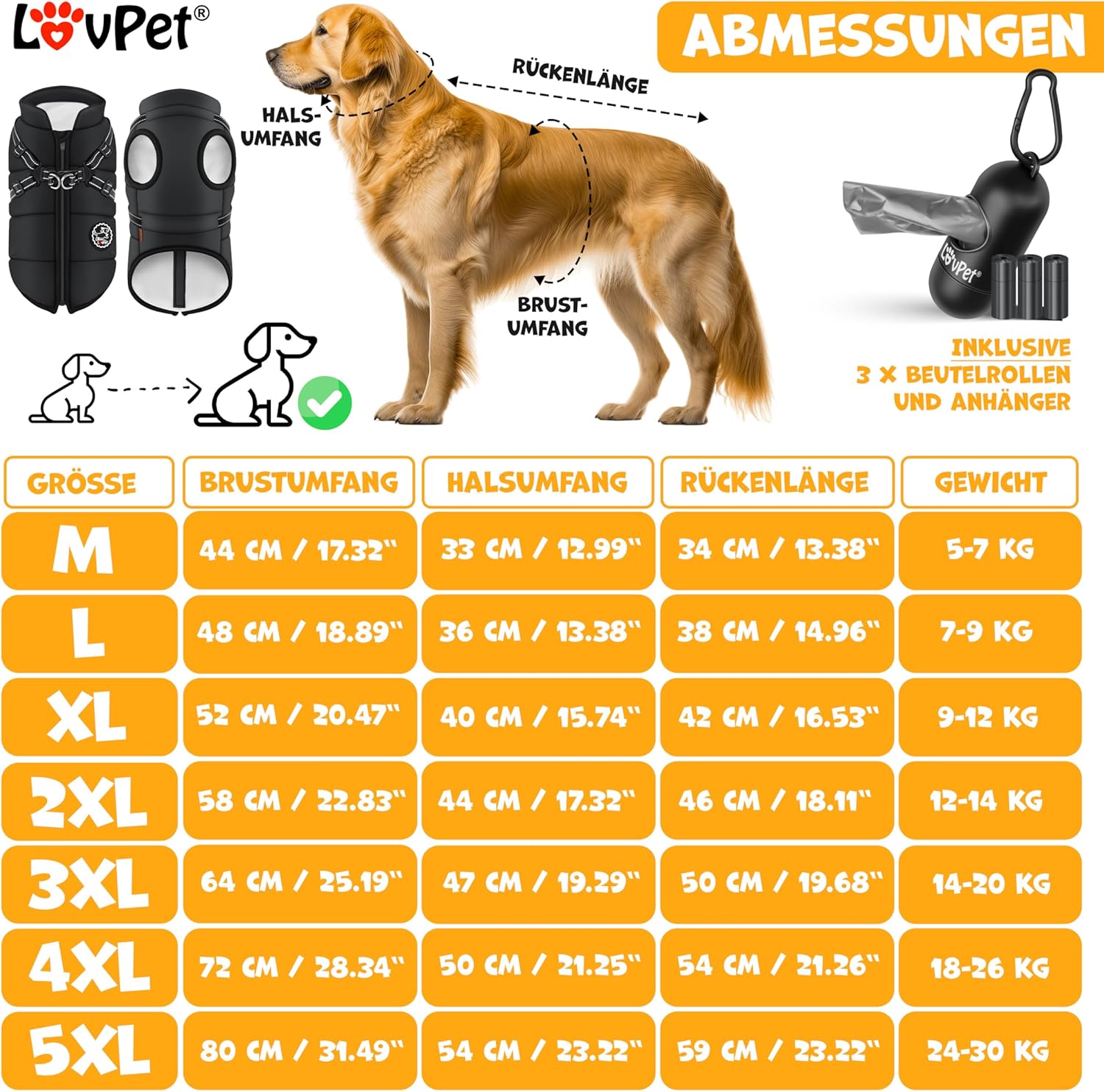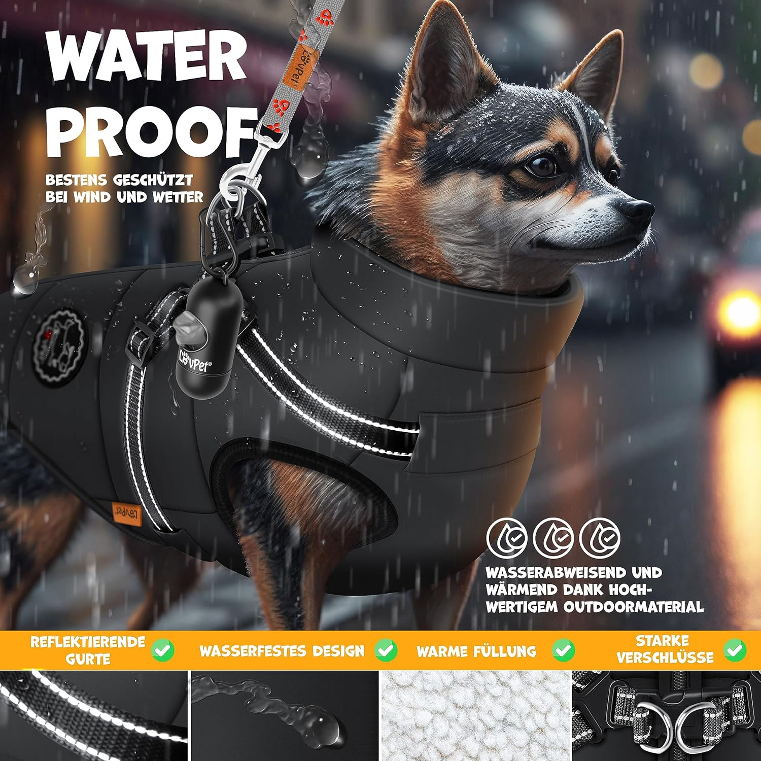 Accessoires: in elke hondenjas zijn bovendien 3 rollen zakken en een hanger inbegrepen, zodat je altijd alles wat belangrijk is voor je hond binnen handbereik hebt. Zo ben je optimaal voorbereid, ongeacht waar je met je geliefde hond naartoe gaat. Bovendien groeit de jas dankzij de verstelbaarheid mee met je hond, zodat je geen nieuwe jas hoeft te kopen als je trouwe metgezel groter wordt.
