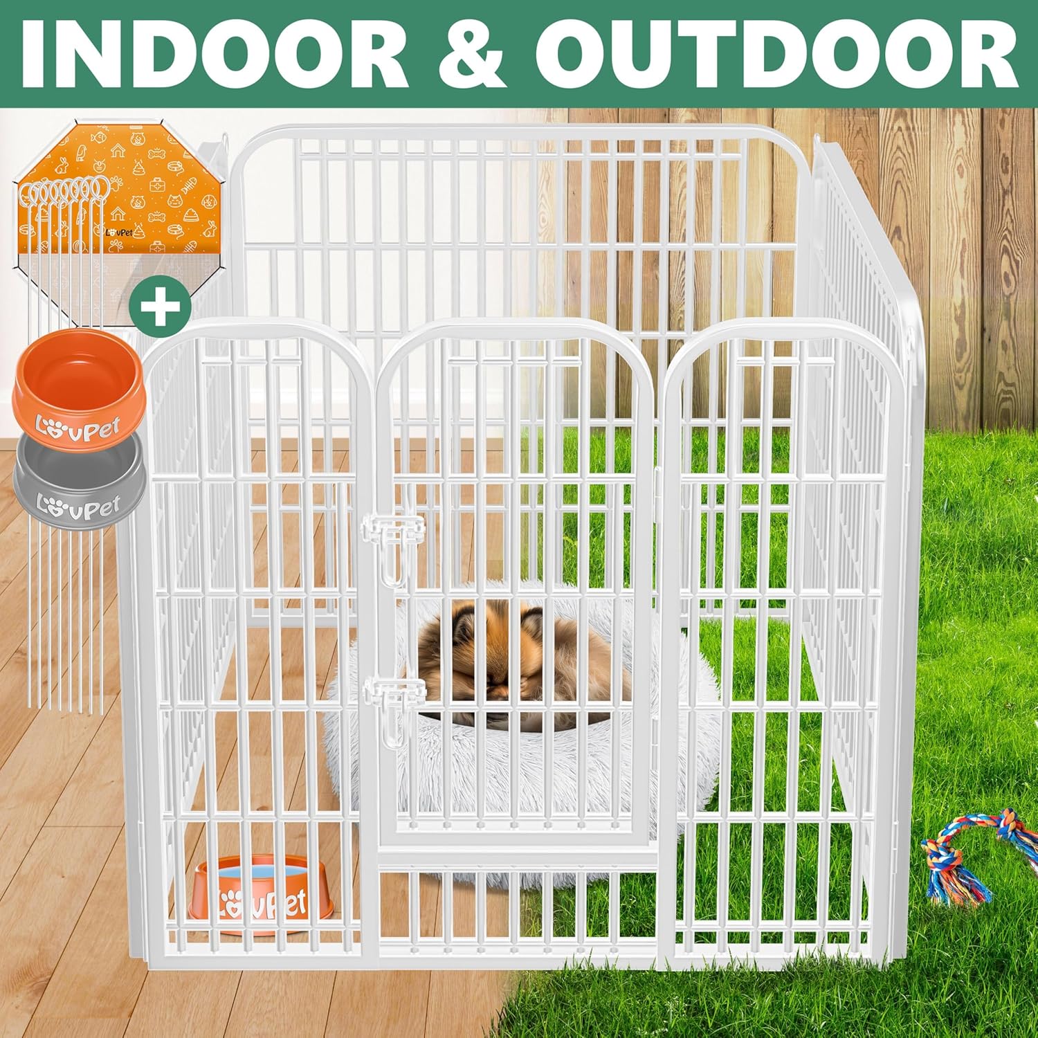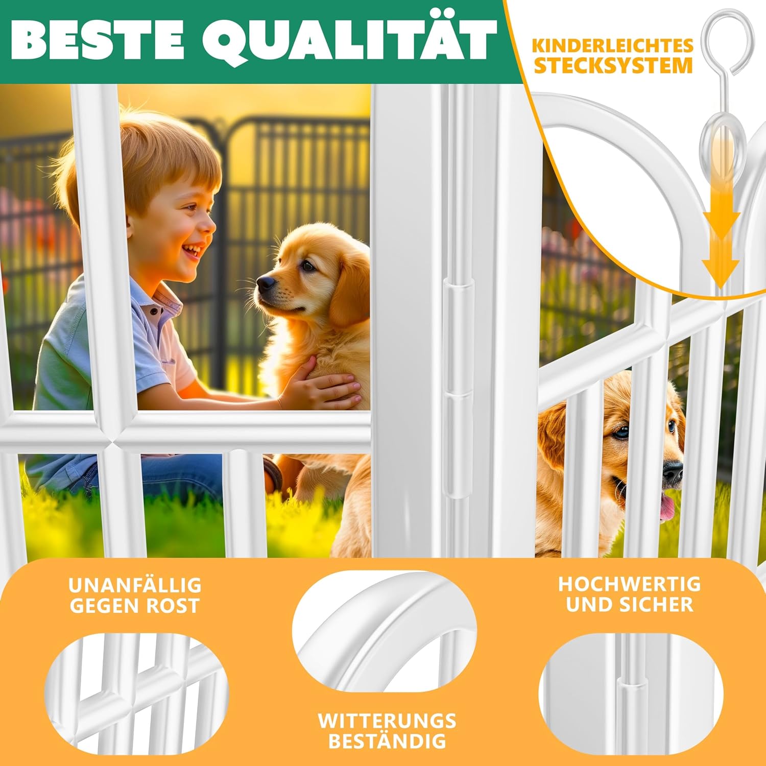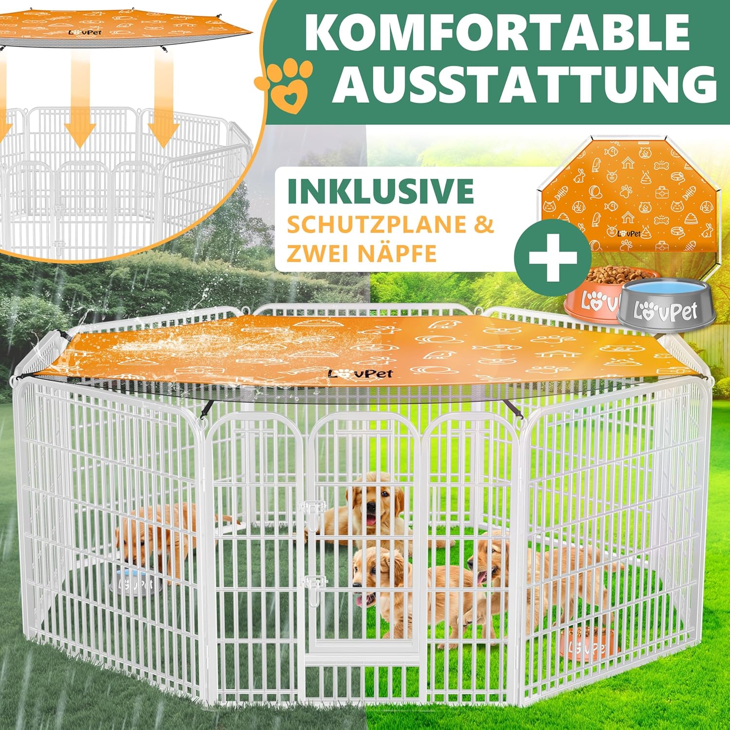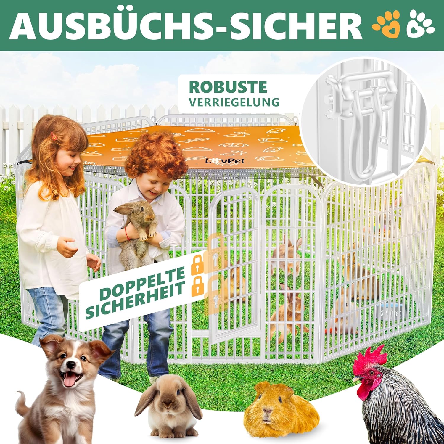 Zodra uw nieuwe puppy of kat er eindelijk is , vraagt u zich vaak af hoe u de kleintjes het beste in de gaten kunt houden . Of het nu in uw tuin of thuis is , het is vaak onmogelijk om de omgeving volledig puppyvriendelijk te maken . Onze ren is de ideale oplossing : de ren is in een paar stappen opgezet en stelt uw huisdieren in staat om de aangewezen ruimte te verkennen . Dit garandeert optimale bescherming en u kunt uw viervoeters altijd in de gaten houden . Daarom is onze dierenren ideaal voor fokkers , maar ook zeer nuttig voor later gebruik .
