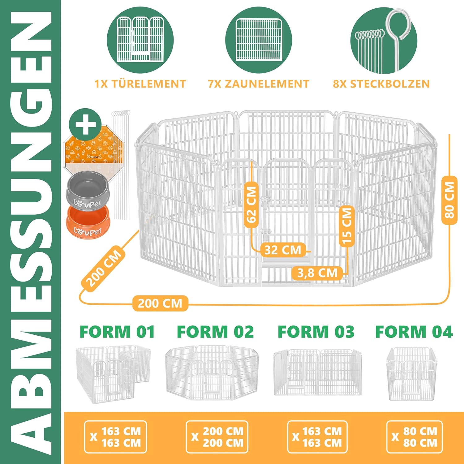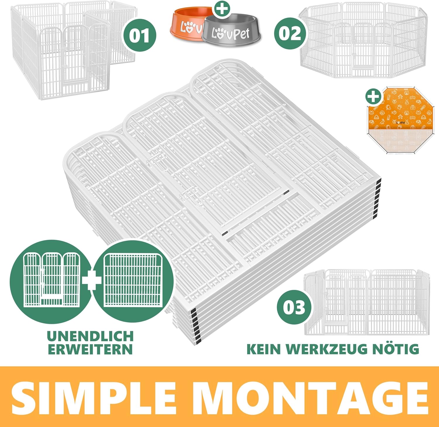 De puppykooi kan worden aangepast aan de grootte of het aantal puppy's . Of het nu achthoekig , rechthoekig , L-vormig of vierkant is , onze buitenren vindt de perfecte plek in elk huis . De hoogwaardige materialen, gemaakt van robuuste ijzeren buizen, zijn extreem stabiel en duurzaam . Desondanks is de montage eenvoudig en ongecompliceerd dankzij praktische stangverbindingen . De plug-in verbindingen zorgen voor een snelle montage en demontage , waardoor alle onderdelen gemakkelijk in de auto kunnen worden opgeborgen .