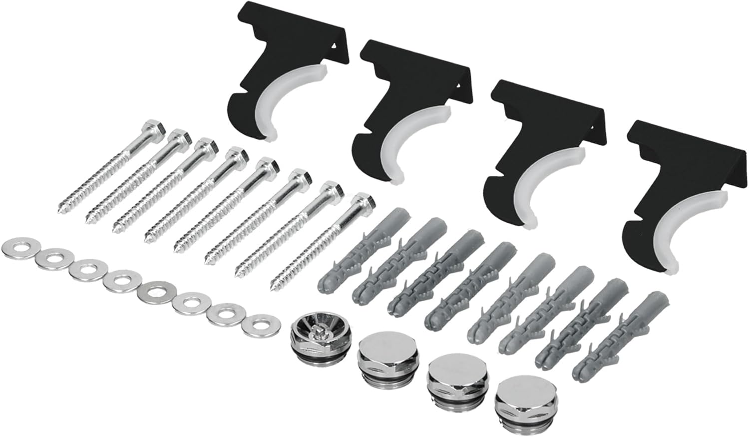Complete installatieaccessoires, 4 x wandhouders, 8 x schroeven en pluggen, 8 x houderschroef, 8 x schijven, 4 x afdekking