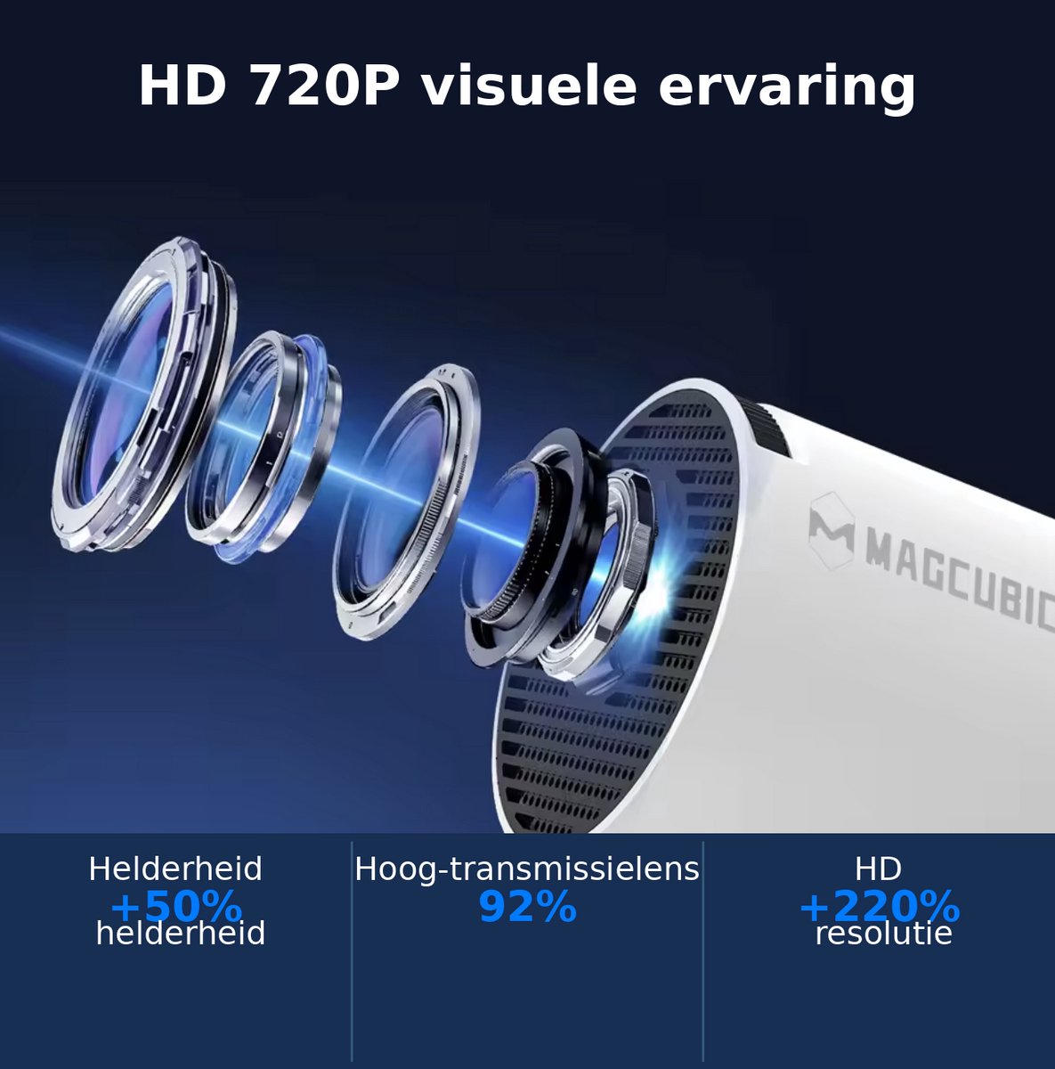 Ontdek een geheel nieuwe manier van kijken met de MAGCUBIC HY300 Pro – een ultramoderne beamer die krachtige technologie combineert met een stijlvol, compact design. Of je nu in je woonkamer een thuisbioscoop creëert, buiten op de camping een filmavond organiseert, of onderweg presenteert, deze projector past zich moeiteloos aan elke situatie aan.