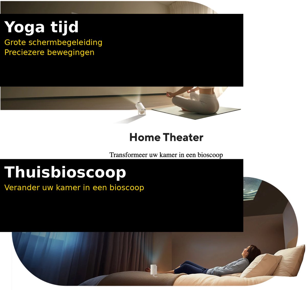 Voor de liefhebbers van een goed fantasyboek of een meeslepende film — deze beamer tovert elk oppervlak om tot een magisch venster. Zet je favoriete verhaal aan, dim het licht… en laat de wereld verdwijnen in epische landschappen, draken, magie en onontdekte werelden. Altijd een vleugje betovering op de achtergrond.