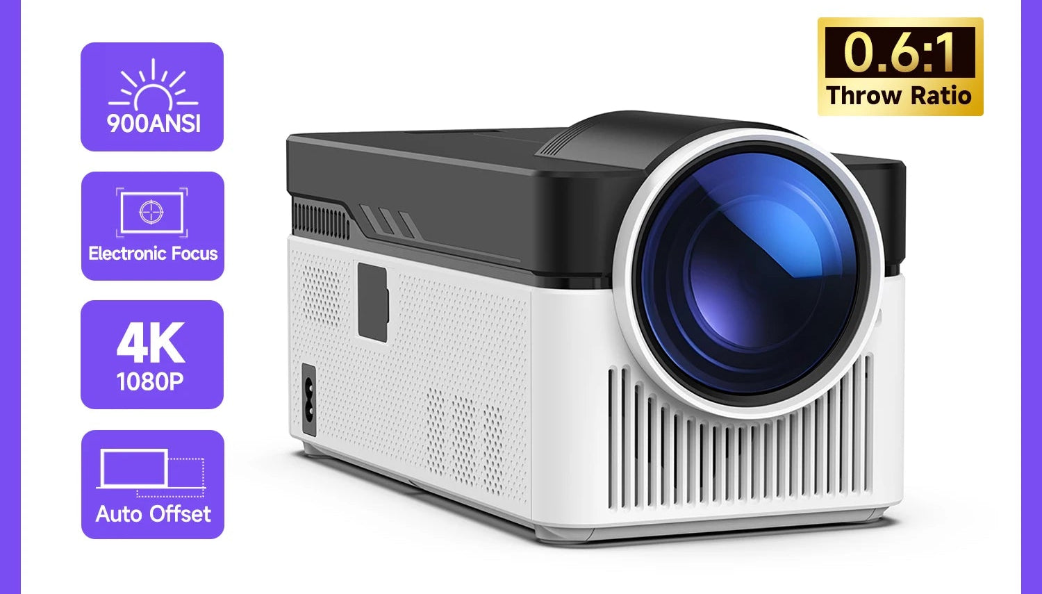 0,6:1 projectieworpverhouding en automatische offset & 1080P & 4K & 8K & 900 ANSI