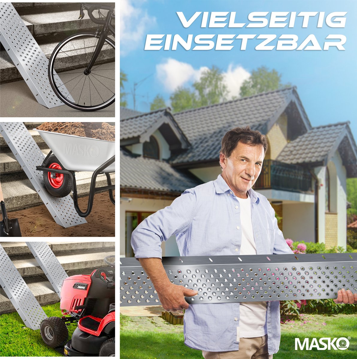 MASKO oprijhelling set van 2, hoogwaardige en stabiele staalconstructie voor vele toepassingsgebieden, hoge veiligheid door bovenaanslag en antislip oppervlak, eenvoudige bediening voor foolproof laden