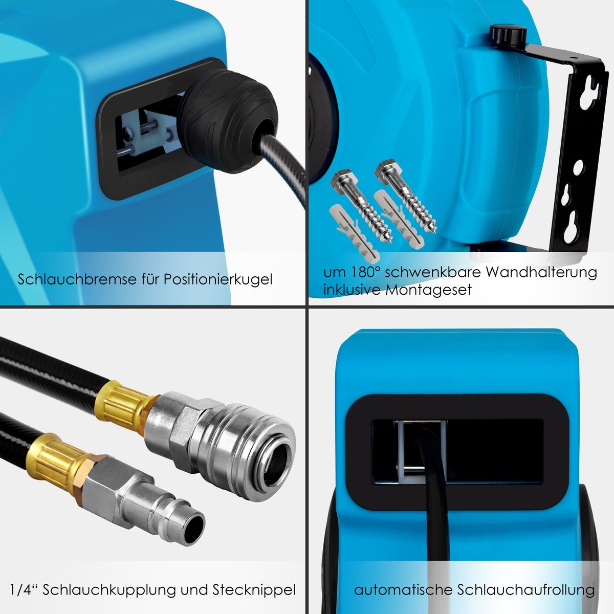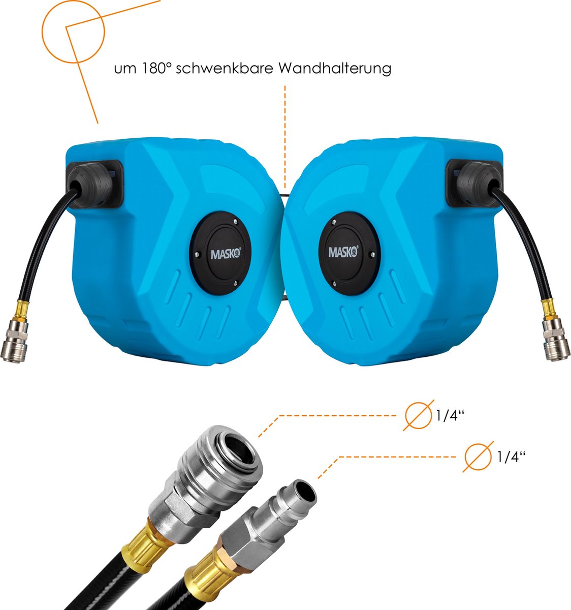MASKO® Automatische Luchtslanghaspel 1/4 Aansluiting - Luchthaspel Wandhaspel Persluchtslang Haspel
