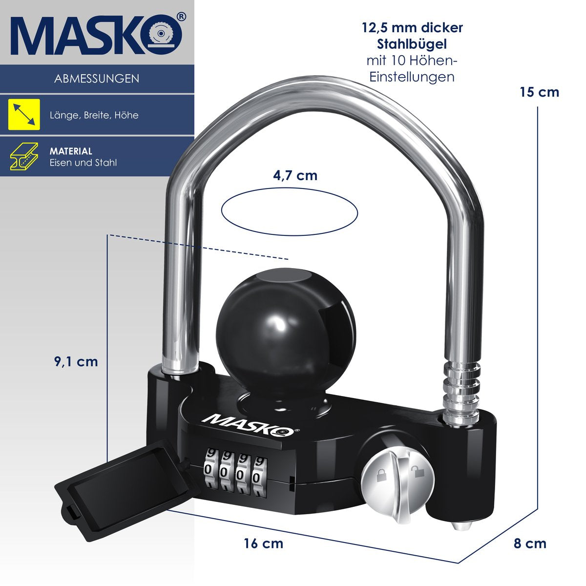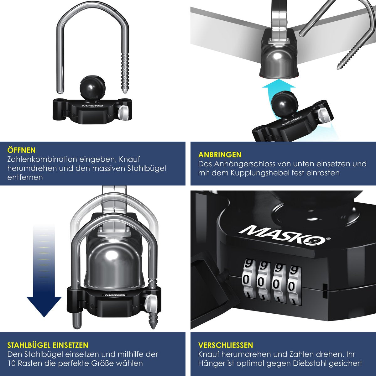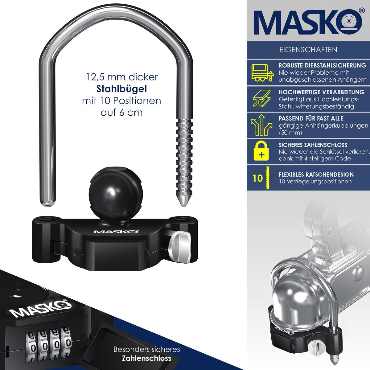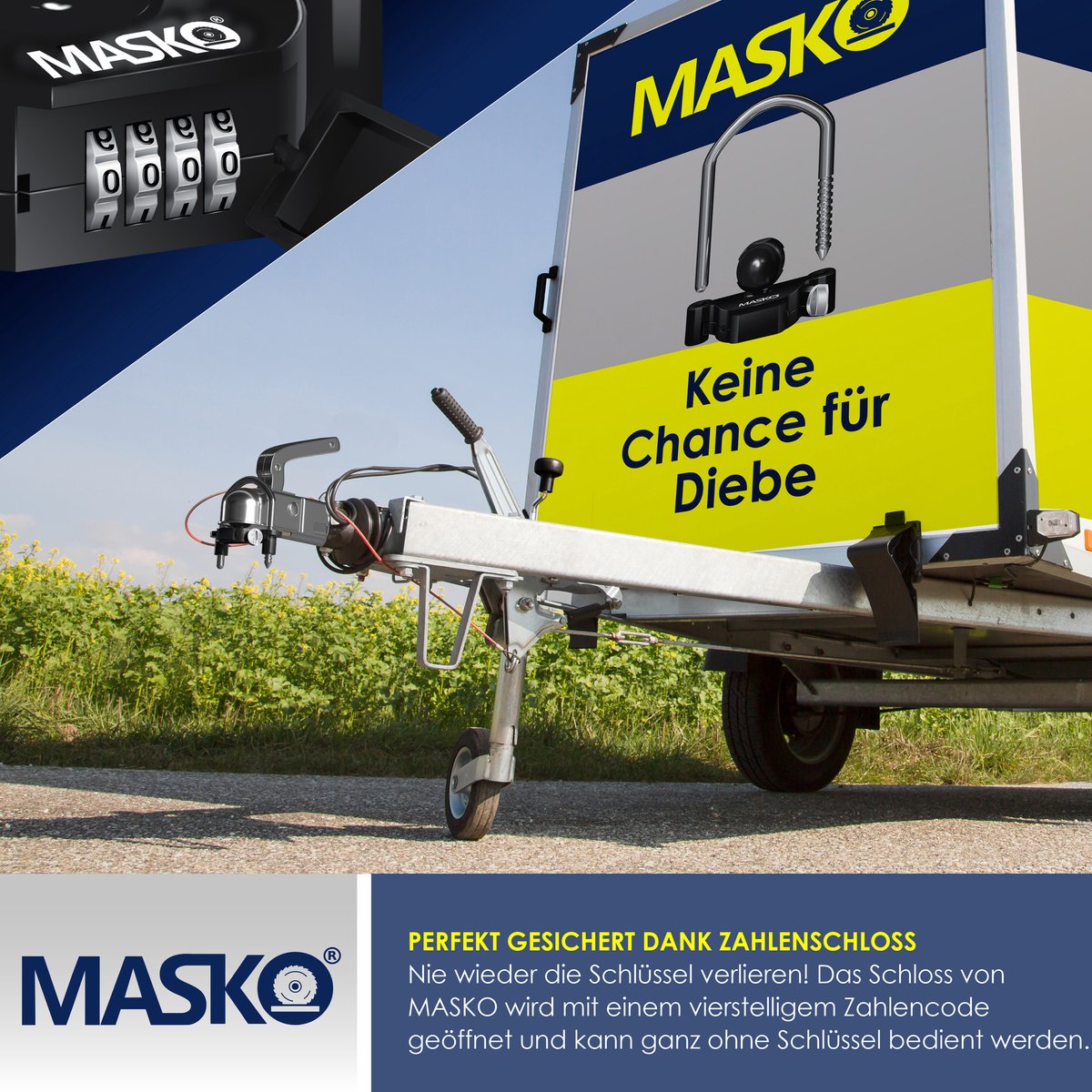 MASKO Premium aanhangerslot met geïntegreerd cijferslot, stabiel en veilig dankzij hoogwaardige materialen en solide constructie, ideaal gebruik voor aanhangers en caravans, geschikt voor alle gangbare aanhangerkoppelingen.