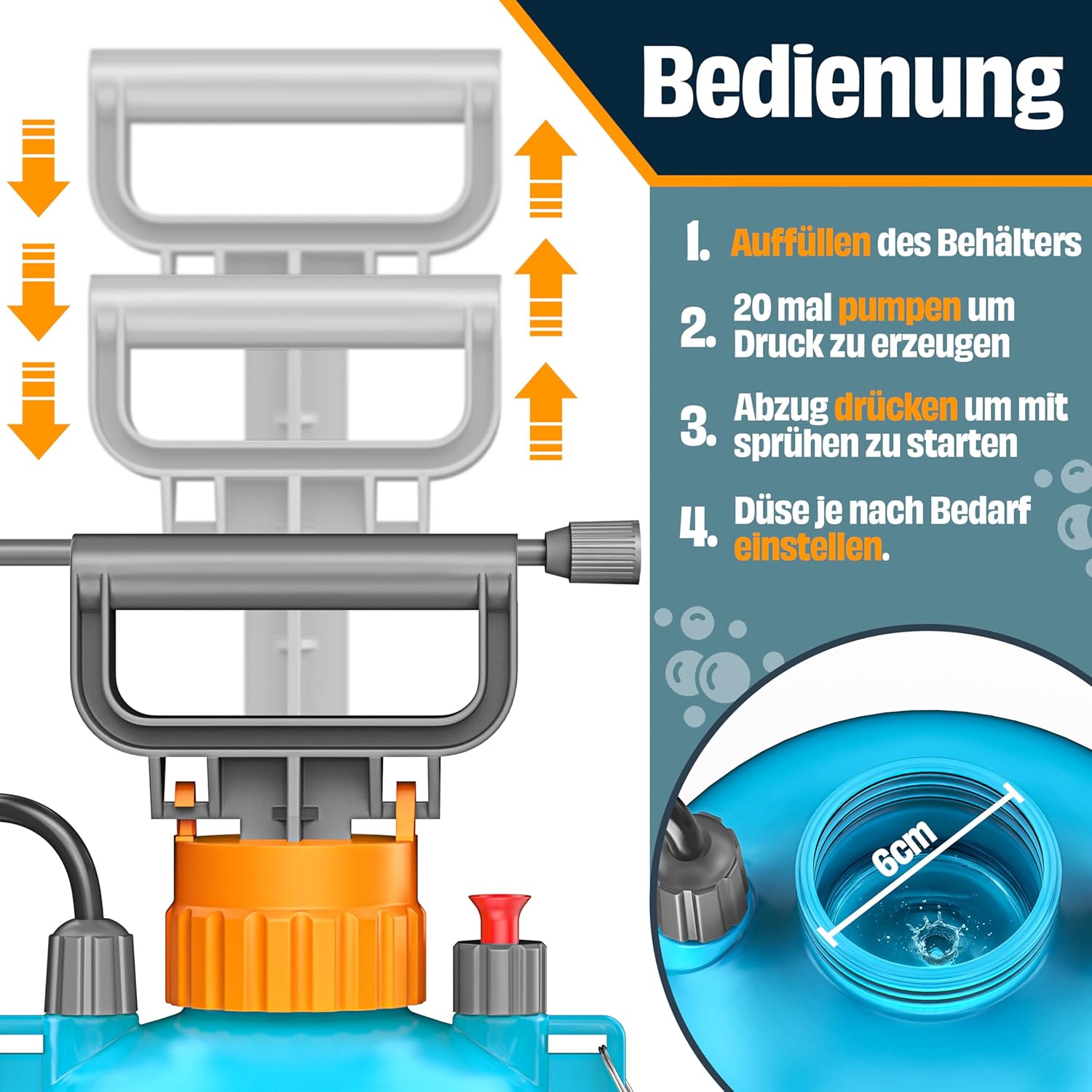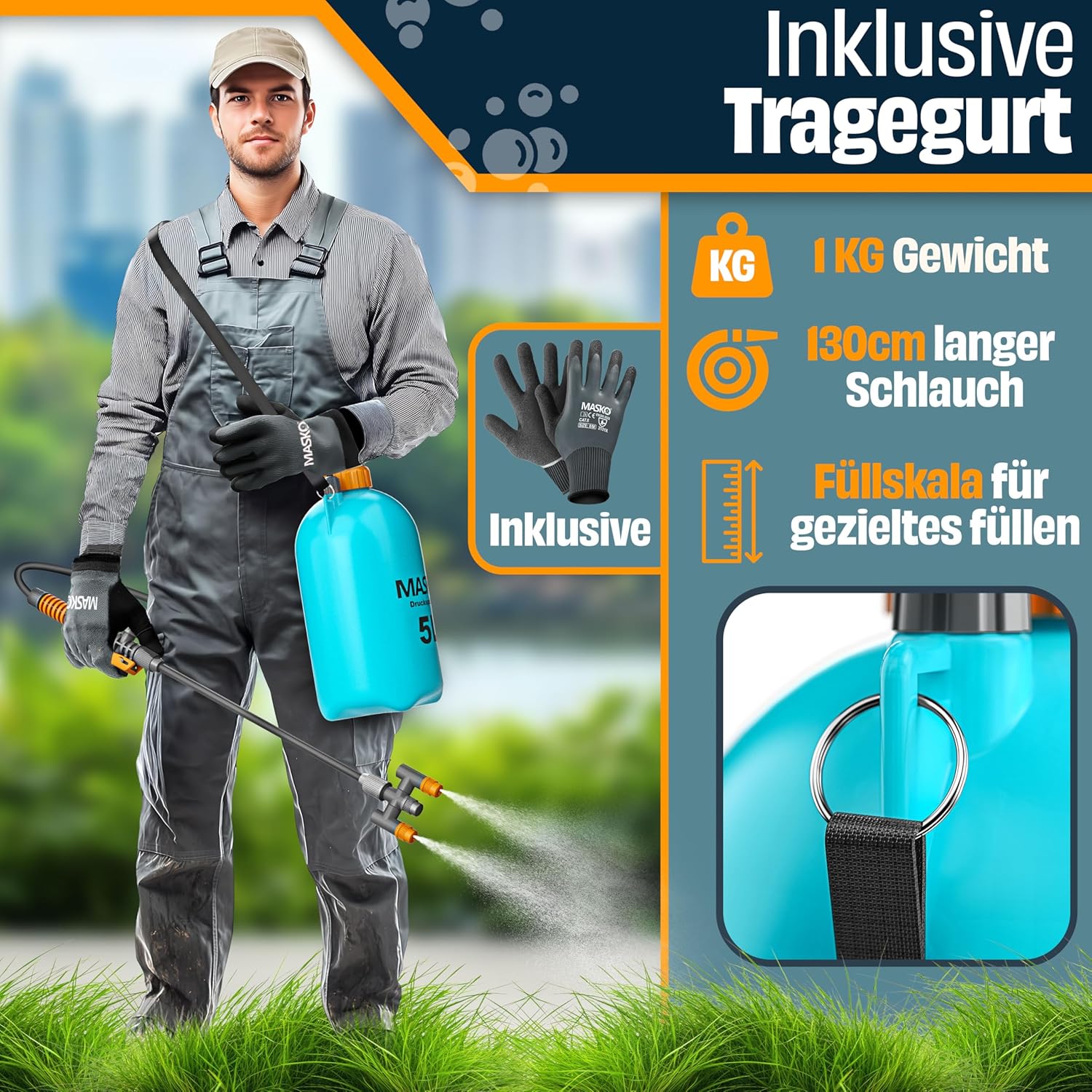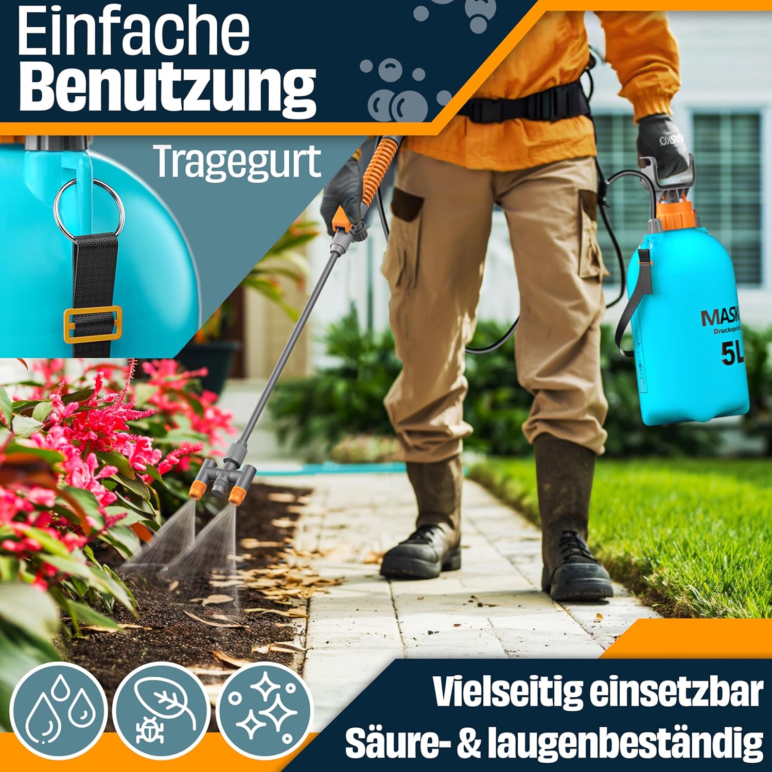 Veelzijdig te gebruiken: voor tuinen, buiten en terrassen: de MASKO drukspuit is de perfecte oplossing voor vele toepassingen zoals plantenirrigatie, auto- of terrasreiniging en het aanbrengen van gewasbeschermingsmiddelen – krachtig, betrouwbaar en flexibel