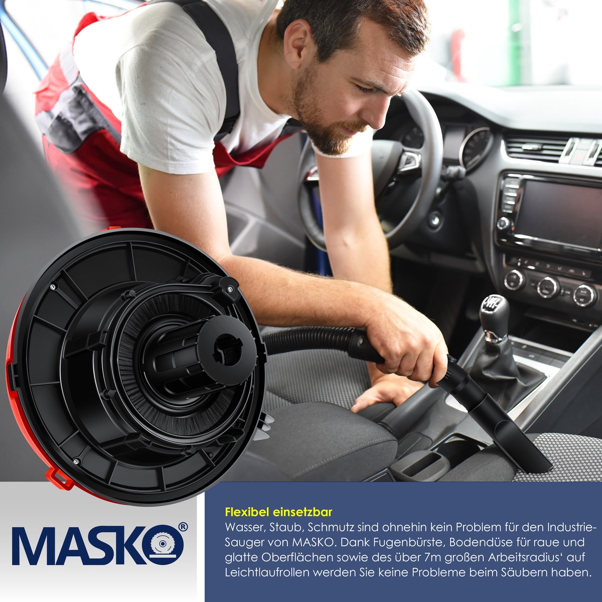 Water, stof en vuil zijn geen uitdaging voor de krachtige stofzuiger van het merk MASKO. Dankzij de meegeleverde kierenborstel, het vloermondstuk voor ruwe en gladde oppervlakken en de werkradius van 7 m op soepele easy-roll wielen heb je geen problemen met schoonmaken in elke situatie .