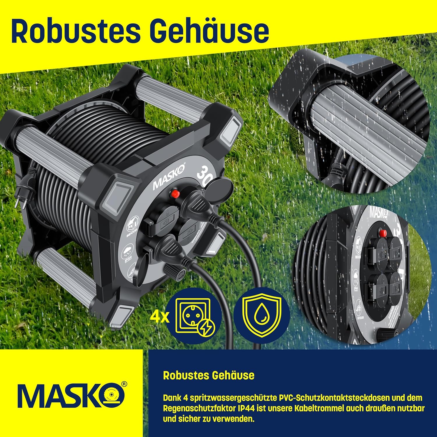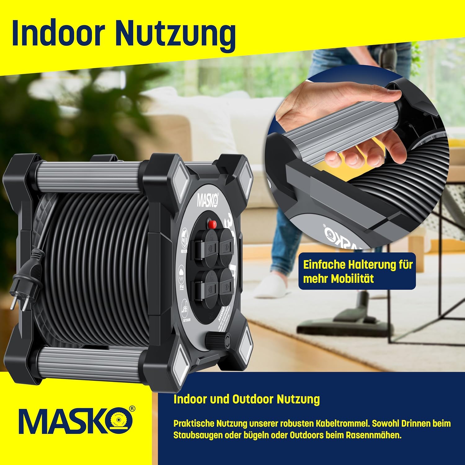 • Veelzijdig inzetbaar: verkrijgbaar in verschillende lengtes van 20 m tot 50 m, past de MASKO kabelhaspel zich aan je individuele behoeften aan. Hij is perfect geschikt voor doe-het-zelfprojecten, tuinieren en professionele toepassingen. Of het nu gaat om stofzuigen, strijken of grasmaaien, deze kabelhaspel biedt je altijd de nodige flexibiliteit en bereik om je werkzaamheden efficiënt en veilig uit te voeren.