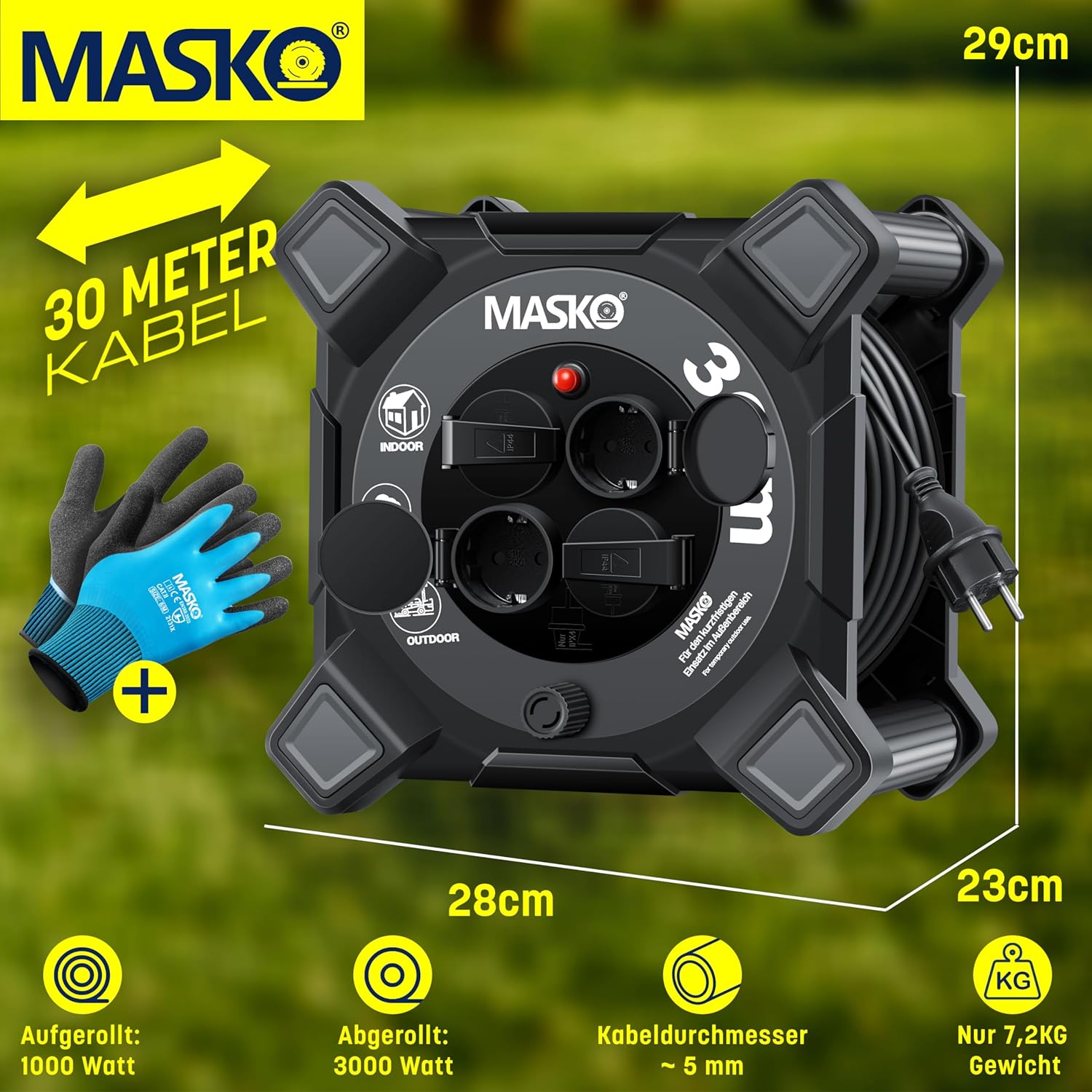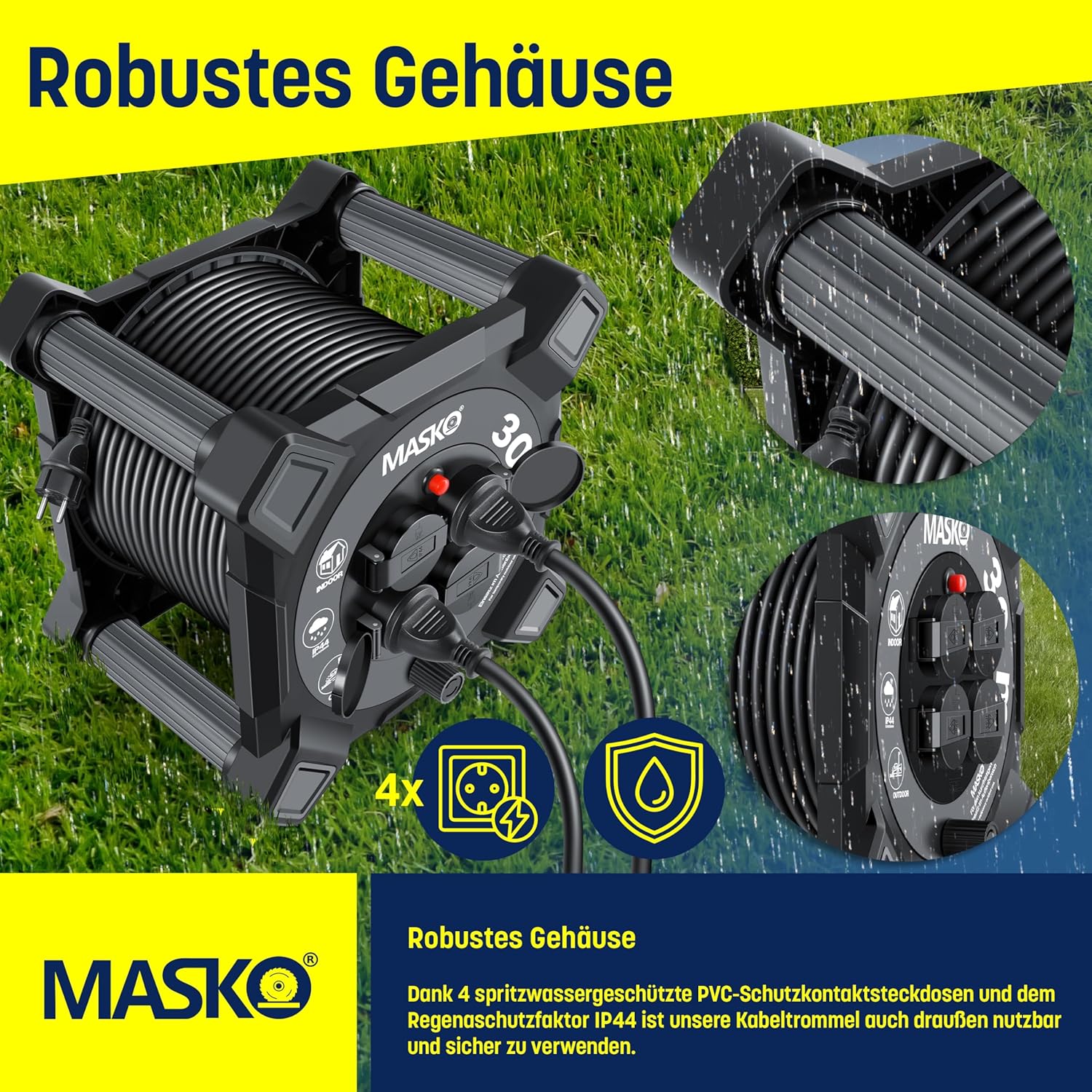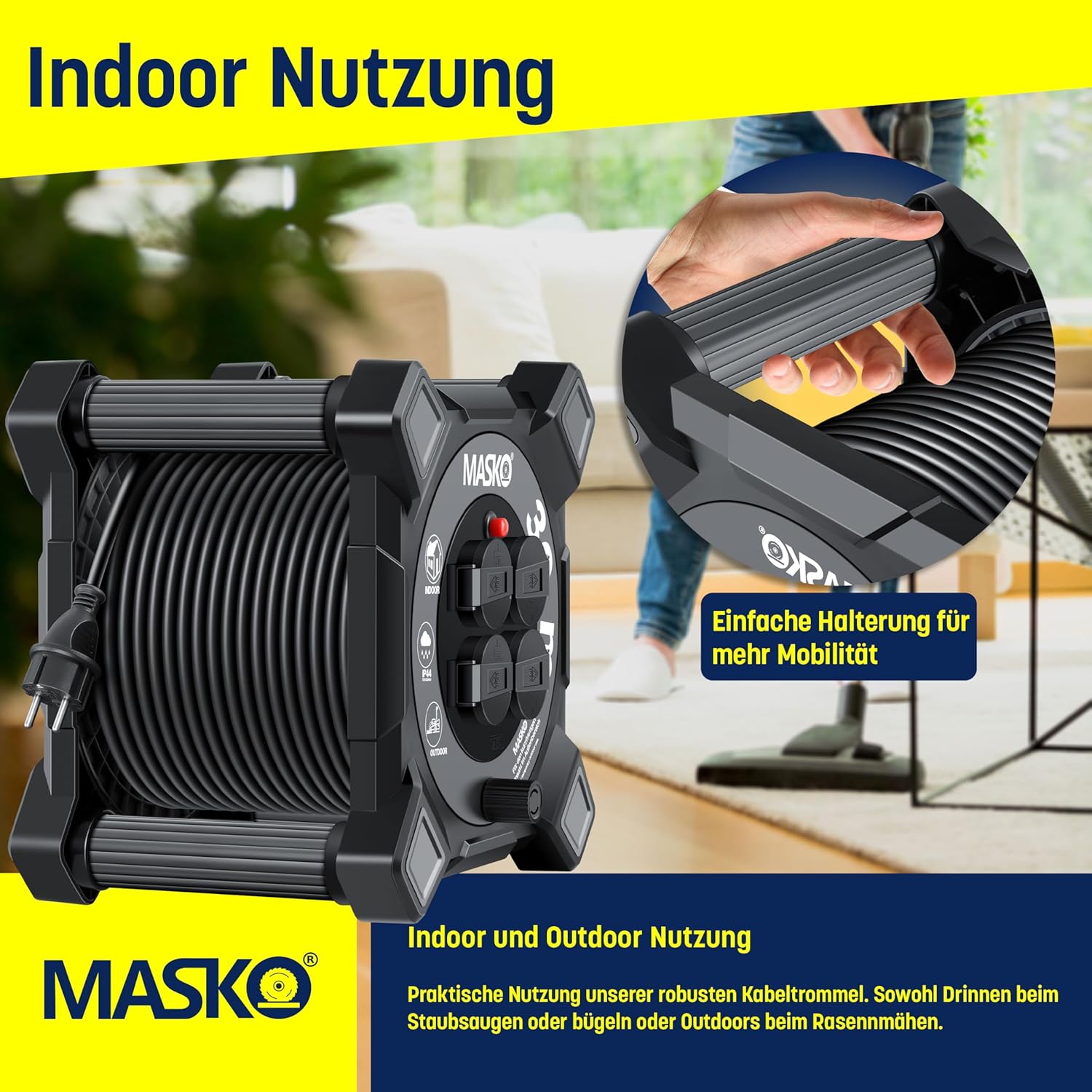 Veelzijdig inzetbaar: verkrijgbaar in verschillende lengtes van 20 m tot 50 m, past de Masko kabelhaspel zich aan je individuele behoeften aan. Hij is perfect geschikt voor doe-het-zelfprojecten, tuinieren en professionele toepassingen. Of het nu gaat om stofzuigen, strijken of grasmaaien, deze kabelhaspel biedt je altijd de nodige flexibiliteit en bereik om je werkzaamheden efficiënt en veilig uit te voeren.