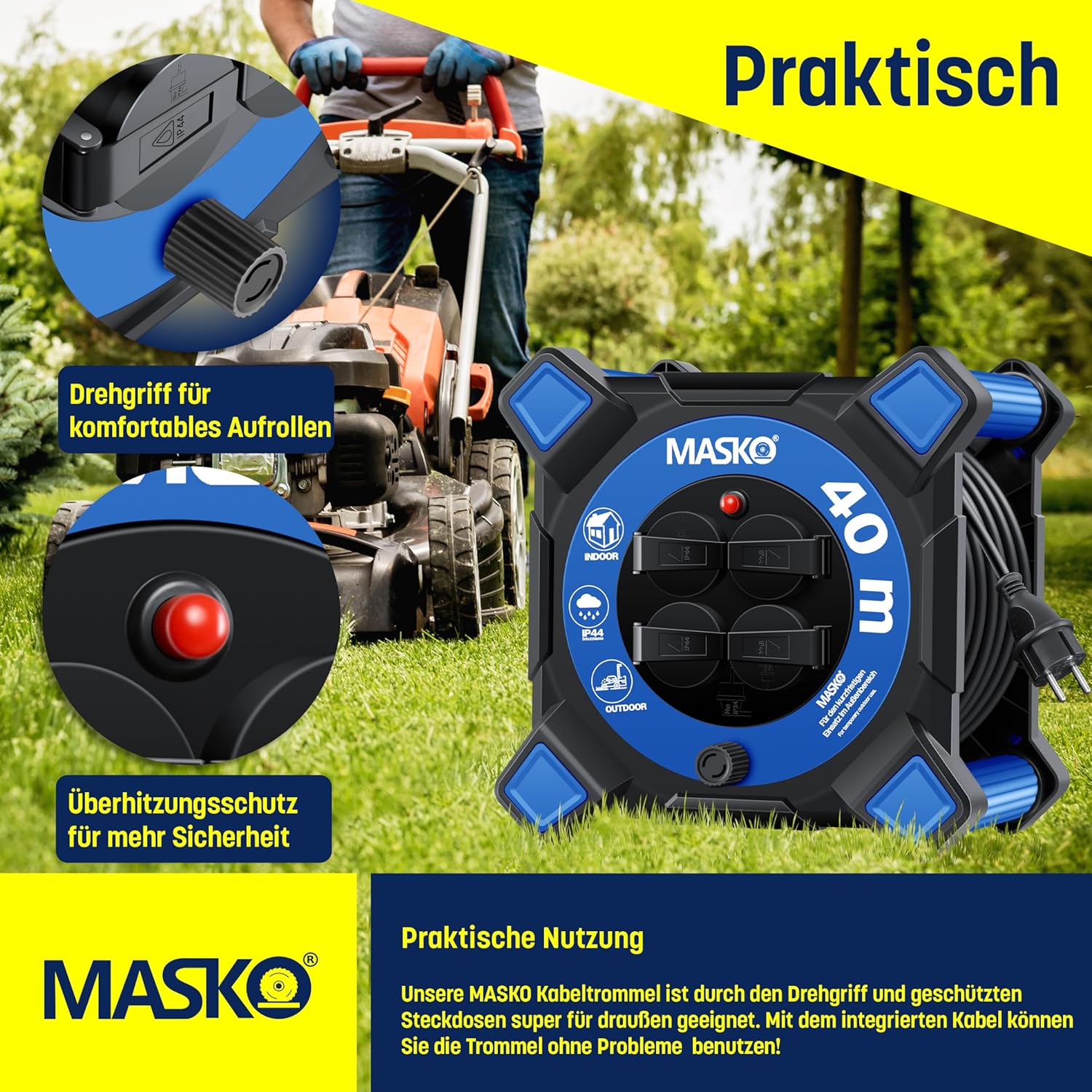 Veelzijdig inzetbaar: verkrijgbaar in verschillende lengtes van 20 m tot 50 m, past de MASKO kabelhaspel zich aan je individuele behoeften aan. Hij is perfect geschikt voor doe-het-zelfprojecten, tuinieren en professionele toepassingen. Of het nu gaat om stofzuigen, strijken of grasmaaien, deze kabelhaspel biedt je altijd de nodige flexibiliteit en bereik om je werkzaamheden efficiënt en veilig uit te voeren.