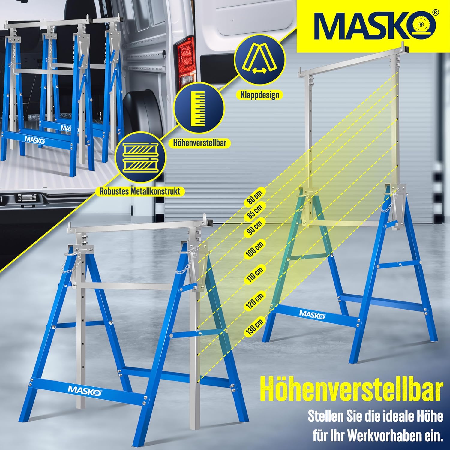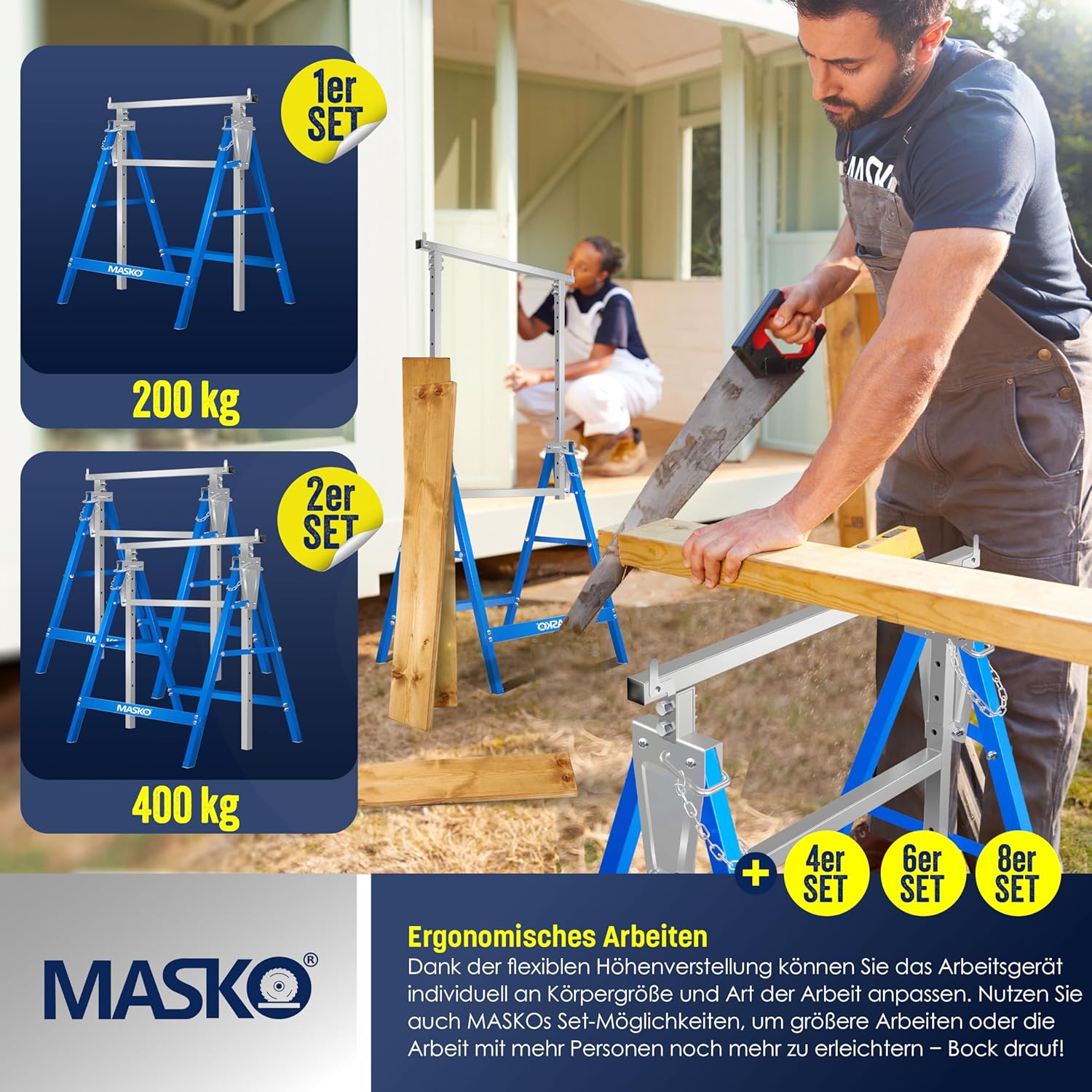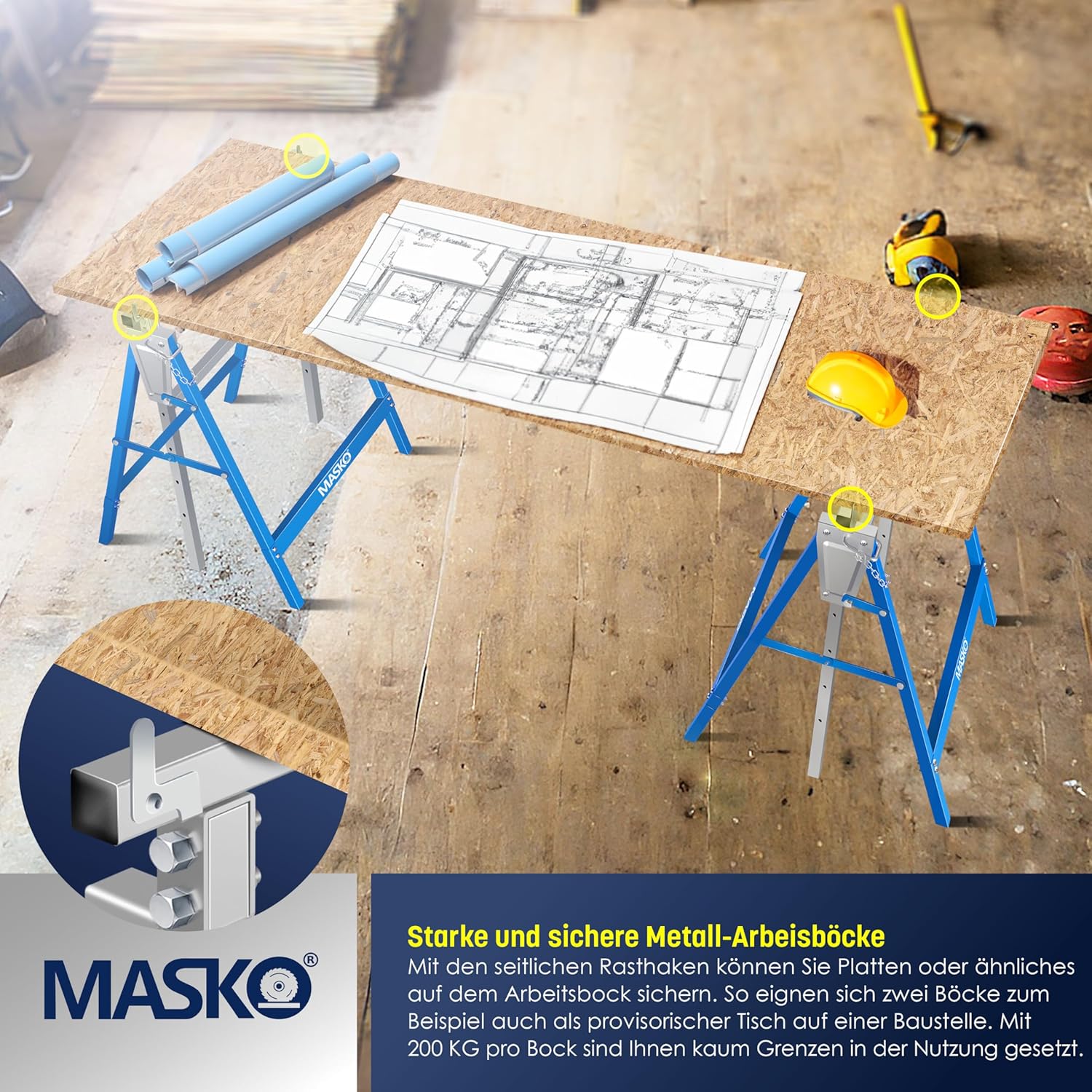 De enkele set heeft een indrukwekkend draagvermogen van 200 kg , terwijl de dubbele set zelfs 400 kg aankan . De zijdelingse vergrendelhaken maken het veilig bevestigen van panelen of soortgelijke items aan de schraag mogelijk, waardoor twee schragen zelfs als tijdelijke tafel op de bouwplaats kunnen dienen. Met de telescopische schraag van MASKO kent u vrijwel geen grenzen aan uw projecten – laat u overtuigen door zijn kracht en veiligheid!