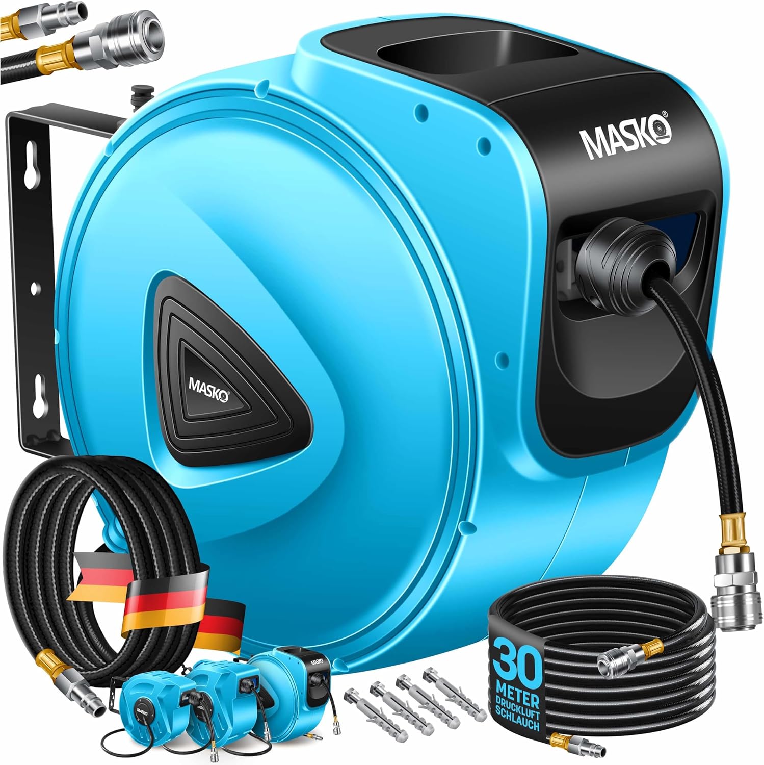 Of het nu gaat om een professionele werkplaats, garage, hobbykelder, landbouw of tuin - met de Masko automatische persluchtslanghaspel is het werk eenvoudig.