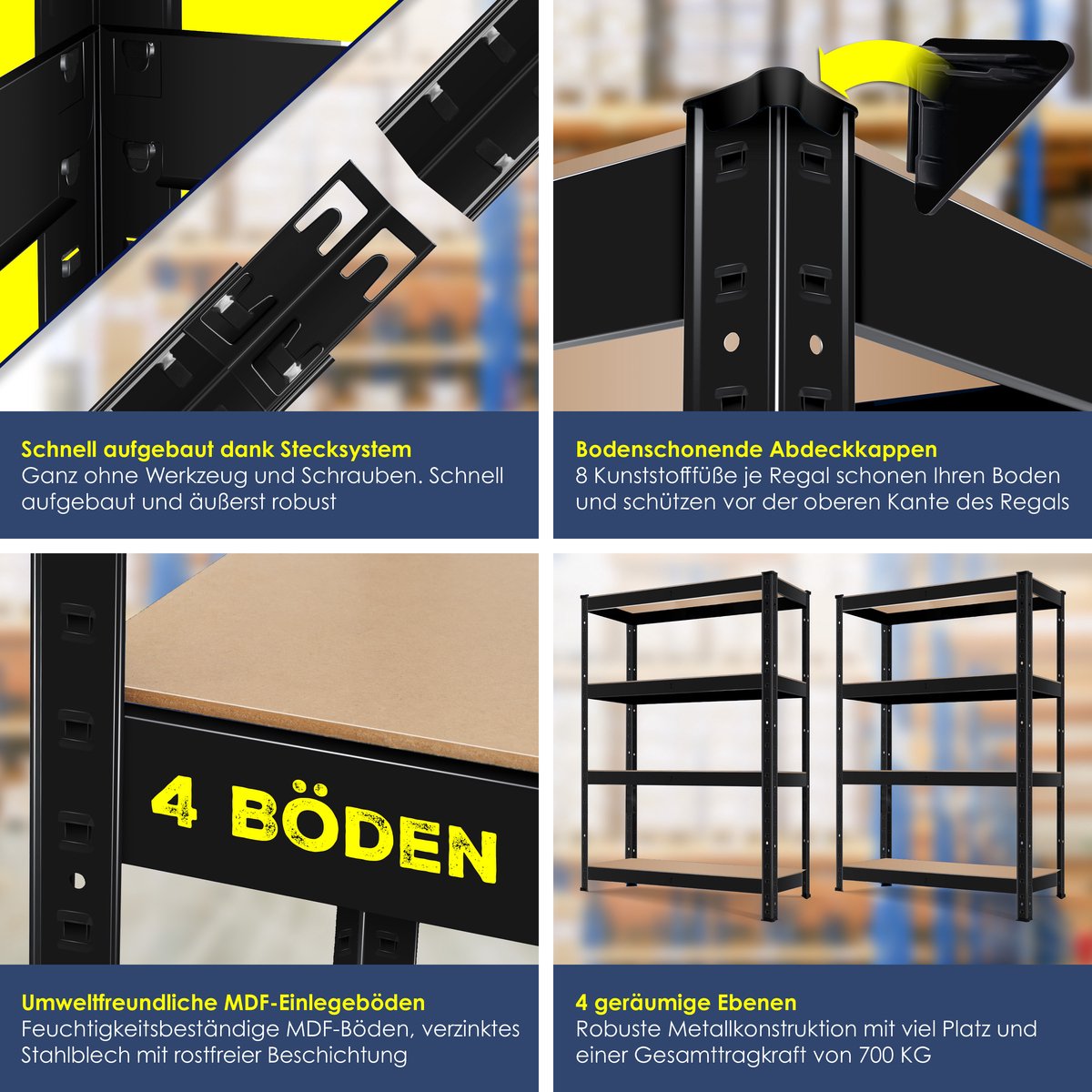 VOOR HUISHOUDELIJKE EN COMMERCIËLE ZAKEN: Deze hoogwaardige rekken zonder schroeven zijn een perfecte opslagoplossing voor zowel huishoudelijke als commerciële ruimtes en bieden veel ruimte zodat alle items netjes gerangschikt zijn. Het is een ideale opberg- en presentatieoplossing voor garages, werkplaatsen, opslagruimtes, balkons en archieven.