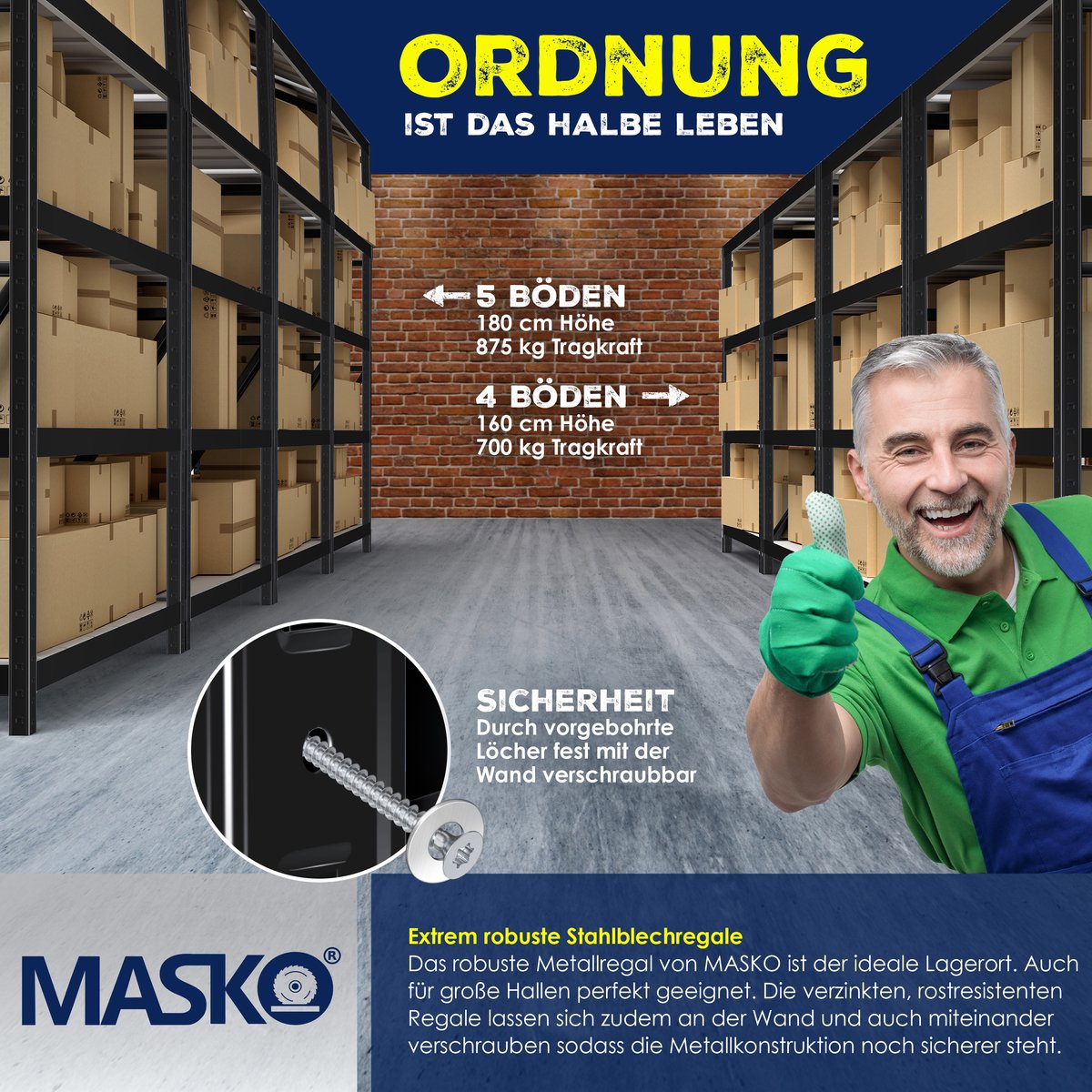 Met het MASKO 2-delig rekkensysteem breng je meer orde en overzicht in je magazijn, werkplaats of garage.