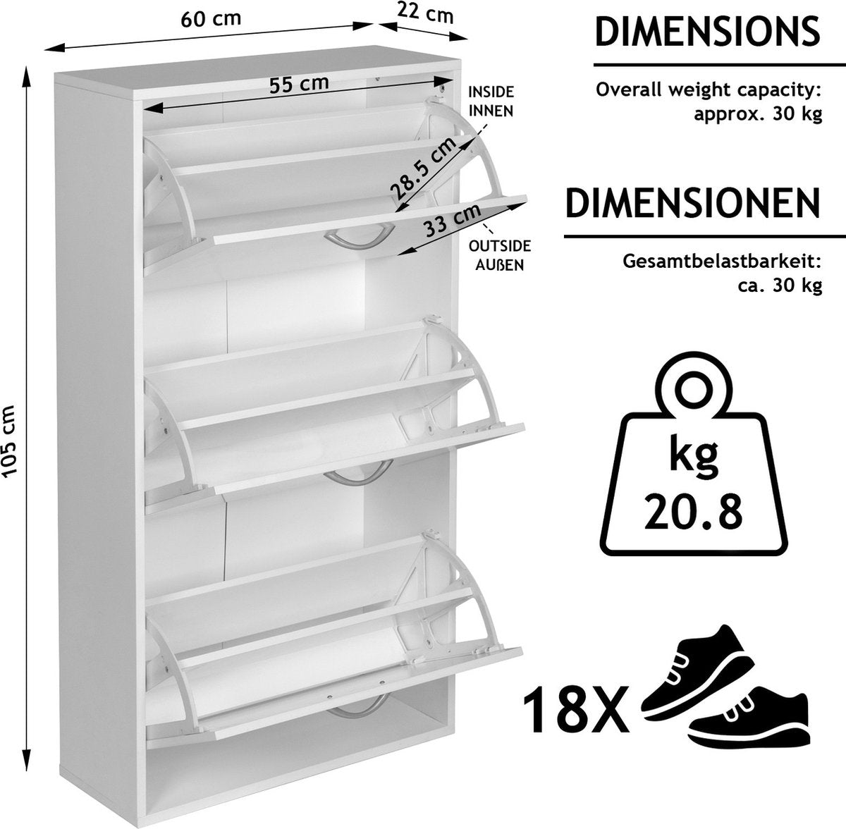 1 x schoenenkast in wit, voor zelfmontage, inclusief: