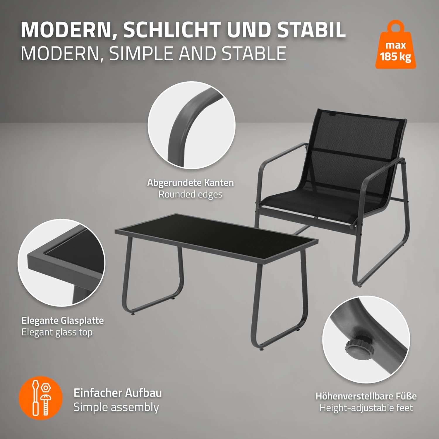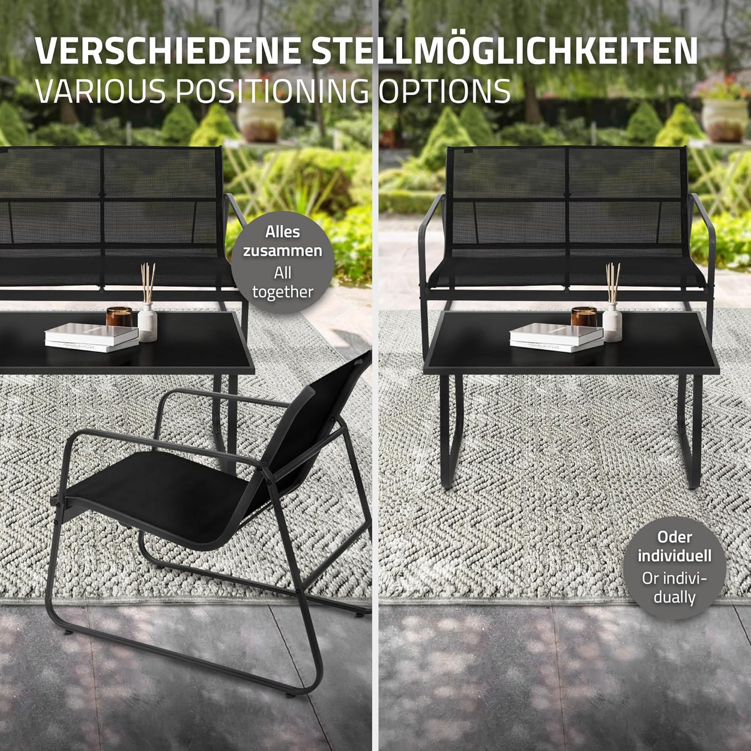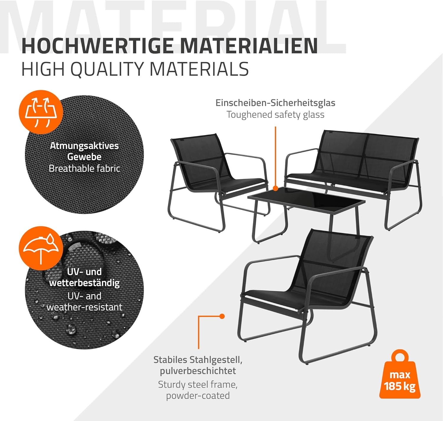 | Maximale belastbaarheid: | Bank: ca. 185 kg. Fauteuil: ca. 120 kg. Tafel: ca. ca. 30 kg |