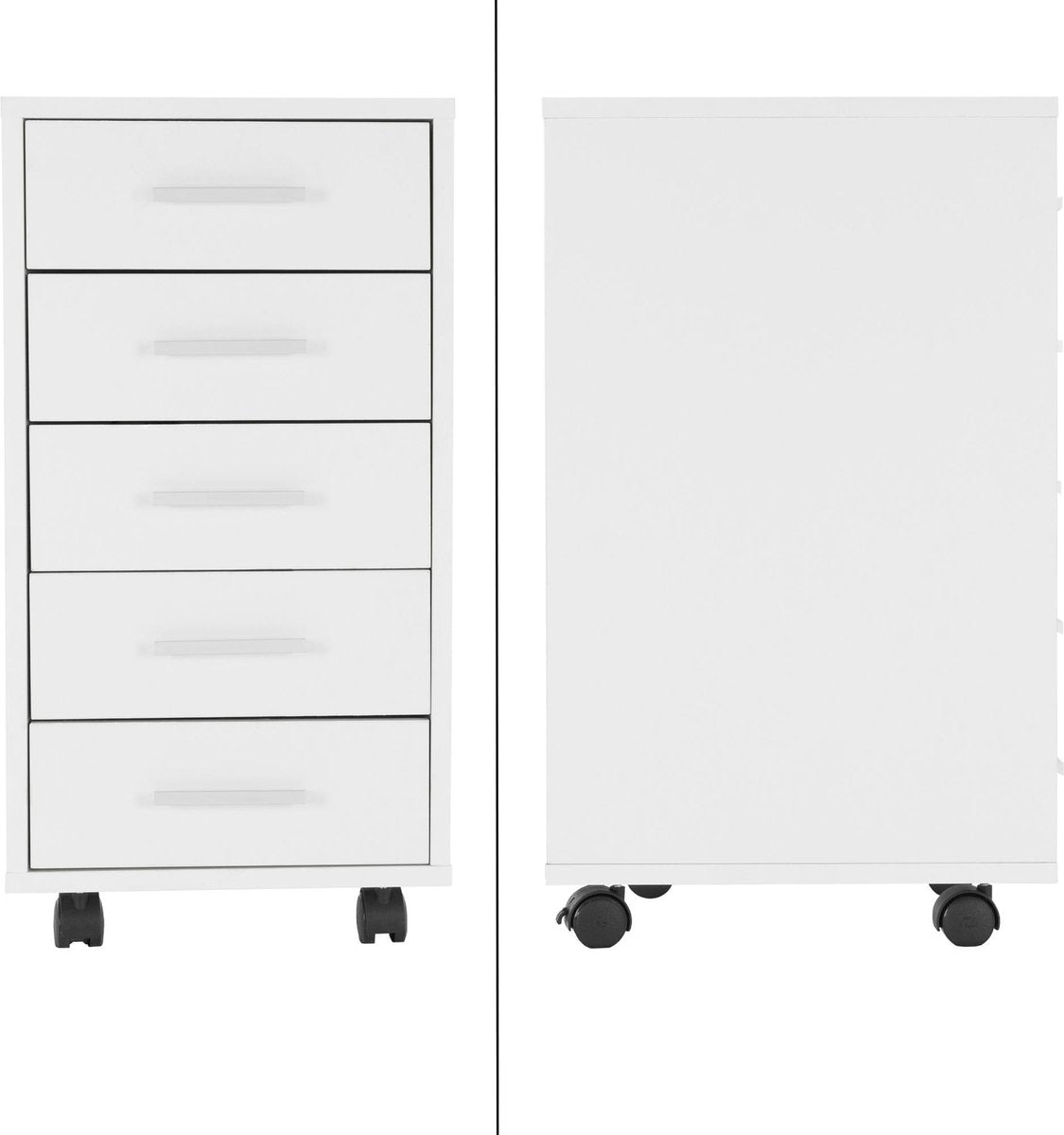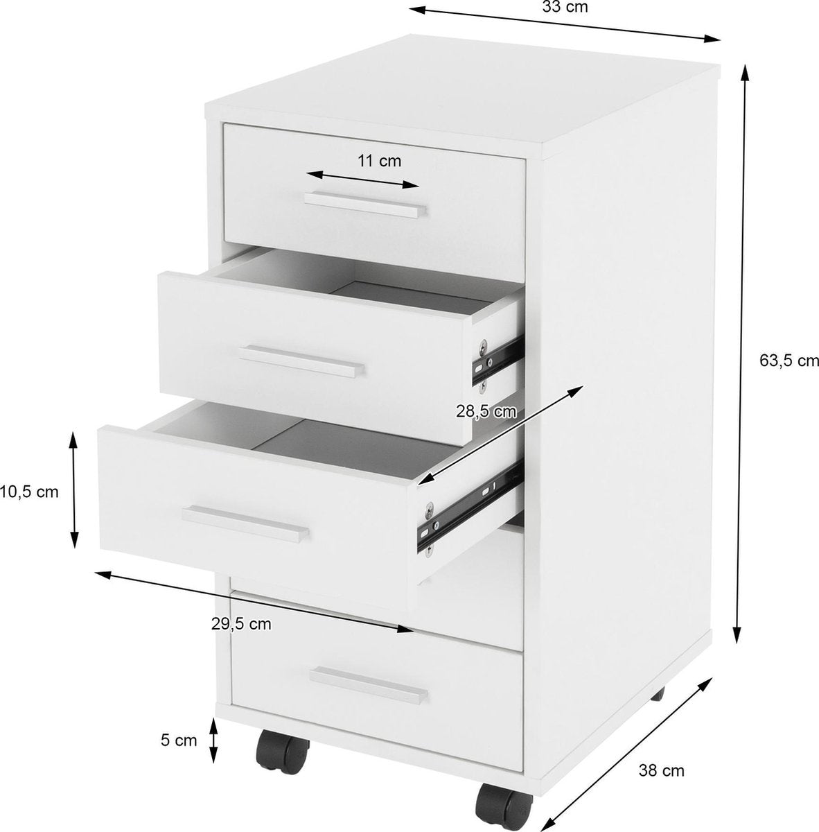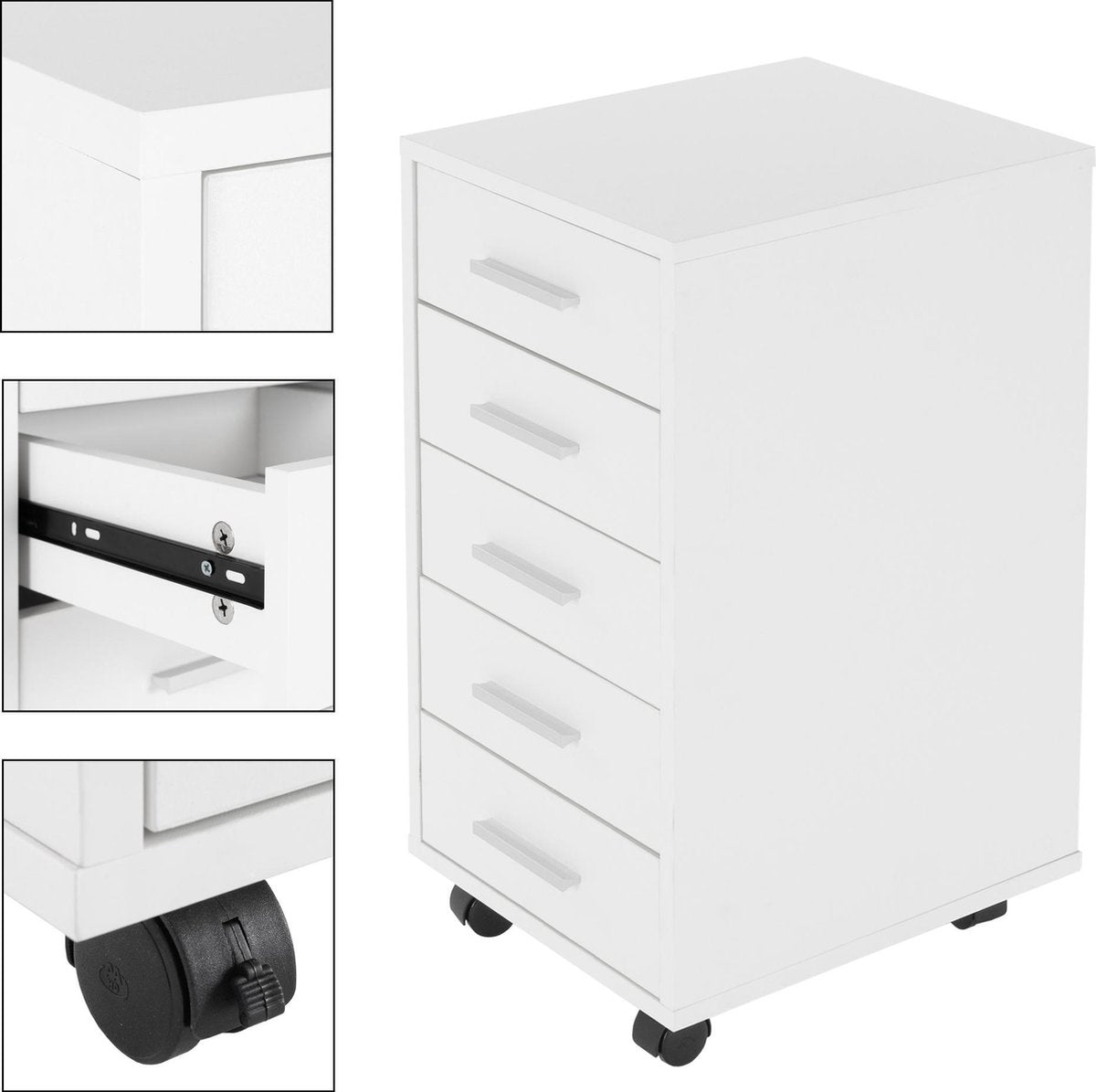 Deze moderne bureauladekast van ML-Design is een uitstekende opbergoplossing voor uw documenten en kantoorbenodigdheden. De ladekast is gemaakt van stevig spaanplaat met een melamine coating. Het eenvoudige maar moderne ontwerp met slanke aluminium handgrepen past gegarandeerd in elke interieurstijl. De kast heeft vijf lades die voldoende opbergruimte bieden voor documenten, notitieblokken, pennen en meer. Hij kan ook soepel heen en weer worden bewogen dankzij de 4 zwenkwielen.