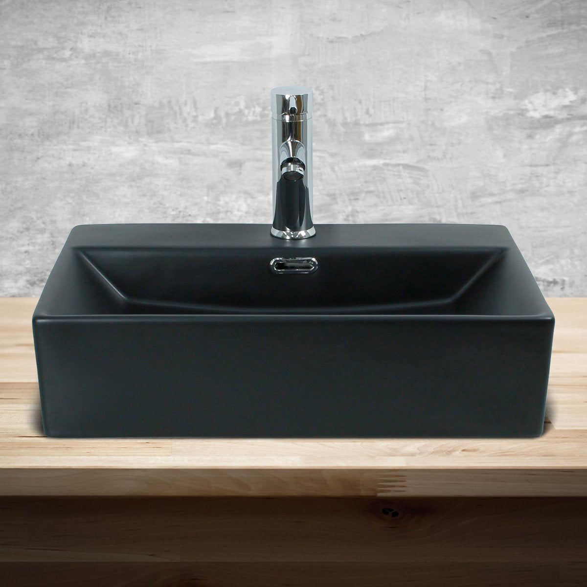 Gebruik dit model als hangende wastafel aan de wand of als aanrecht op een tafel of meubel. Met de standaard aansluitingen voor kraan en afvoer kunt u uw wastafel naar keuze uitrusten en zo uw geheel eigen stijl geven.