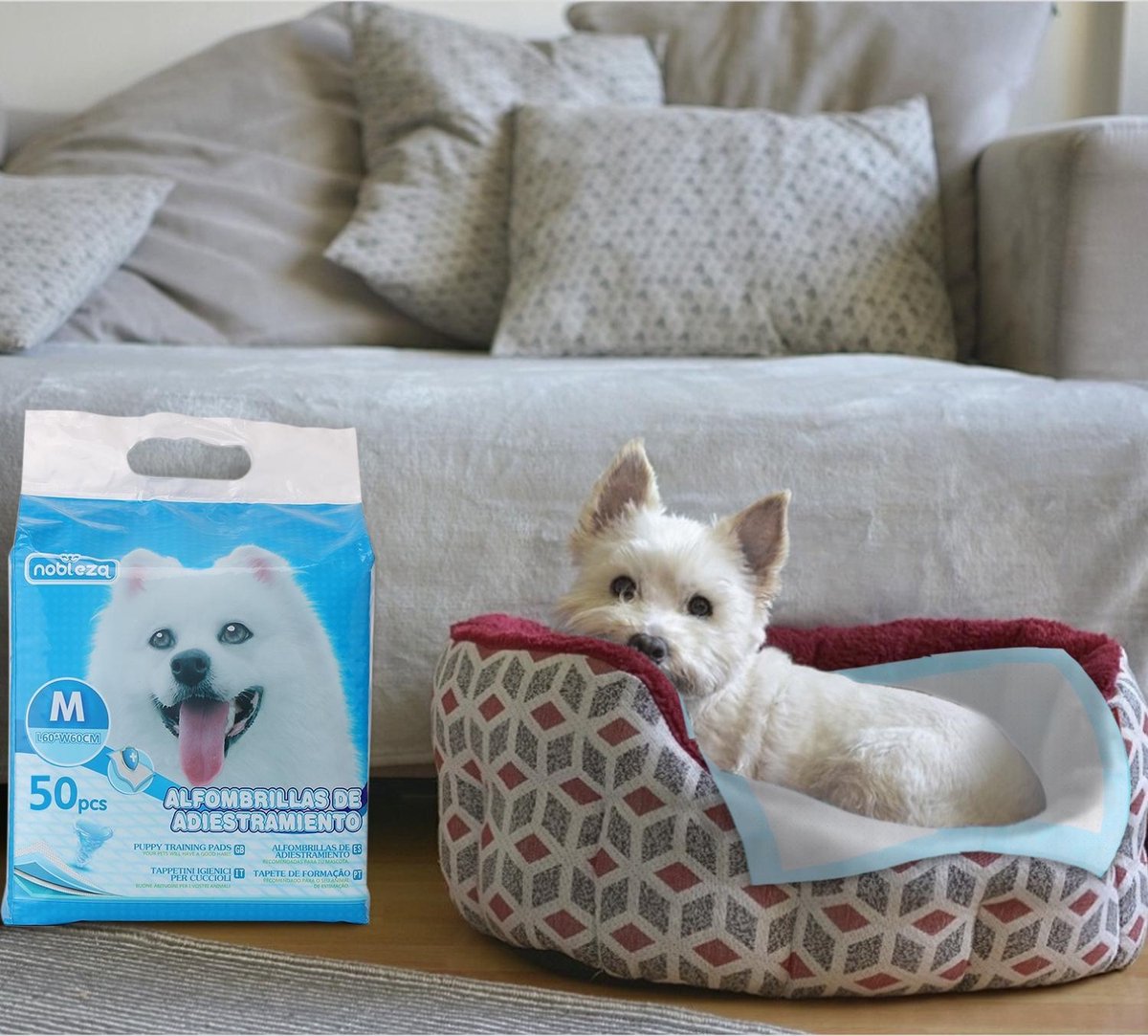 Bij het houden van een pup komt ook de zindelijkheidstraining bij kijken. De Nobleza puppy training pads kunnen hierbij helpen. De puppy training pads zijn perfect voor puppy's, oudere honden of honden met incontinentie. De training pads hebben geavanceerde antibacteriële polymeertechnologie om snelle vloeistofabsorptie en snelle droging te garanderen. Deze puppy training pads absorberen tot 4 kopjes vloeistof en blokkeren effectief vocht in de gel om lekken te voorkomen. Ze zijn behandeld met natuurlijke feromonen om uw puppy of hond aan t e trekken.