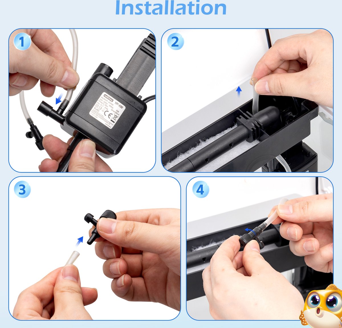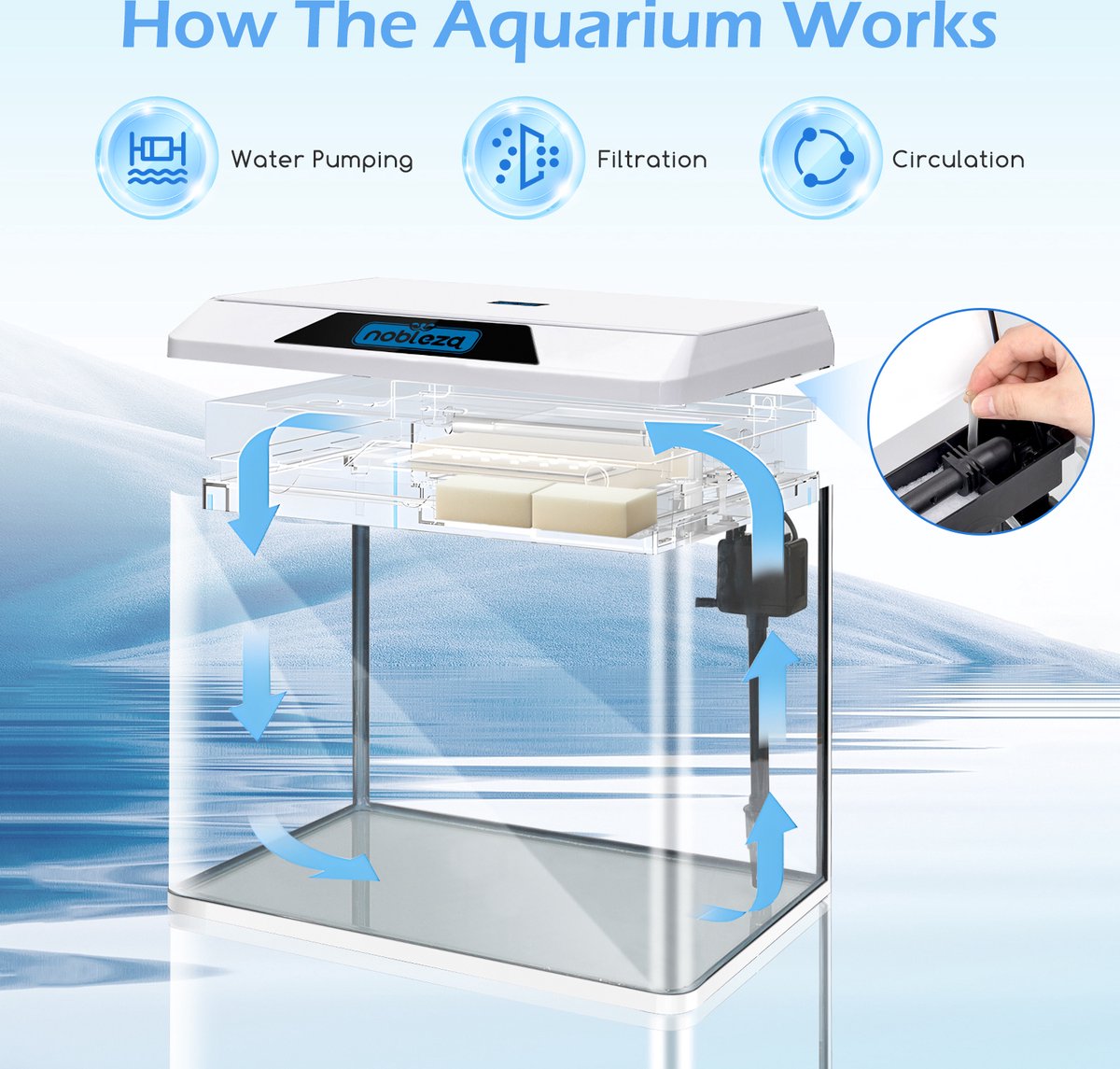met hoog rendement filterkatoen en geïntegreerde pomp voor effectieve oxygenatie tijdens het zuiveren van water.