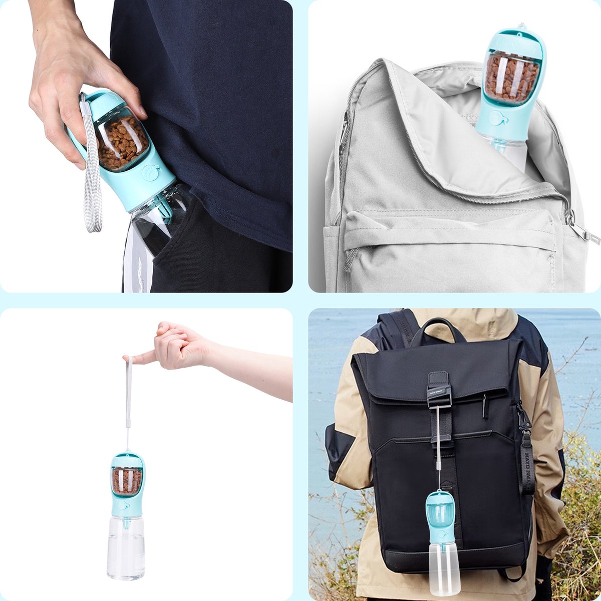 deze waterfles os goed voor tijdens het wandelen en reizen met uw hond. En hij heeft een compact ontwerp en een draagriem, u kunt deze waterdispenser gemakkelijk overal mee naartoe nemen.