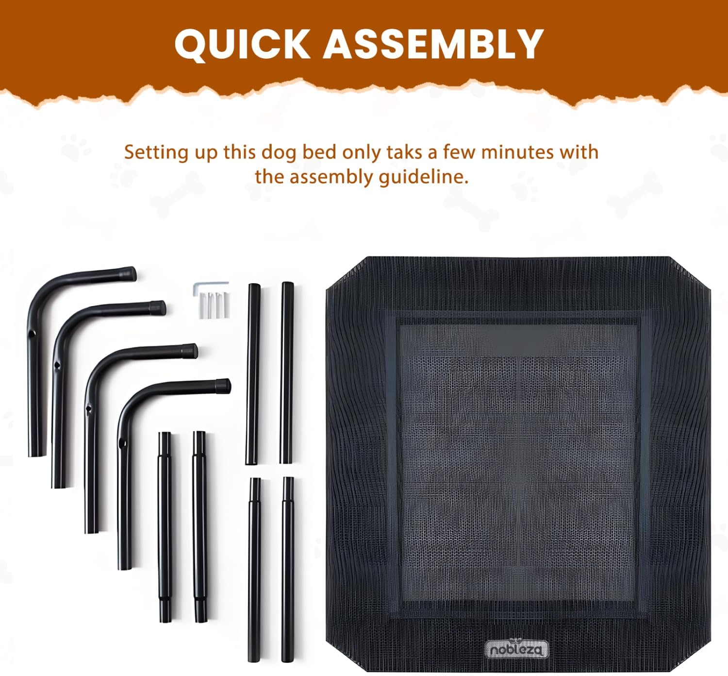 Sterk draagvermogen: het verhoogde hondenbed van Nobleza heeft een verdikte stalen buis die stabiel is en niet wiebelt en niet vervormt voor lange tijd; het gaasoppervlak is slijtvast, heeft een goede taaiheid, breekt niet gemakkelijk en scheur- en bijtbestendig, zodat de hond rustig kan slapen.