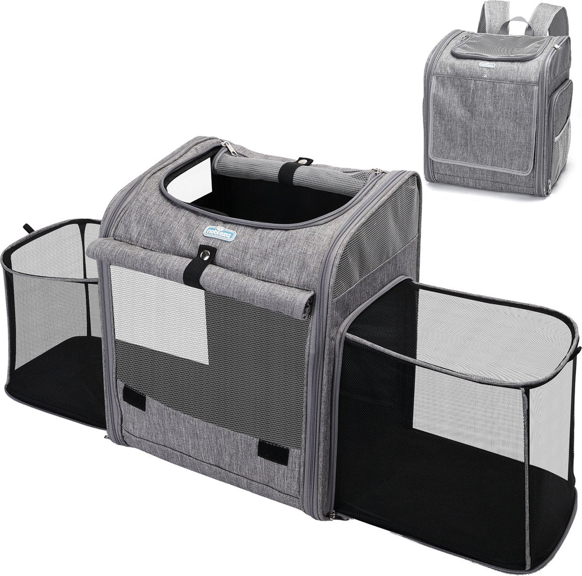 De rugzak heeft vernieuwde vierzijdige mesh-vensters die extra ventilatie bieden om de luchtstroom te maximaliseren. Dankzij de mesh-opening aan de bovenkant kunnen huisdieren hun hoofd naar buiten steken, genieten van het landschap en communiceren met de buitenwereld