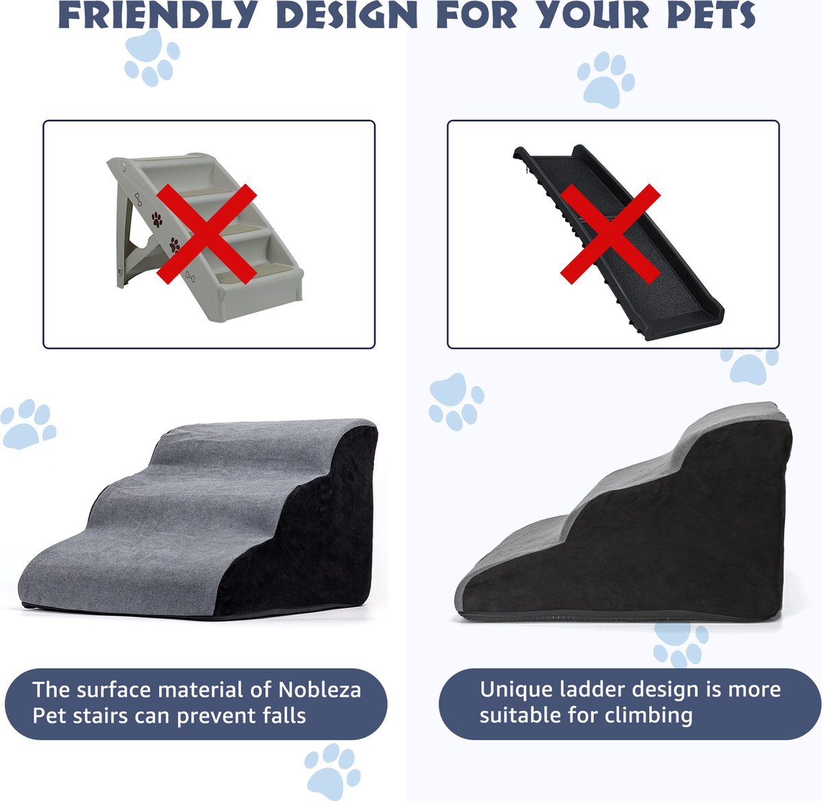 In tegenstelling tot traditionele rechte honden trappen, is deze wetenschappelijk ontworpen helling ramp meer geschikt voor puppies en huisdieren met knieblessures. De afmetingen van de 3-traps huisdierladder zijn 35x56x40 cm, of het nu het hoofdeinde van het bed, de bank of het vensterbank is, de hoogte van de trappen voor kleine honden is zeer geschikt.